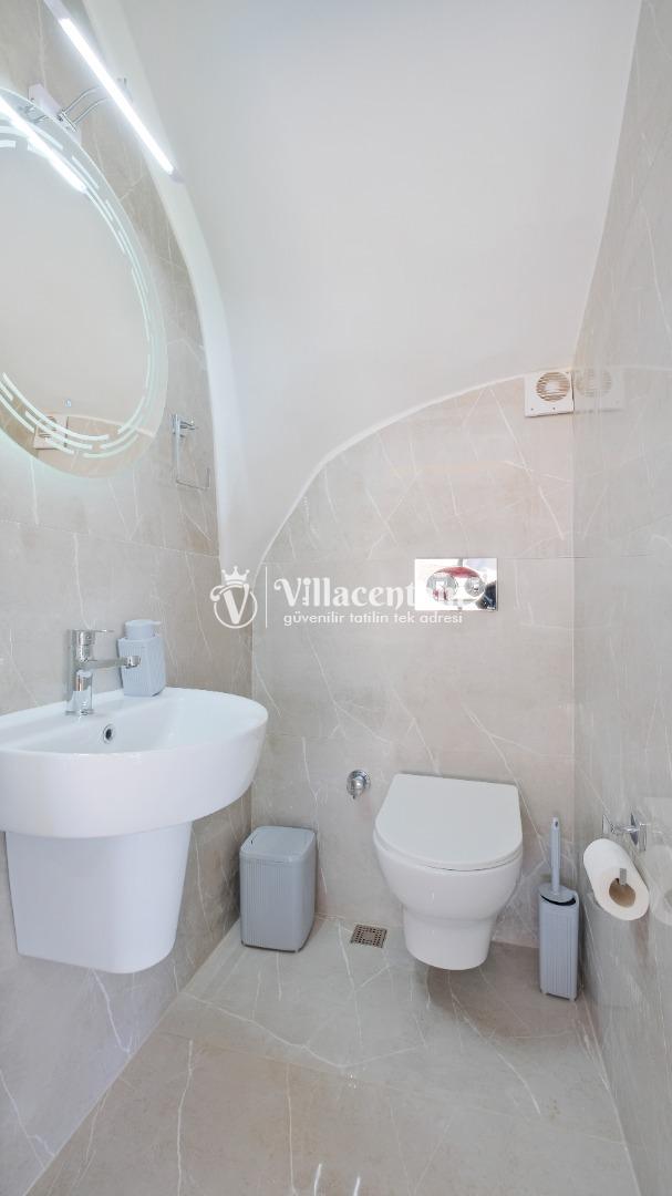 *Villalarda sıcak su için güneş enerjili su ısıtma sistemleri kullanılmaktadır. Çok yoğun sıcak su kullanımında, yoğunluğa ve su tankının büyüklüğüne bağlı olarak su tankında sıcak su tükenebilmekte ve tekrar suyun ısınması için belirli bir süre geçmesi gerekmektedir. Bu not sadece bu villa ile ilgili değil, tüm villalarımız için geçerli bir durumdur.