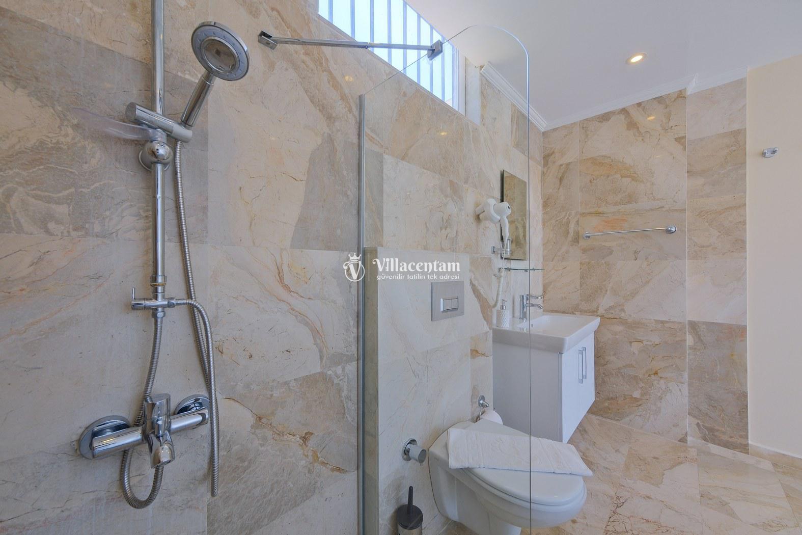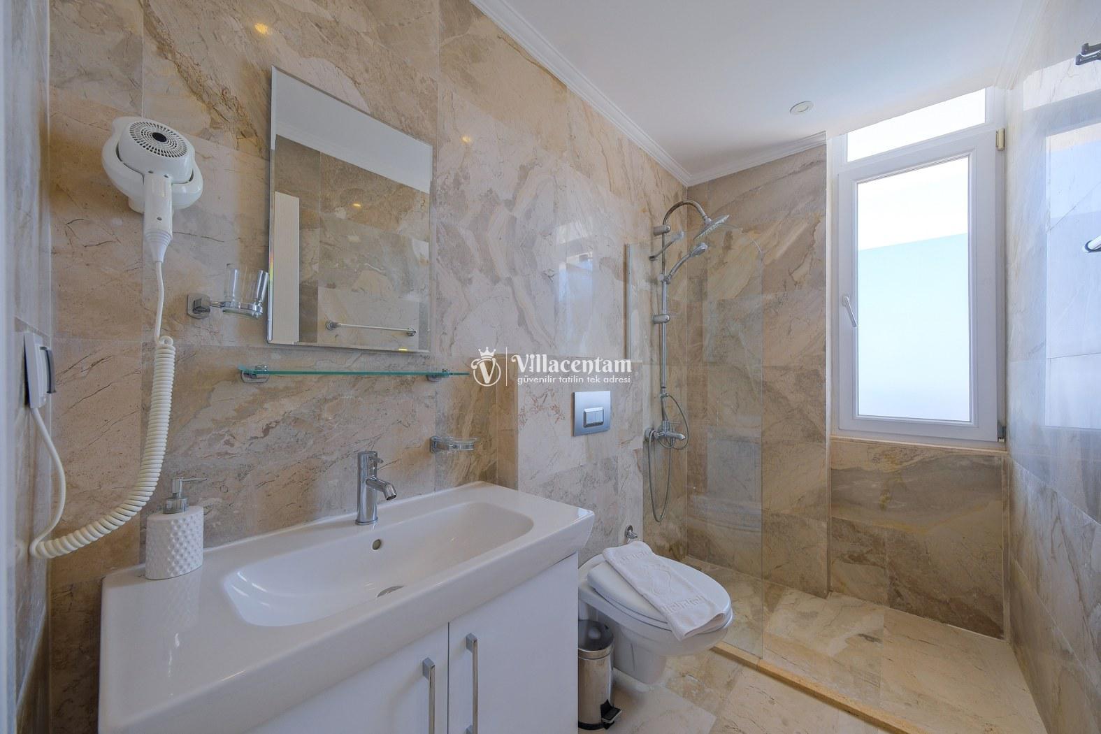 *Villalarda sıcak su için güneş enerjili su ısıtma sistemleri kullanılmaktadır. Çok yoğun sıcak su kullanımında, yoğunluğa ve su tankının büyüklüğüne bağlı olarak su tankında sıcak su tükenebilmekte ve tekrar suyun ısınması için belirli bir süre geçmesi gerekmektedir. Bu not sadece bu villa ile ilgili değil, tüm villalarımız için geçerli bir durumdur