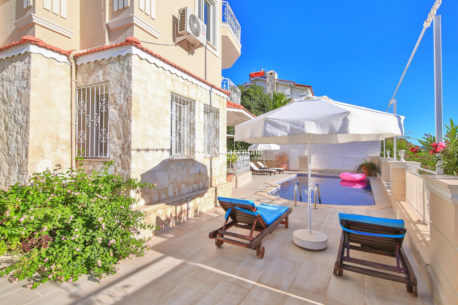 Kalkan Kızıltaş mevkiinde konumlanmakta olan Villa Asma, muhteşem deniz ve doğa manzarasına sahip şirin kiralık bir villadır. Şık ve konforlu bir şekilde dekore edilen yazlık villamızda 2 adet yatak odası bulunmakta olup, 4 kişiye konaklama imkanı sağlamaktadır. Sabah uyandığınızda gözlerinizi eşsiz deniz manzarasına karşı açacağınız villamızın ferah ve donanımlı havuz terasında kahvaltı keyifleri yapabilir, akşam yemeklerinin tadını çıkarabilirsiniz. Ayrıca villamız da sauna mevcuttur. Villamızın terasında mükemmel deniz manzarasına karşı keyif yapabileceğiniz jakuzi yer almaktadır. Muazzam deniz manzarası karşı havuzunuzda yüzerken huzurlu ve eğlenceli anlar yaşayabilirsiniz. Balayı çiftlerine ve çekirdek ailelerine hitap eden yazlık villamızda unutamayacağınız bir tatil siz değerli misafirlerimiz bekliyor.