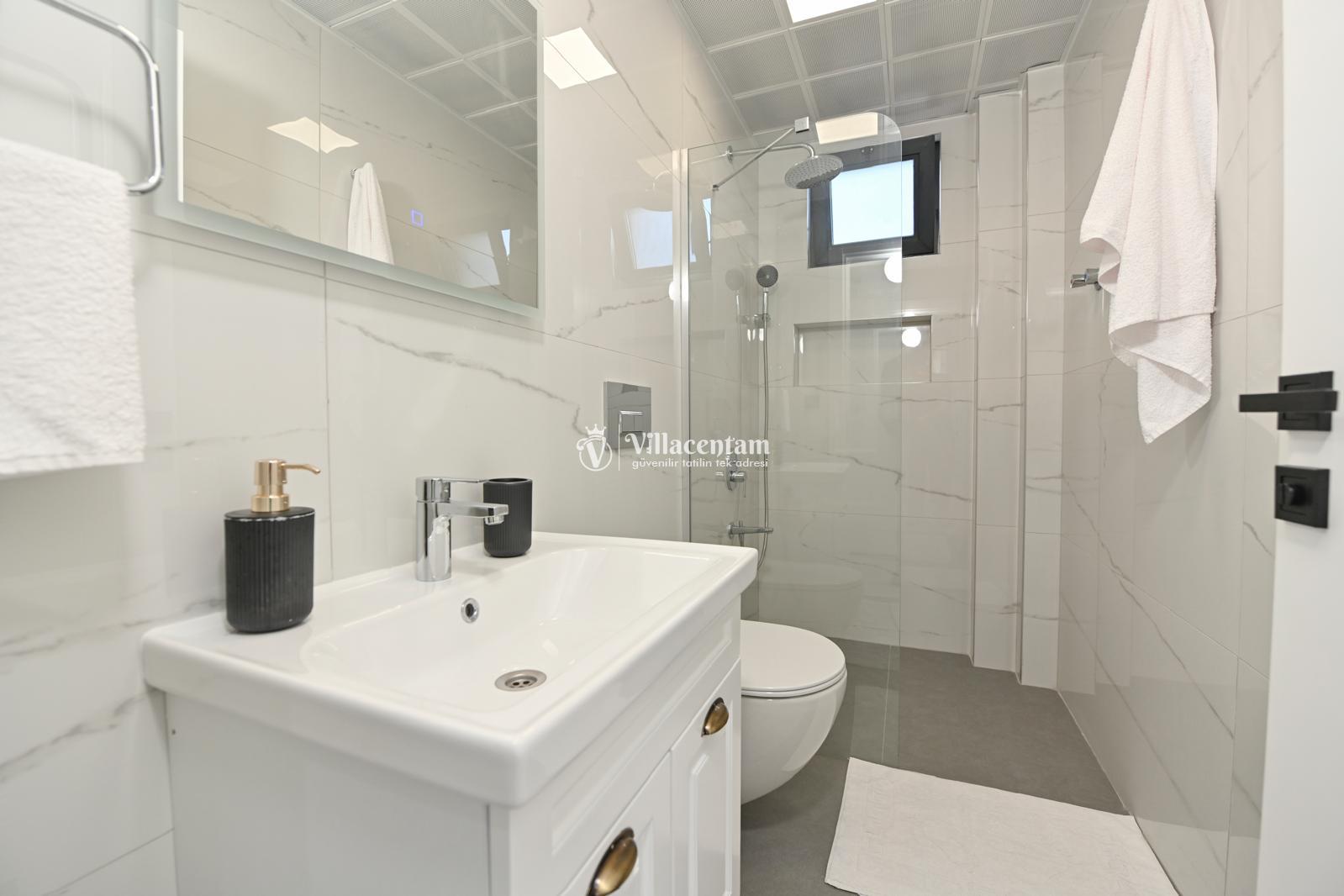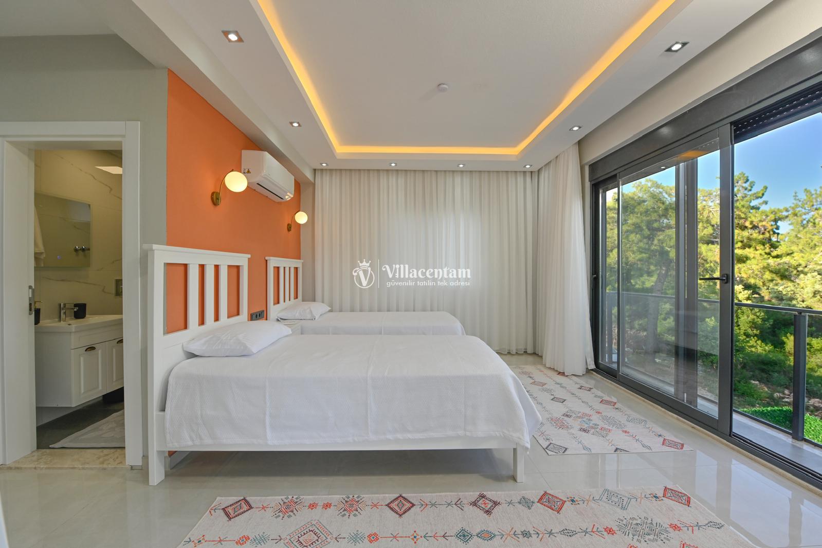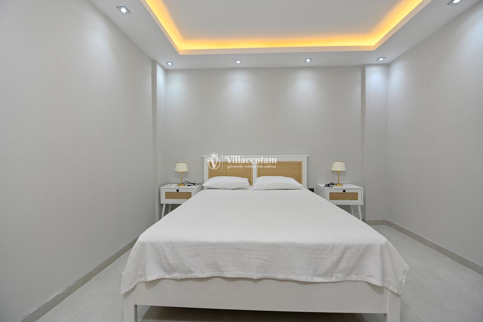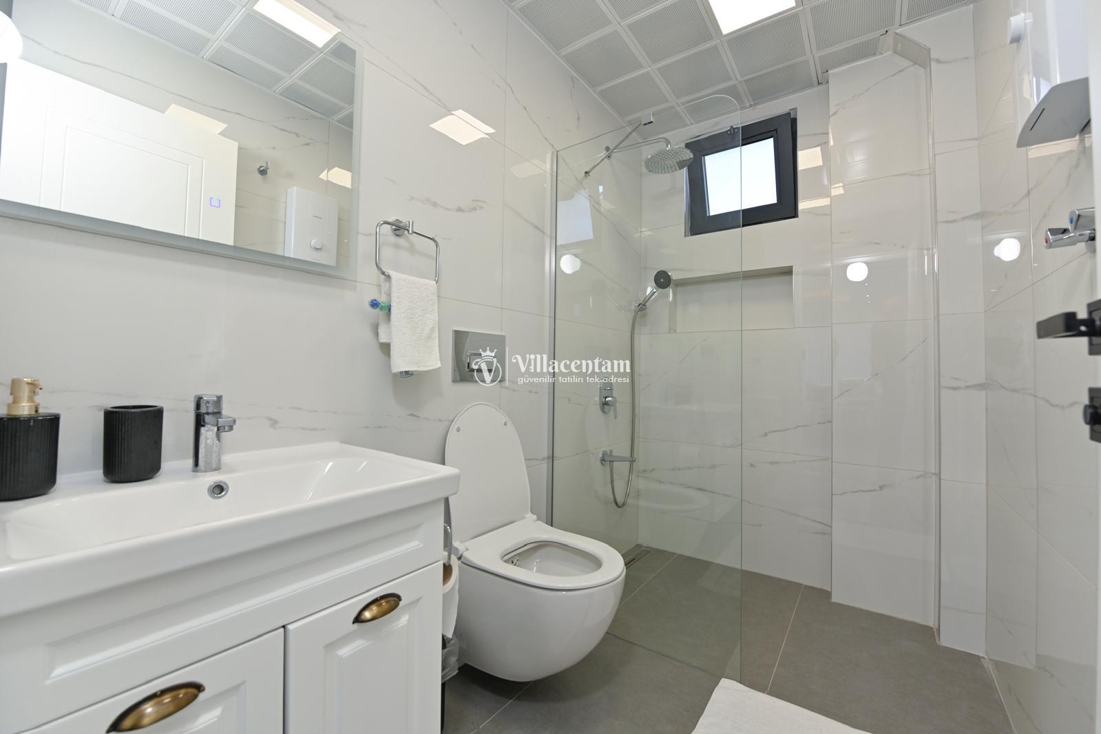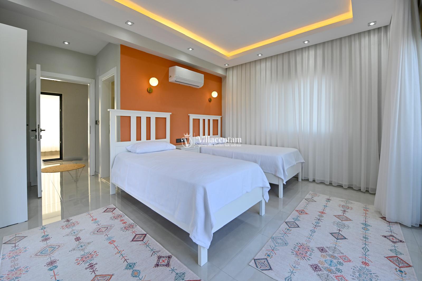 *Villalarda sıcak su için güneş enerjili su ısıtma sistemleri kullanılmaktadır. Çok yoğun sıcak su kullanımında, yoğunluğa ve su tankının büyüklüğüne bağlı olarak su tankında sıcak su tükenebilmekte ve tekrar suyun ısınması için belirli bir süre geçmesi gerekmektedir. Bu not sadece bu villa ile ilgili değil, tüm villalarımız için geçerli bir durumdur.