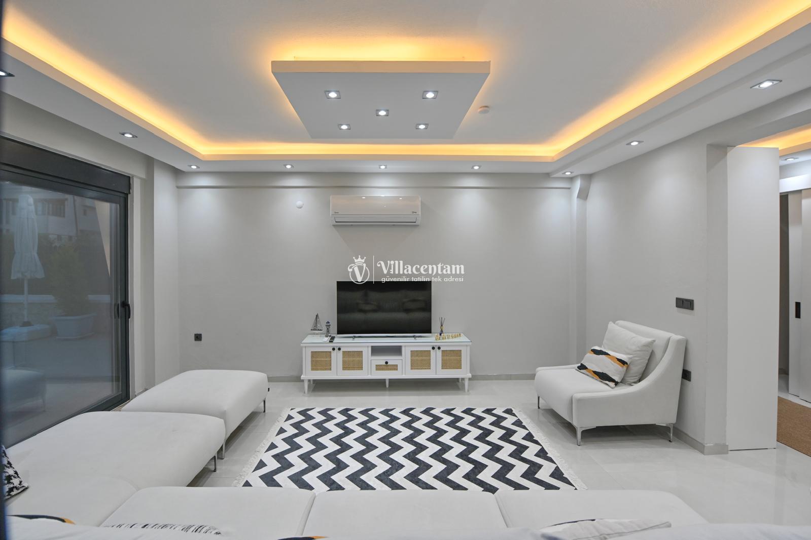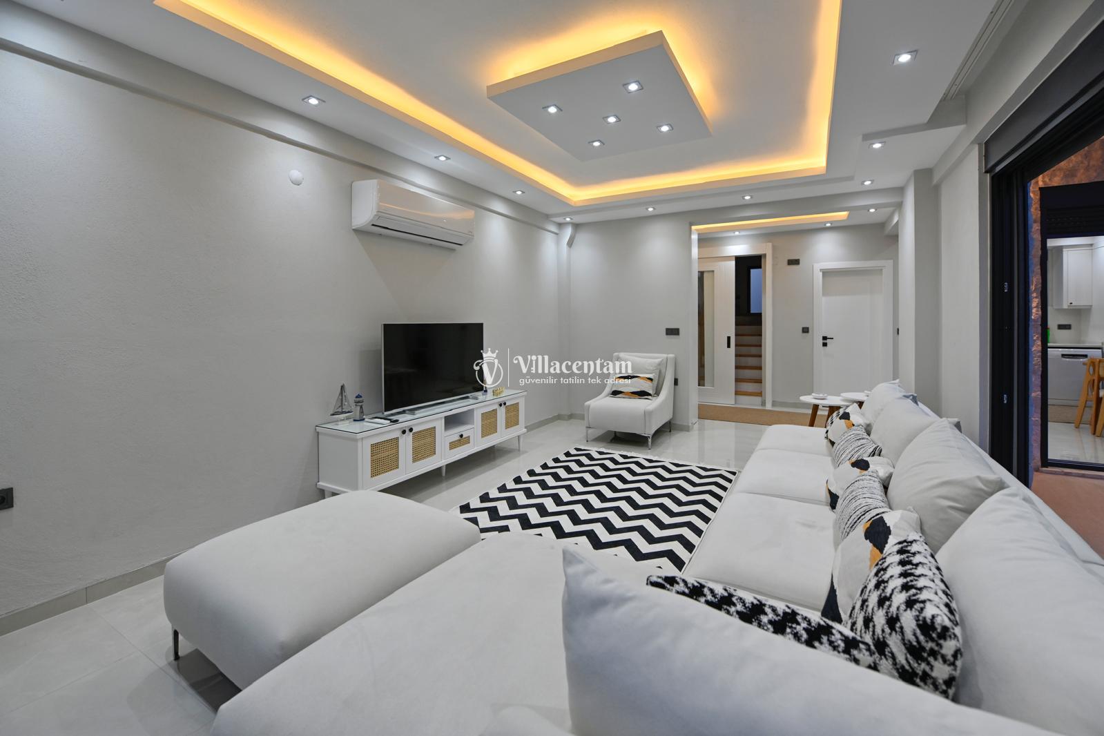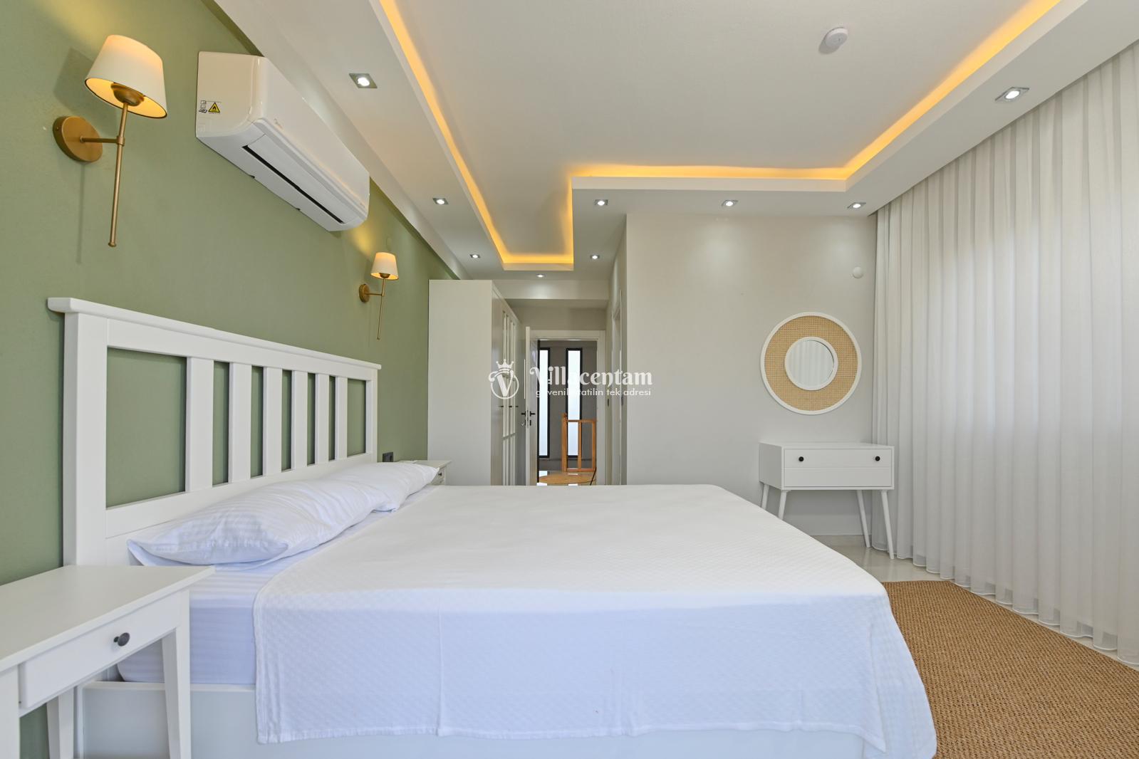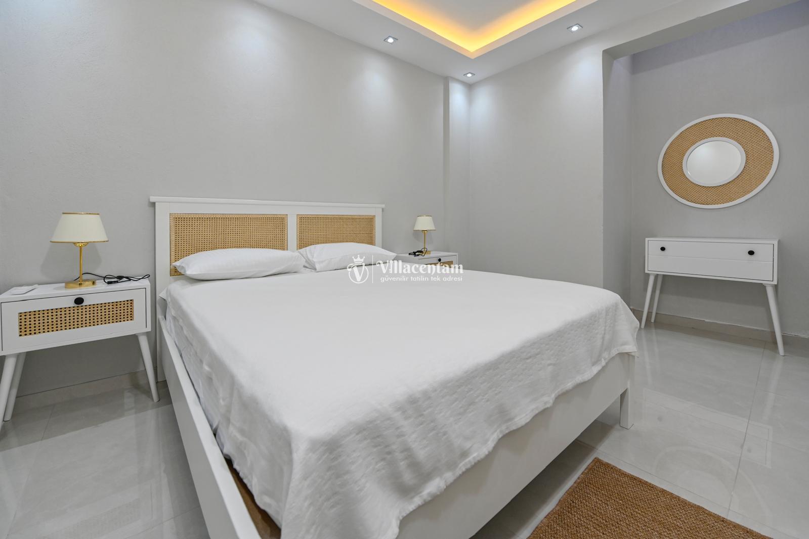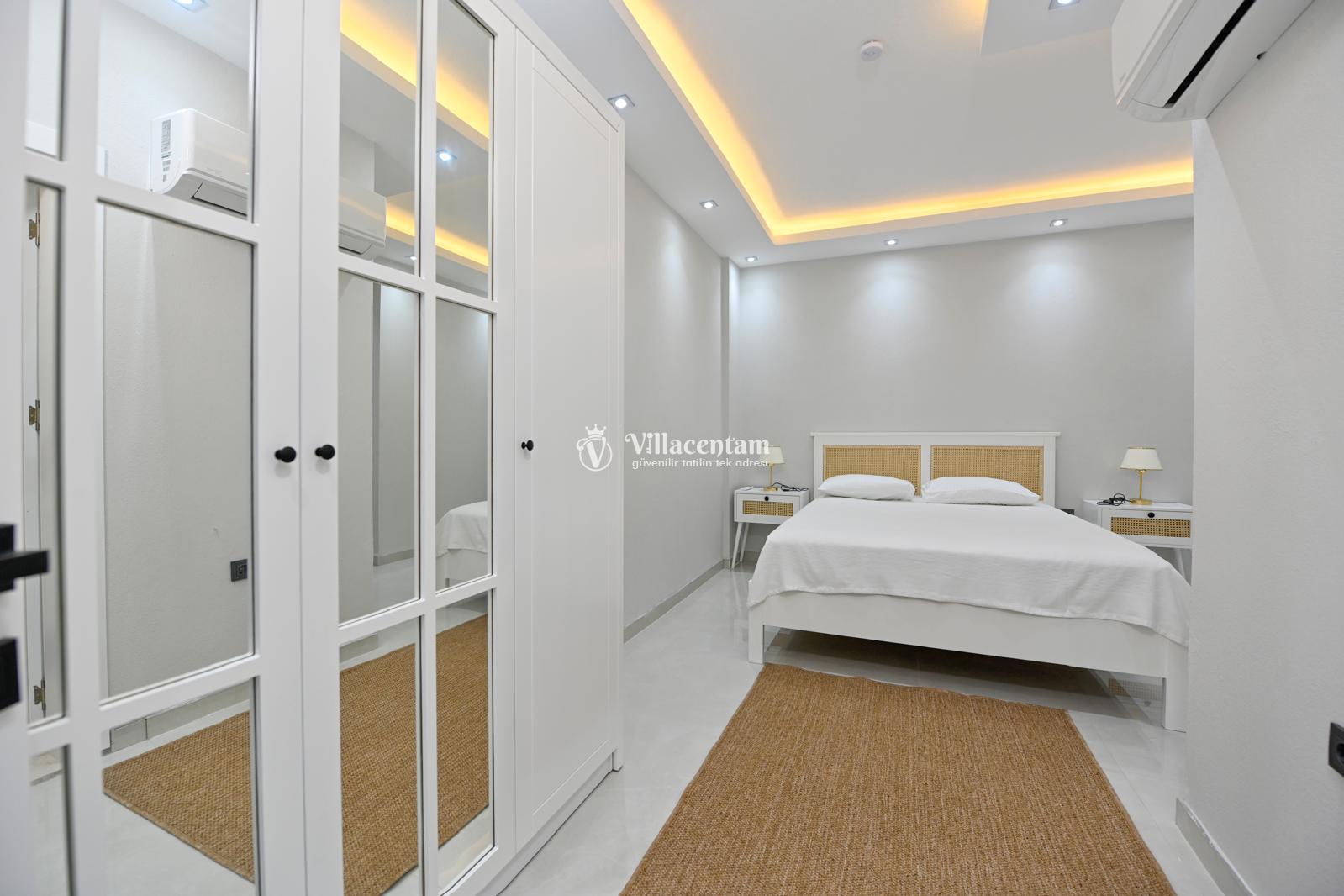 *Villalarda sıcak su için güneş enerjili su ısıtma sistemleri kullanılmaktadır. Çok yoğun sıcak su kullanımında, yoğunluğa ve su tankının büyüklüğüne bağlı olarak su tankında sıcak su tükenebilmekte ve tekrar suyun ısınması için belirli bir süre geçmesi gerekmektedir. Bu not sadece bu villa ile ilgili değil, tüm villalarımız için geçerli bir durumdur.