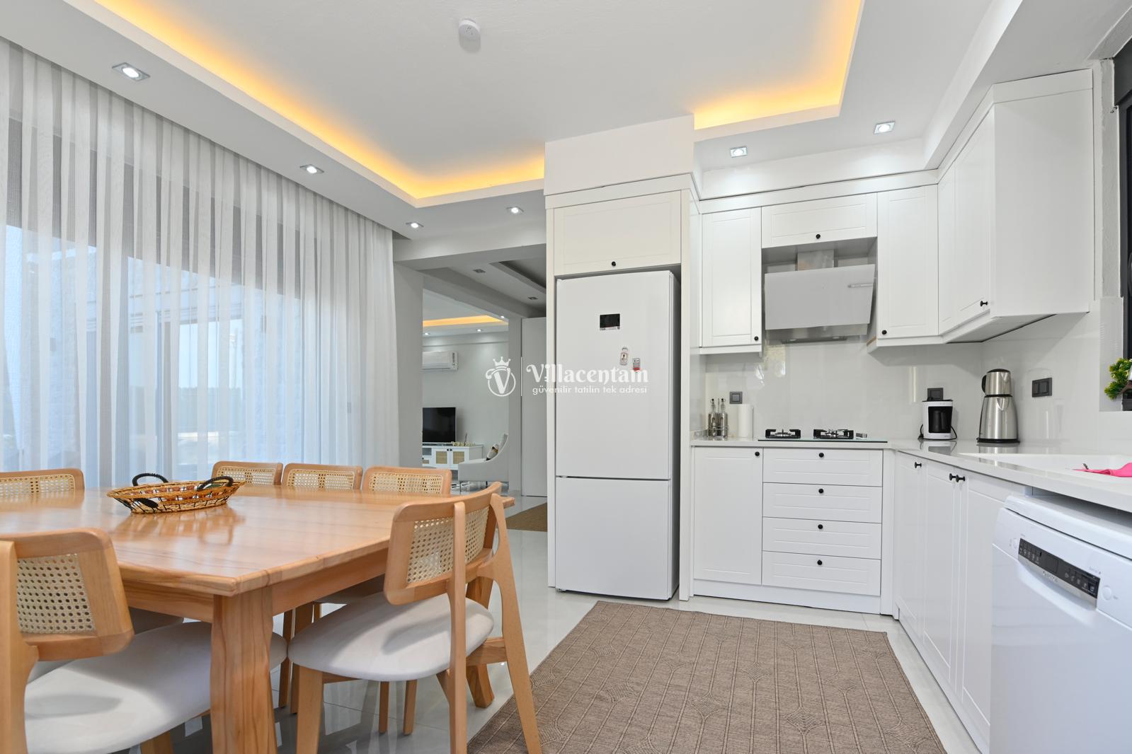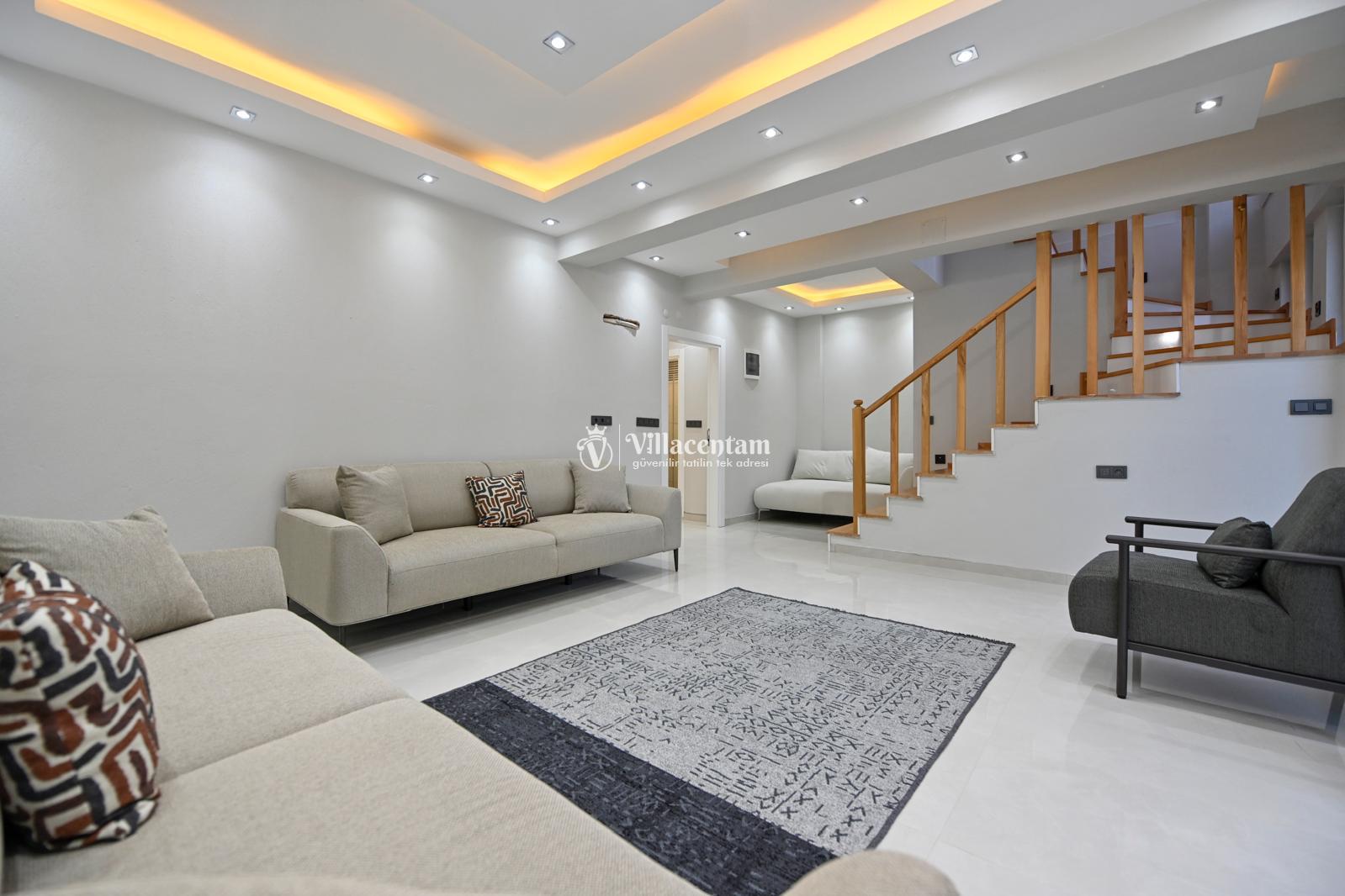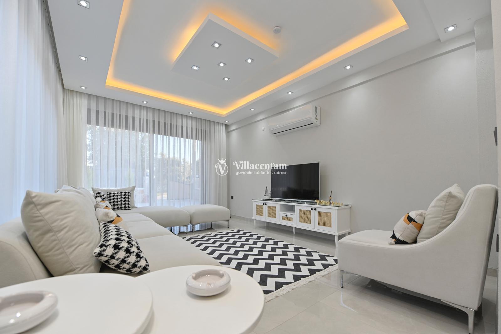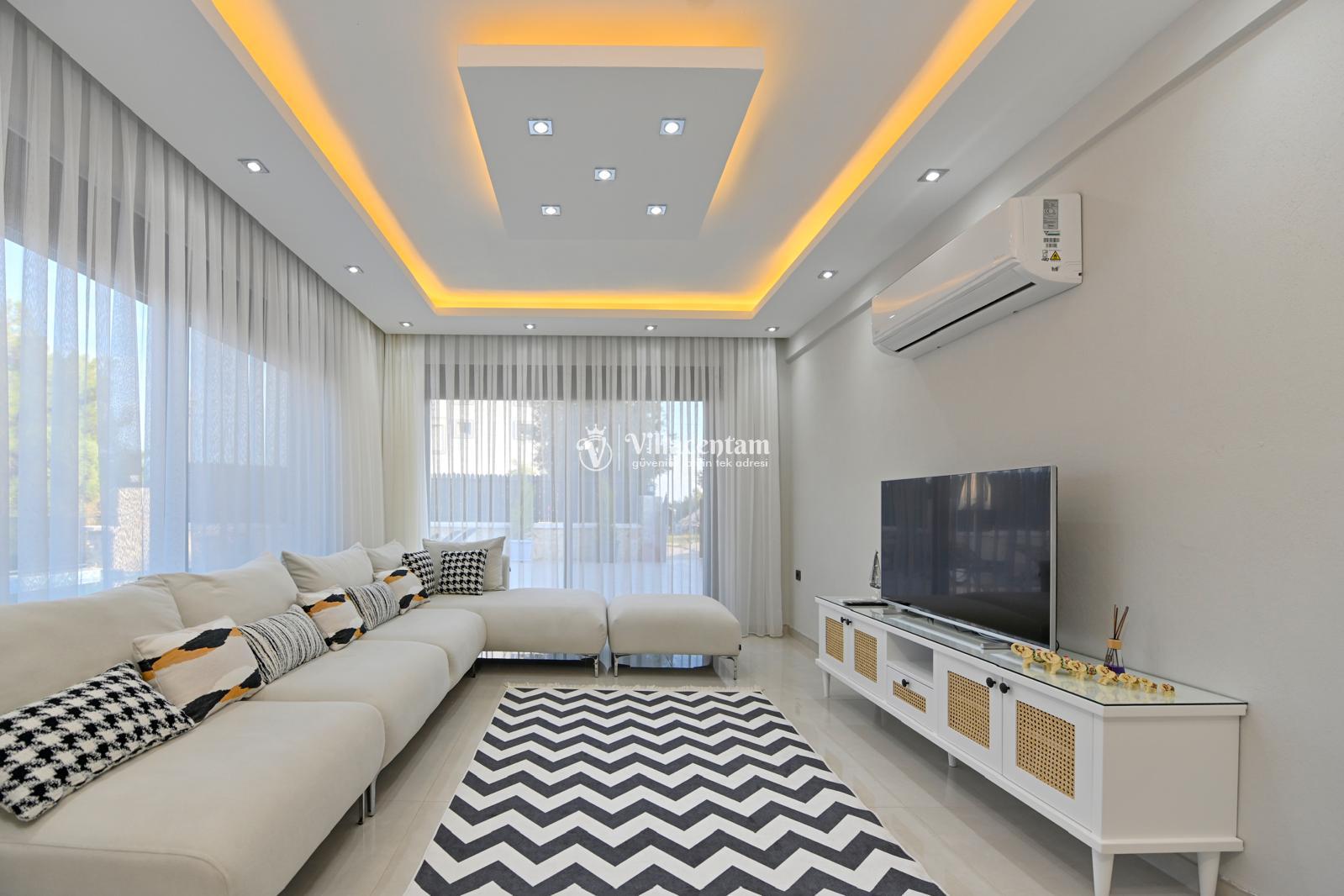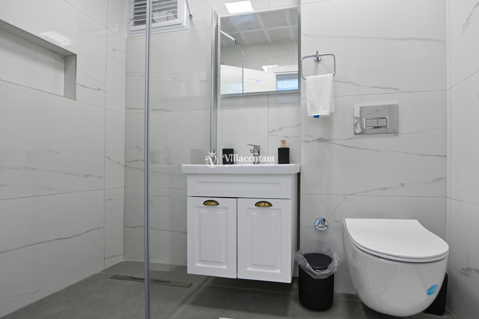 *Villalarda sıcak su için güneş enerjili su ısıtma sistemleri kullanılmaktadır. Çok yoğun sıcak su kullanımında, yoğunluğa ve su tankının büyüklüğüne bağlı olarak su tankında sıcak su tükenebilmekte ve tekrar suyun ısınması için belirli bir süre geçmesi gerekmektedir. Bu not sadece bu villa ile ilgili değil, tüm villalarımız için geçerli bir durumdur.