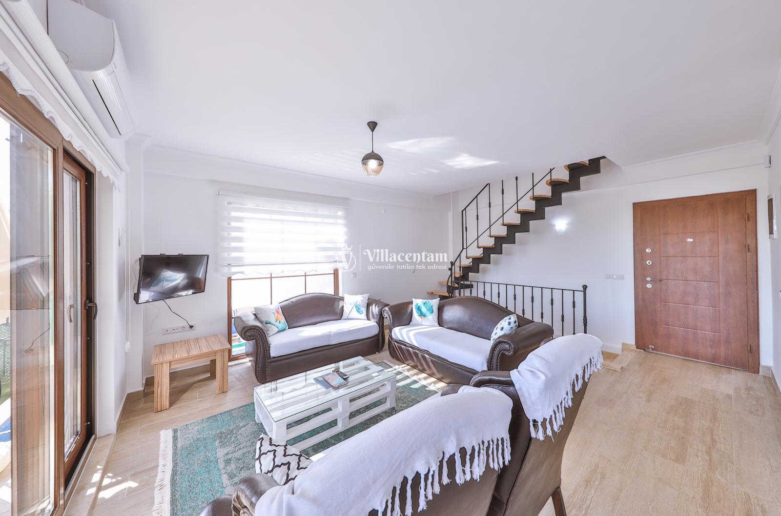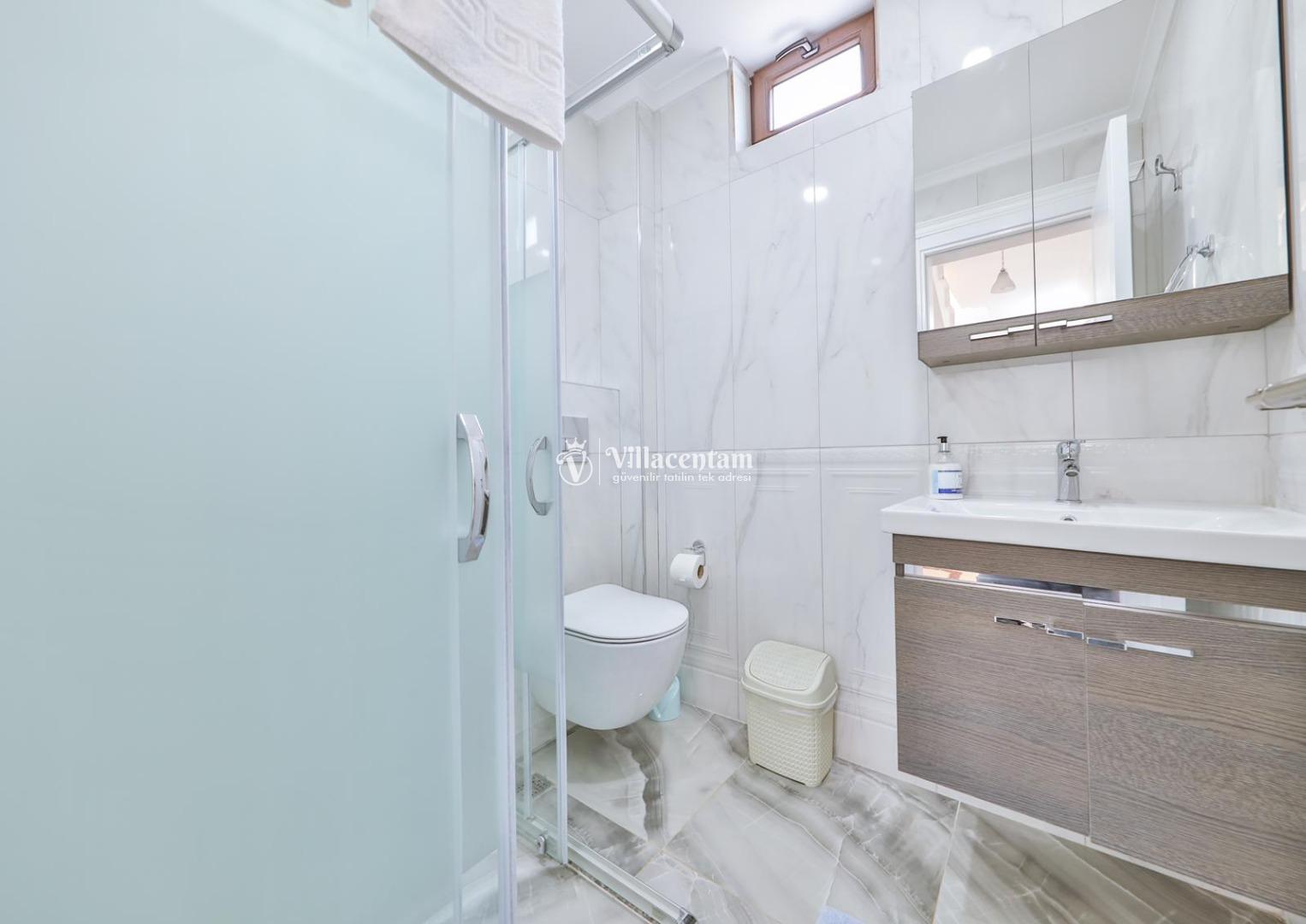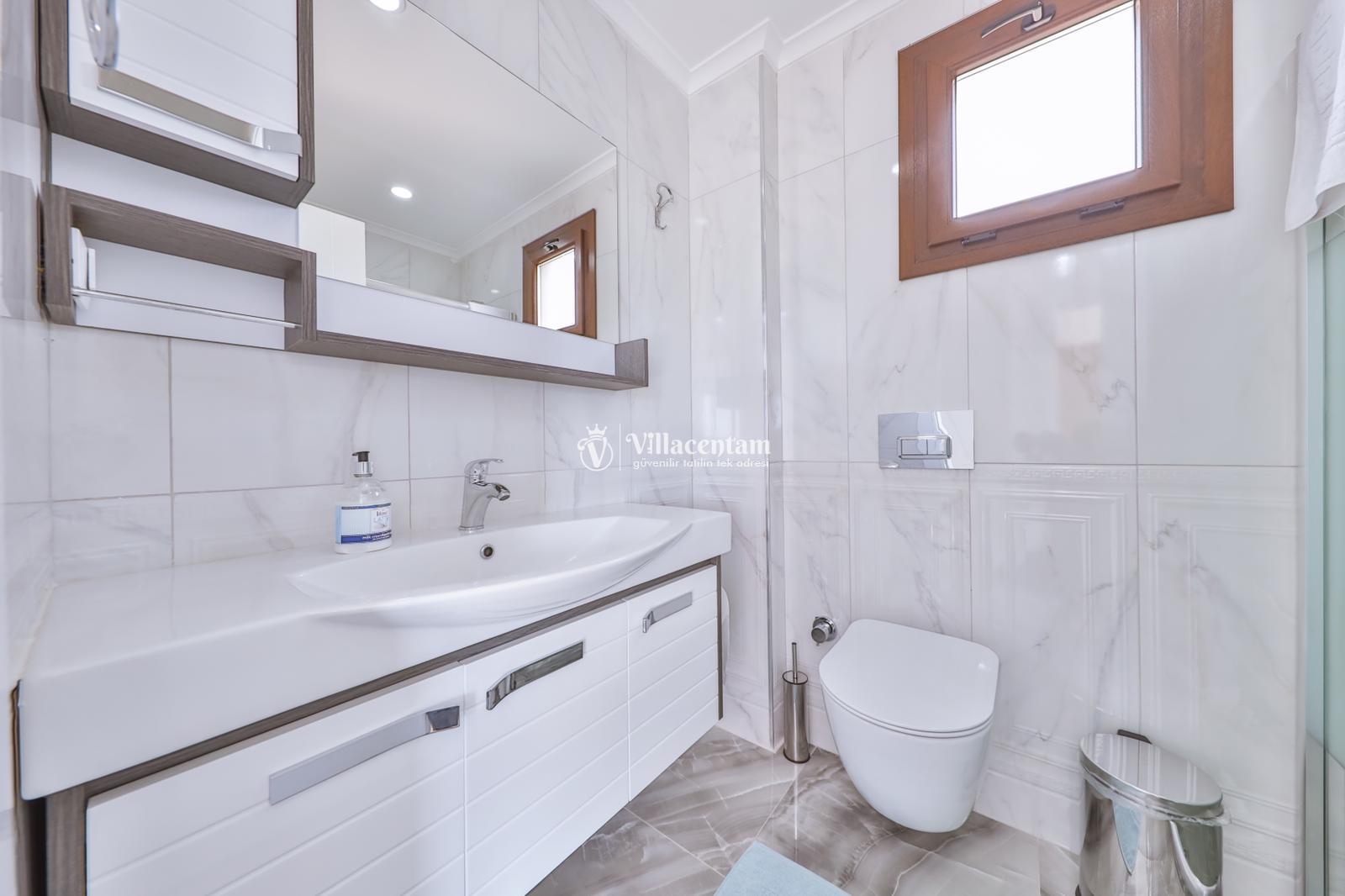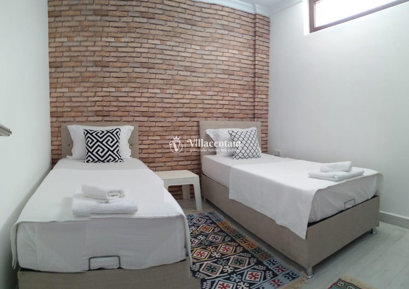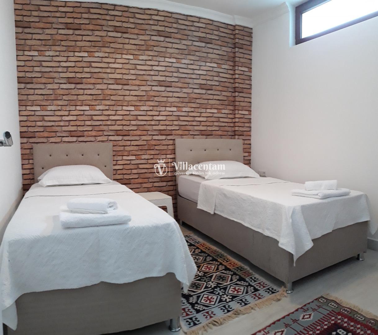 *Villalarda sıcak su için güneş enerjili su ısıtma sistemleri kullanılmaktadır. Çok yoğun sıcak su kullanımında, yoğunluğa ve su tankının büyüklüğüne bağlı olarak su tankında sıcak su tükenebilmekte ve tekrar suyun ısınması için belirli bir süre geçmesi gerekmektedir. Bu not sadece bu villa ile ilgili değil, tüm villalarımız için geçerli bir durumdur.