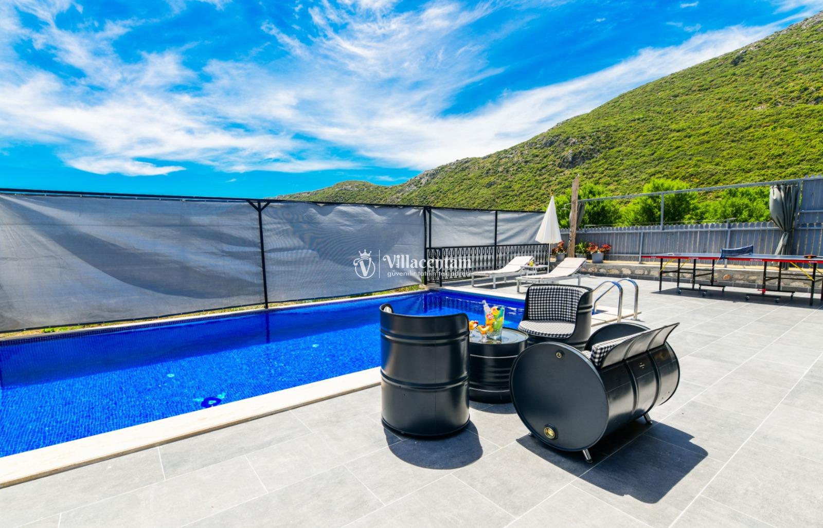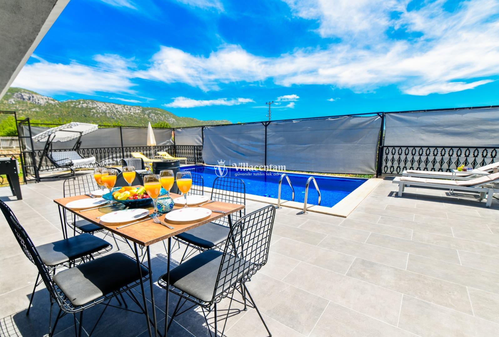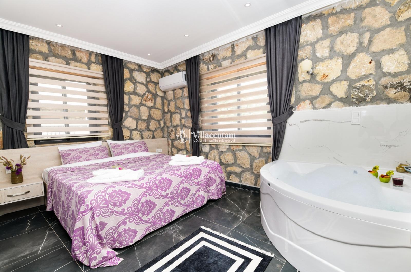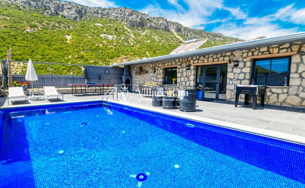 Villa Boncuğum, Kalkan Bezirgan köyünde konumlanmakta olan yeşilliklerle kaplı doğa manzarasına hakim kiralık villalarımız arasında yer almaktadır. Şık ve konforlu bir şekilde konumlanmakta olan yazlık villamızda 2 adet yatak odası bulunmakta olup, 4 kişiye konaklama imkanı sağlamaktadır. Yatak odalarının bir tanesinin içerisinde tüm yılın vermiş olduğu yorgunluğu giderebileceğiniz jakuzi bulunmaktadır. Havuz ve havuz terası korunaklı olan kiralık villamızı muhafazakar aileler, balayı çiftleri rahatlıkla tercih edebilirler. Tüm gözlerden uzakta sessizlik ve sakinlik içerisinde huzur dolu bir yazlık villada tatili için Villa Boncuğum' u tercih edebilirsiniz.