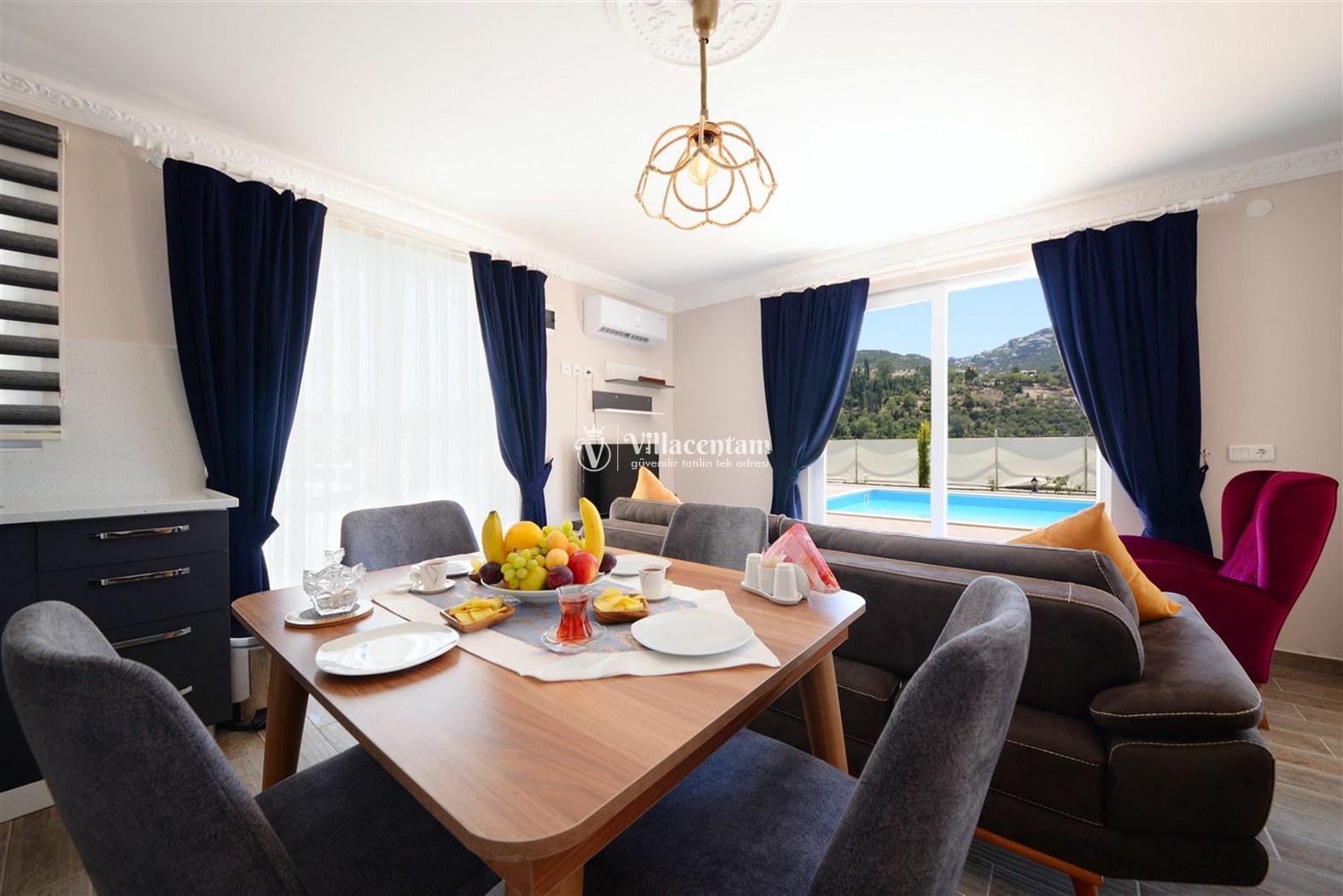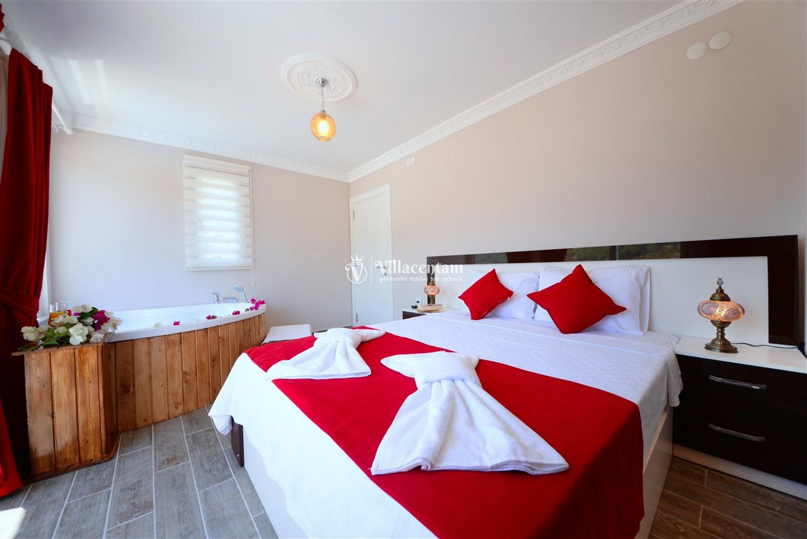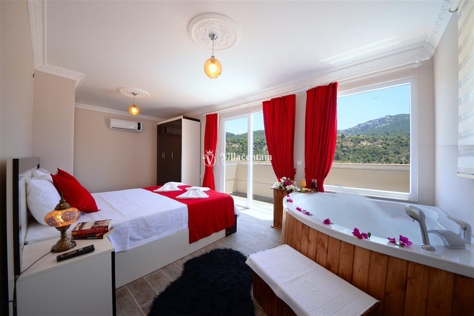 Villa Medis 1, Kalkan Sarıbelen köyünde konumlanmakta olan yeşilliklerle kaplı doğa manzarasına hakim, otantik bir görünüme sahip kiralık villalarımız arasında yer almaktadır. Şık ve konforlu bir şekilde dekore edilen yazlık villamızda 2 adet yatak odası bulunmakta olup, 4 kişiye konaklama imkanı sağlamaktadır. Yatak odalarından bir tanesinin içerisinde tüm yılın vermiş olduğu yorgunluğu giderebileceğiniz jakuzi yer almaktadır. Diğer yatak odasının banyo ve tuvaleti odanın dış kısmında ortak kullanımlı olarak bulunmaktadır. Havuz ve havuz terası korunaklı hale getirilen kiralık villamızı muhafazakar aileler, balayı çiftleri ve çekirdek aileler rahatlıkla tercih edebilirler. Sessizlik ve sakinlik içerisinde huzur dolu bir yazlık villada balayı tatili için Villa Medis 1'i tercih edebilirsiniz.