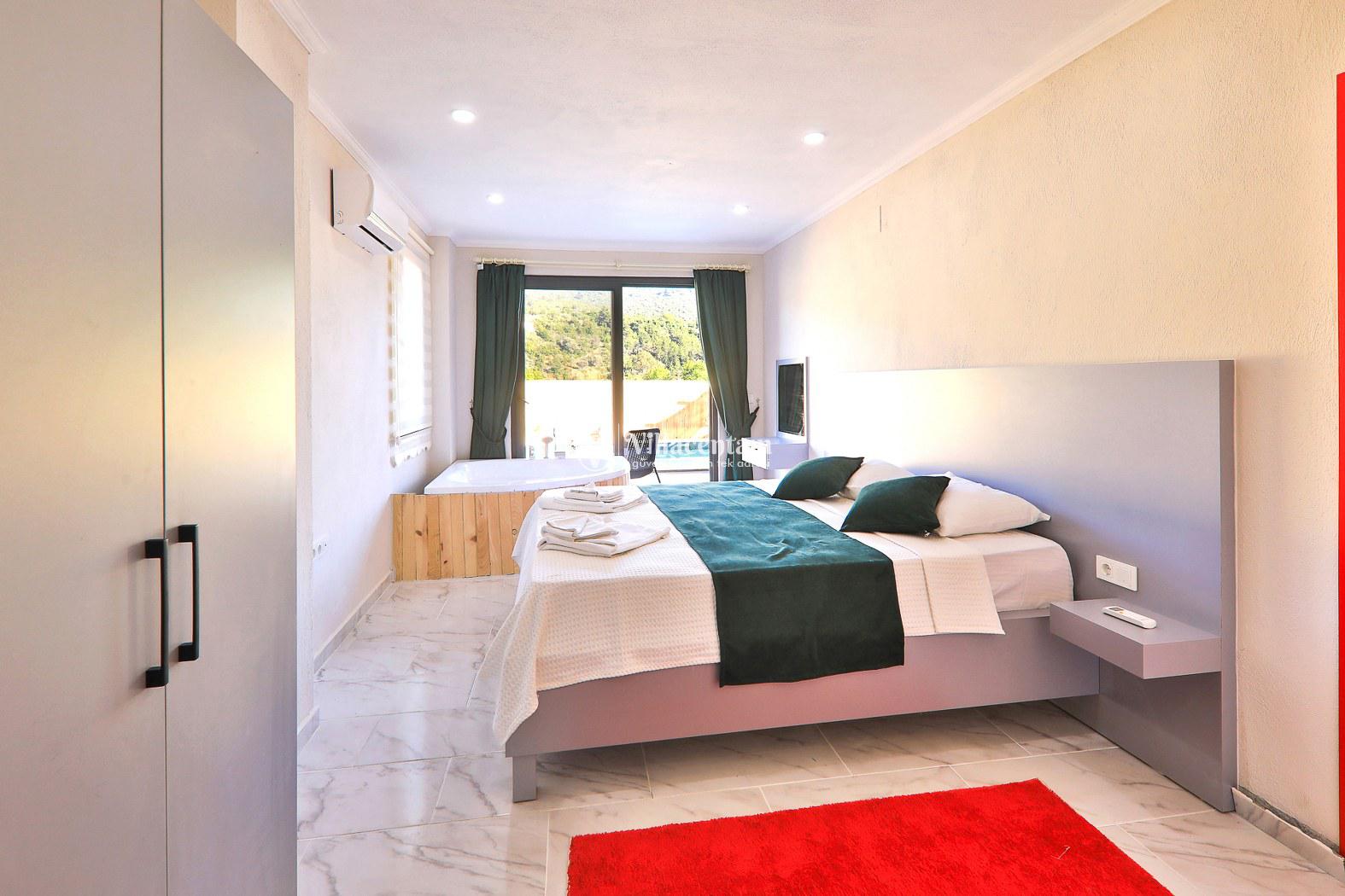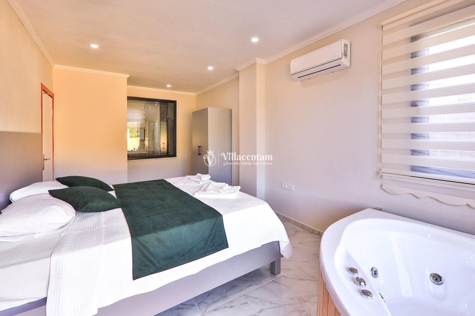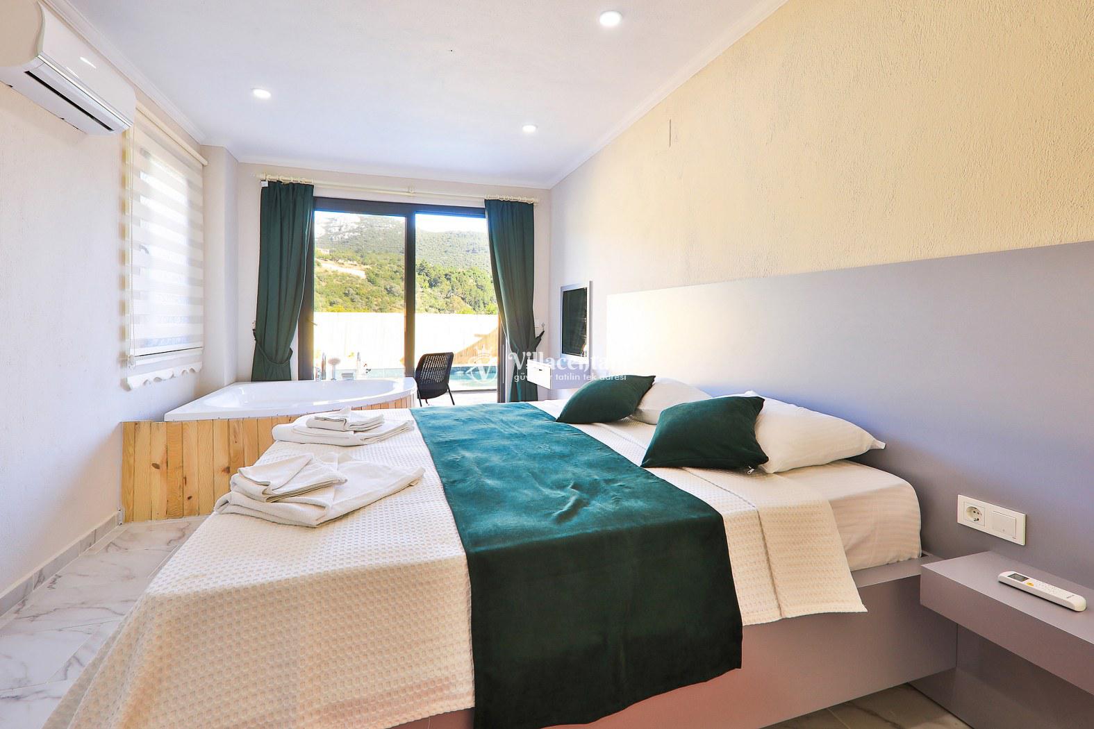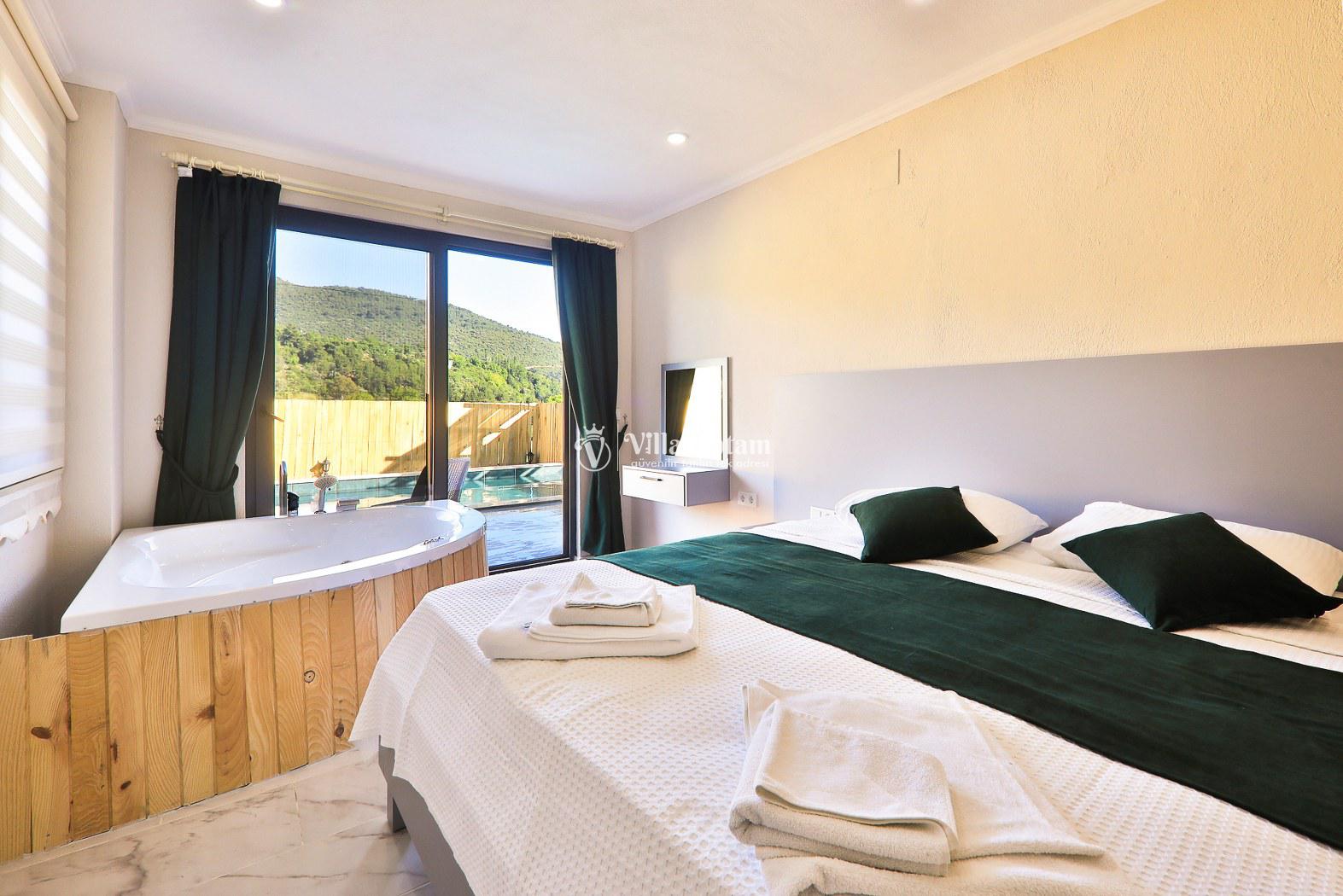 Villa Medis 3, Kalkan Sarıbelen köyünde konumlanmakta olan yeşilliklerle kaplı doğa manzarasına hakim kiralık villalarımız arasında yer almaktadır. Şık ve konforlu bir şekilde dekore edilen yazlık villamızda 1 adet yatak odası bulunmakta olup, 2 kişiye konaklama imkanı sağlamaktadır. Yatak odasının içerisinde tüm yılın vermiş olduğu yorgunluğu giderebileceğiniz jakuzi yer almaktadır. Özellikle balayı çiftlerine hitap eden kiralık villamızın havuz ve havuz terası korunaklı hale getirilmiştir. Muhafazakar balayı çiftleri rahatlıkla tercih edebilirler. Sessizlik ve sakinlik içerisinde huzur dolu bir yazlık villada balayı tatili için Villa Medis 3’ü tercih edebilirsiniz.