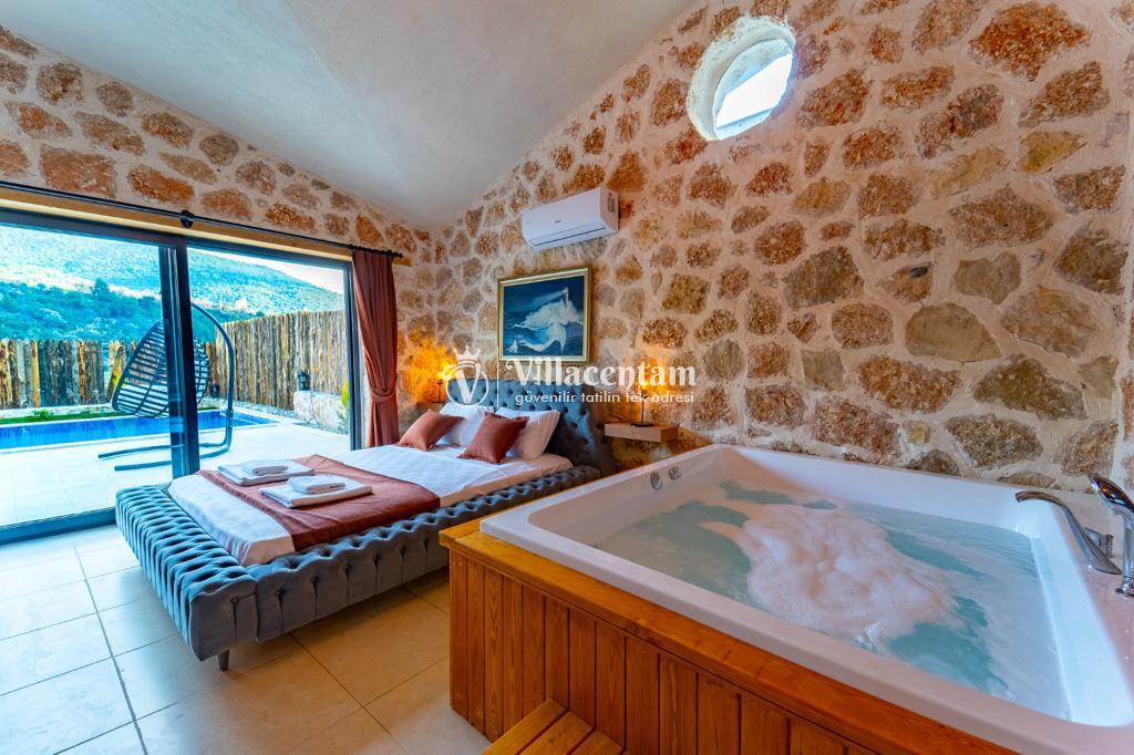Villa Medis 4, Kalkan Sarıbelen köyünde konumlanmakta olan yeşilliklerle kaplı doğa manzarasına hakim kiralık villalarımız arasında yer almaktadır. Şık ve konforlu bir şekilde dekore edilen yazlık villamızda 1 adet yatak odası bulunmakta olup, 2 kişiye konaklama imkanı sağlamaktadır. Yatak odasının içerisinde tüm yılın vermiş olduğu yorgunluğu giderebileceğiniz jakuzi yer almaktadır. Özellikle balayı çiftlerine hitap eden kiralık villamızın havuz ve havuz terası korunaklı hale getirilmiştir. Muhafazakar balayı çiftleri rahatlıkla tercih edebilirler. Sessizlik ve sakinlik içerisinde huzur dolu bir yazlık villada balayı tatili için Villa Medis 4’ü tercih edebilirsiniz.