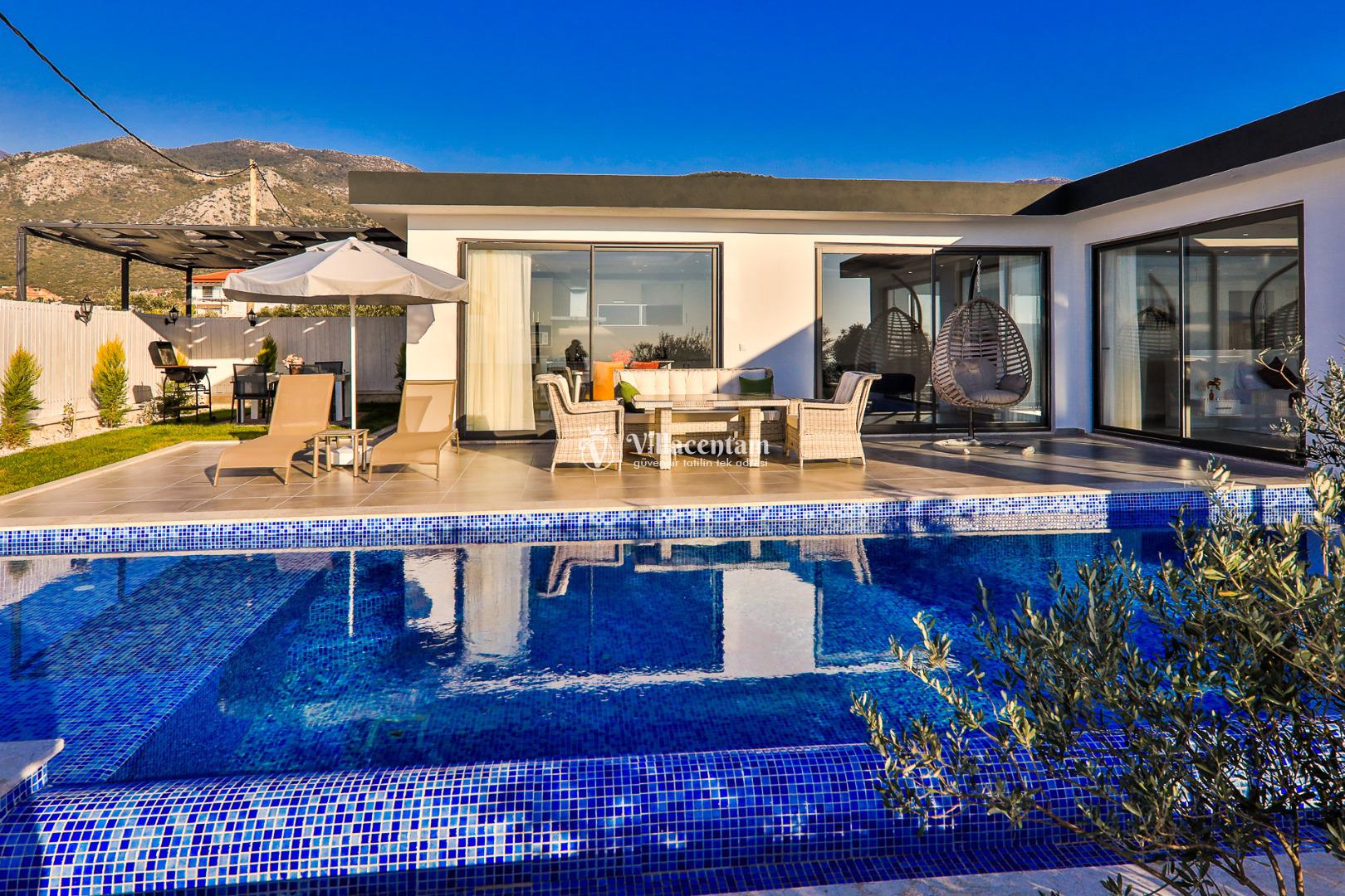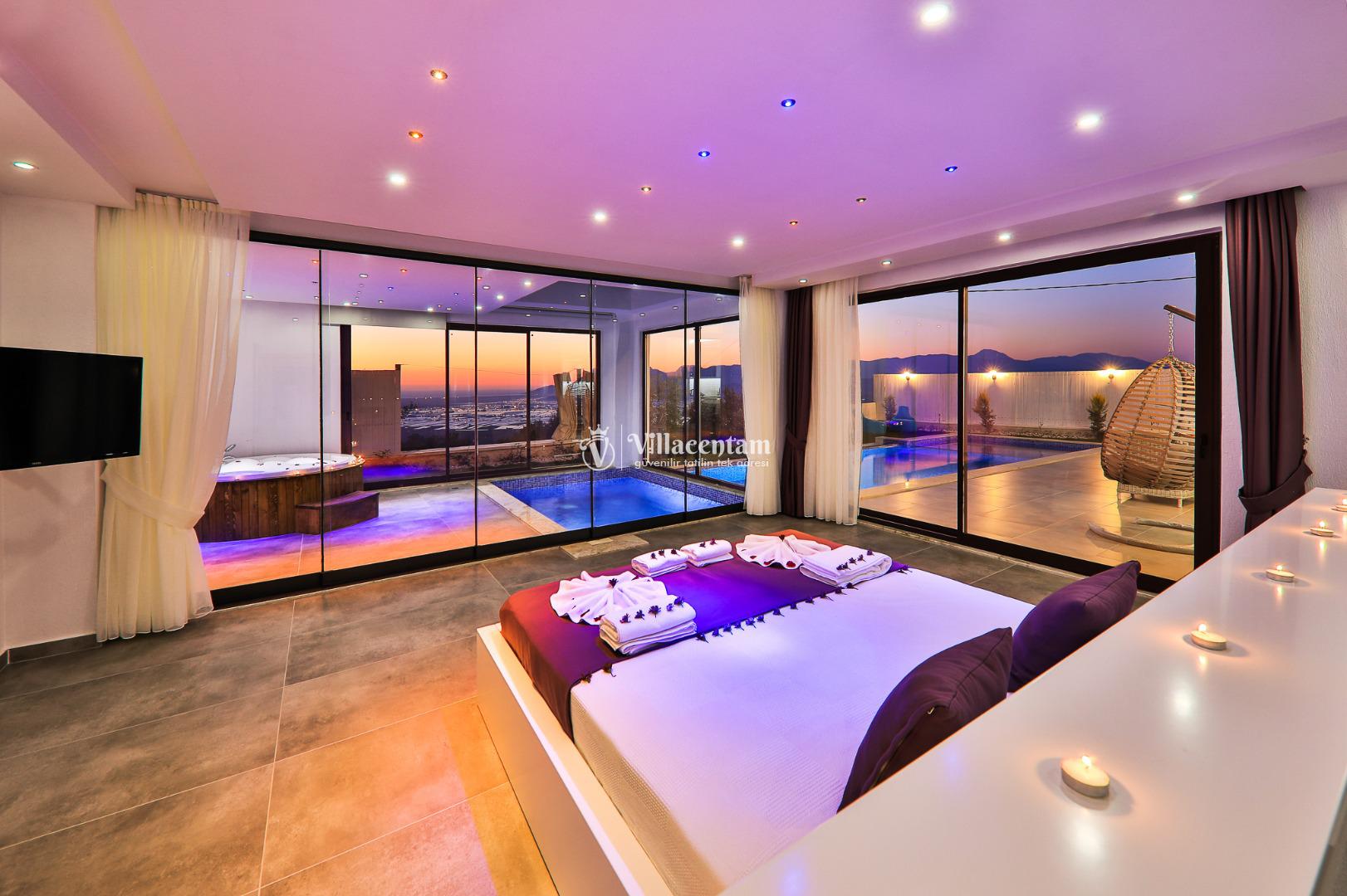 Villa Mehcan, Kalkan Üzümlü mevkiinde konumlanmakta olan eşsiz doğa manzarasına hakim sessizlik ve sakinlik içerisinde bulunan kiralık villalarımız arasında yer almaktadır. Modern ve konforlu bir şekilde dekore edilen yazlık villamızda 1 adet yatak odası bulunmakta olup, 2 kişiye konaklama imkanı sağlamaktadır. Yatak odalarının bir tanesinin içerisinde tüm yılın vermiş olduğu yorgunluğu atabileceğiniz jakuzi yer almaktadır. Havuz ve havuz terası korunaklı hale getirilen yazlık villamızı muhafazakar aileler ve balayı çiftleri rahatlıkla tercih edebilirler. Ferah ve geniş bir havuz terasına sahip olan villamızın bahçesinde oturma alanları bulunmaktadır. Sevdiklerinizle birlikte tüm gözlerden uzakta baş başa hoş vakit geçirebileceğiniz harika bir yazlık villada tatil için Villa Mehcan' ı tercih edebilirsiniz.