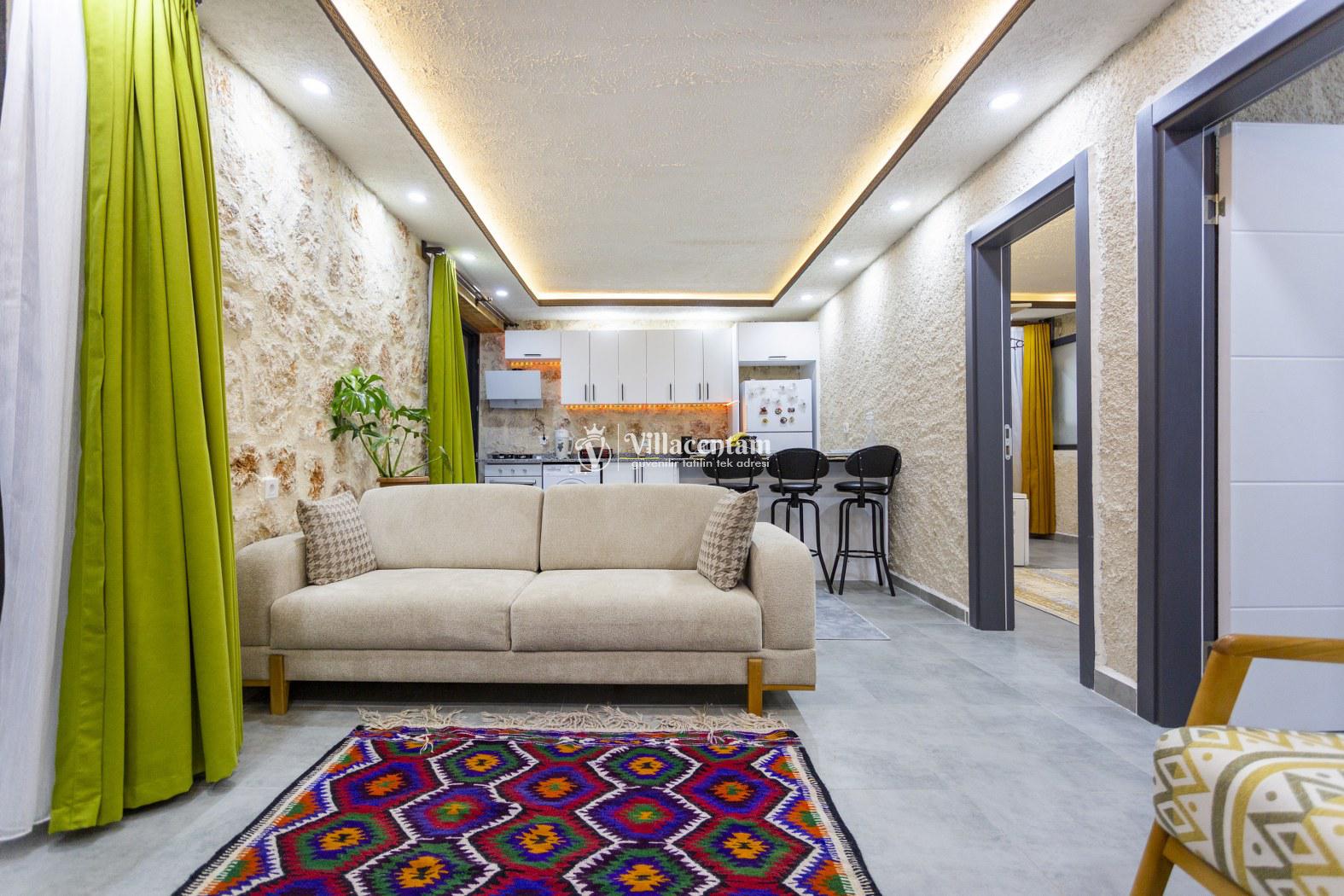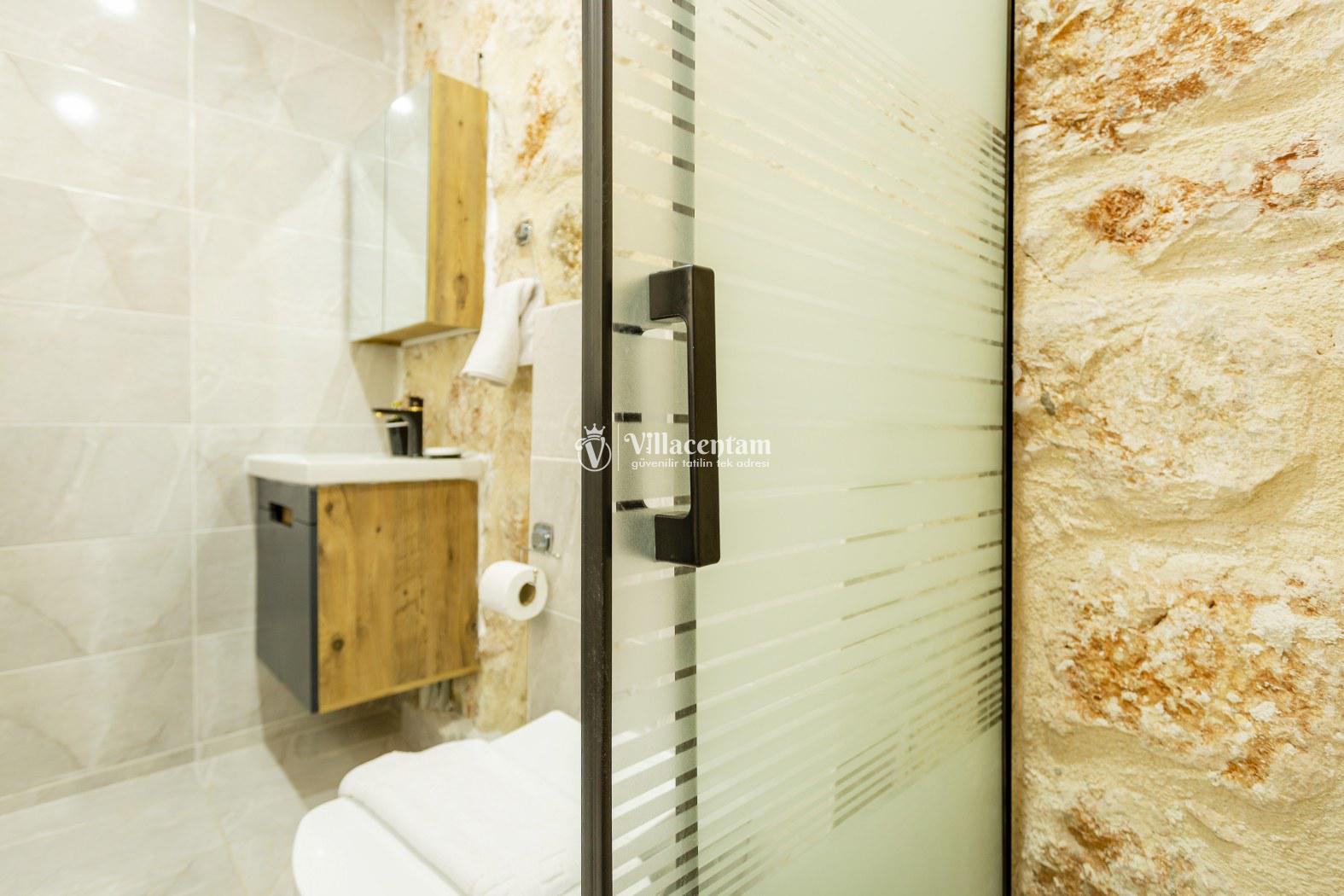 Villa Meral, Kalkan Sarıbelen köyünde konumlanmakta olan yeşilliklerle kaplı doğa manzarasına hakim, taş yapı mimarisi ile otantik bir görünüme sahip kiralık villalarımız arasında yer almaktadır. Modern ve konforlu bir şekilde dekore edilen yazlık villamızda 2 adet yatak odası bulunmakta olup, 4 kişiye konaklama imkanı sağlamaktadır. Yatak odalarından bir tanesinin içerisinde tüm yılın vermiş olduğu yorgunluğu giderebileceğiniz jakuzi yer almaktadır. Her bir detayın en ince ayrıntısına kadar düşünüldüğü villamızda keyifli dakikalar geçirebileceğiniz langırt, masa tenisi, mini çocuk oyun alanı, mini trombolin ve eğlenceli zamanlar geçirebileceğiniz boxer makinası mevcuttur. Havuz ve havuz terası korunaklı hale getirilen kiralık villamızı muhafazakar aileler, balayı çiftleri ve çekirdek aileler rahatlıkla tercih edebilirler. Aynı zamanda villamızın özel yüzme havuzuna entegre sığ havuz yer almaktadır. Sessizlik ve sakinlik içerisinde huzur dolu bir yazlık villada balayı tatili için Villa Meral’ i tercih edebilirsiniz.