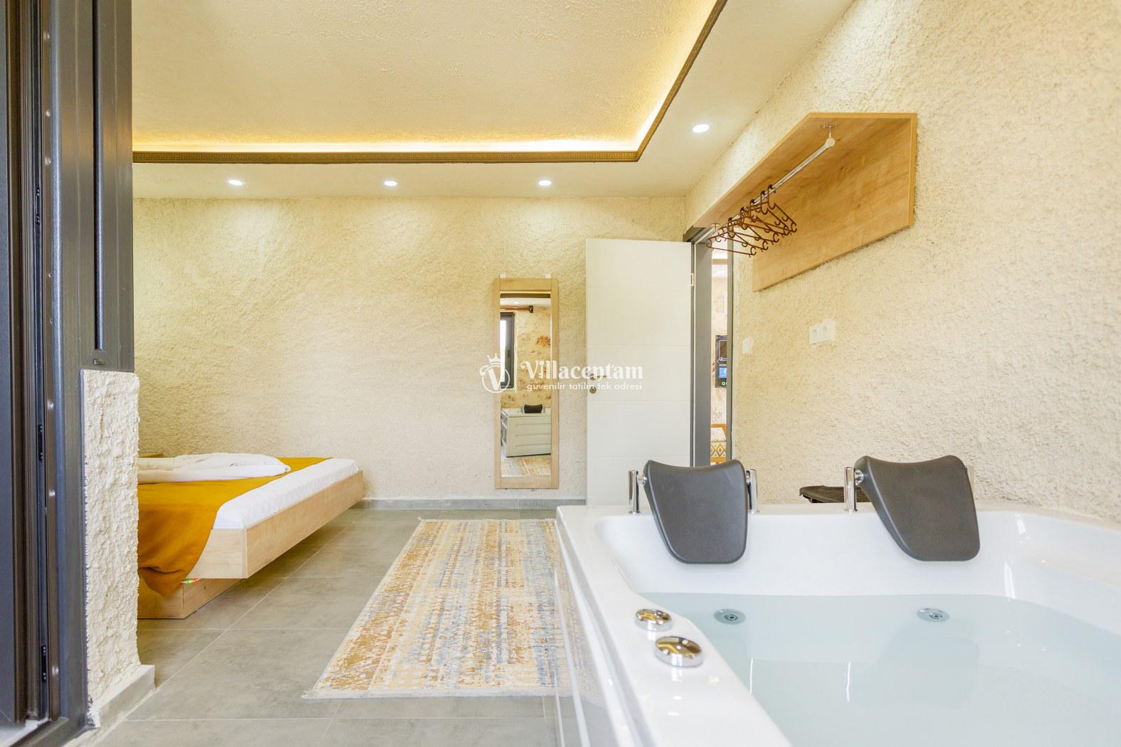 *Villalarda sıcak su için güneş enerjili su ısıtma sistemleri kullanılmaktadır. Çok yoğun sıcak su kullanımında, yoğunluğa ve su tankının büyüklüğüne bağlı olarak su tankında sıcak su tükenebilmekte ve tekrar suyun ısınması için belirli bir süre geçmesi gerekmektedir. Bu not sadece bu villa ile ilgili değil, tüm villalarımız için geçerli bir durumdur.