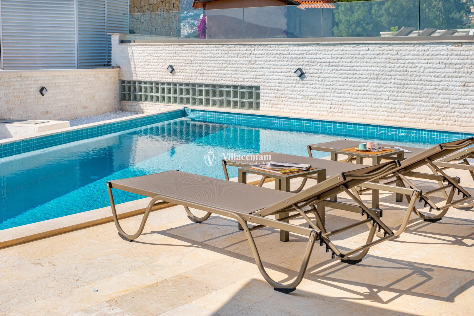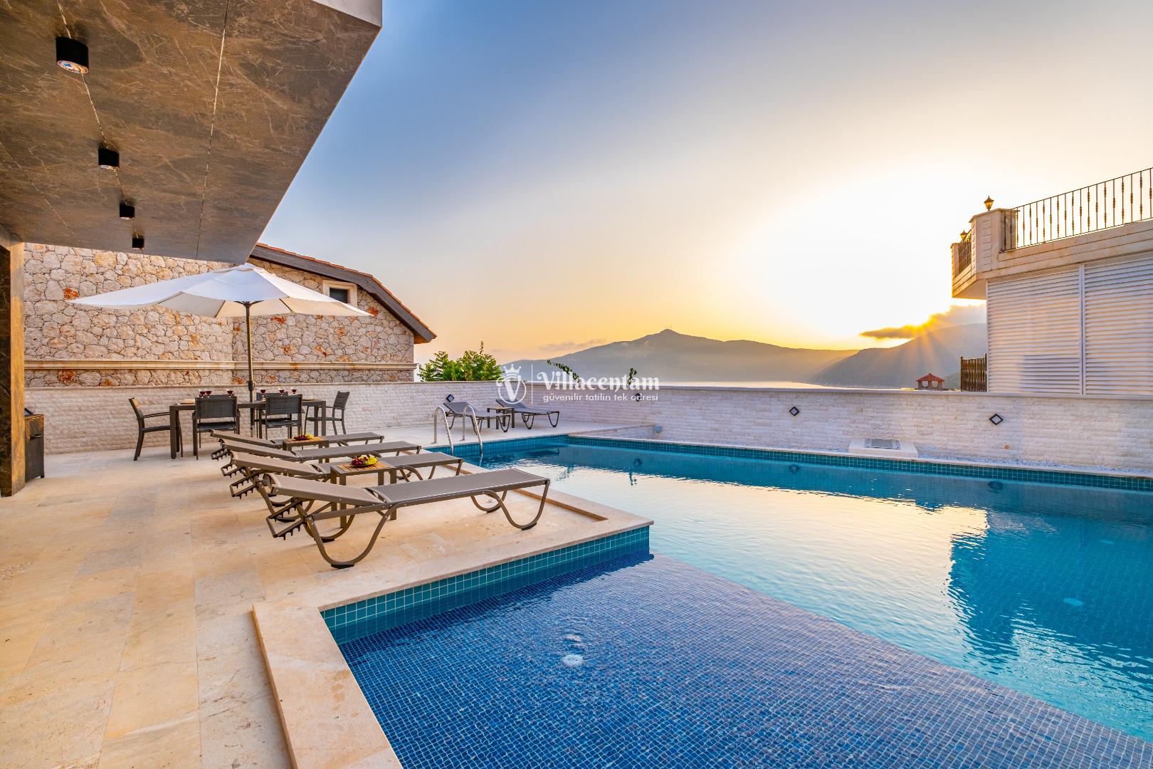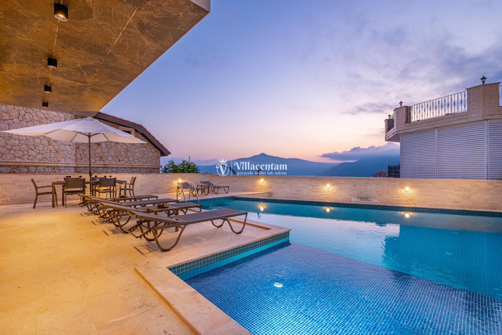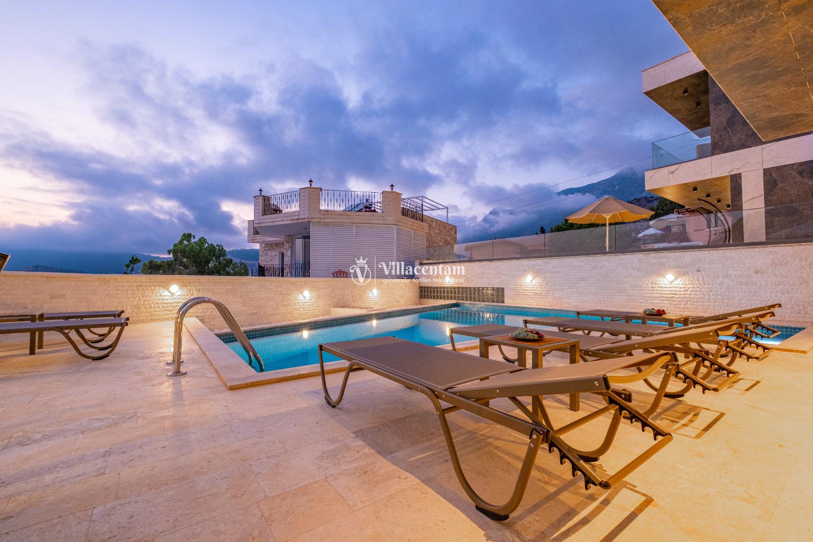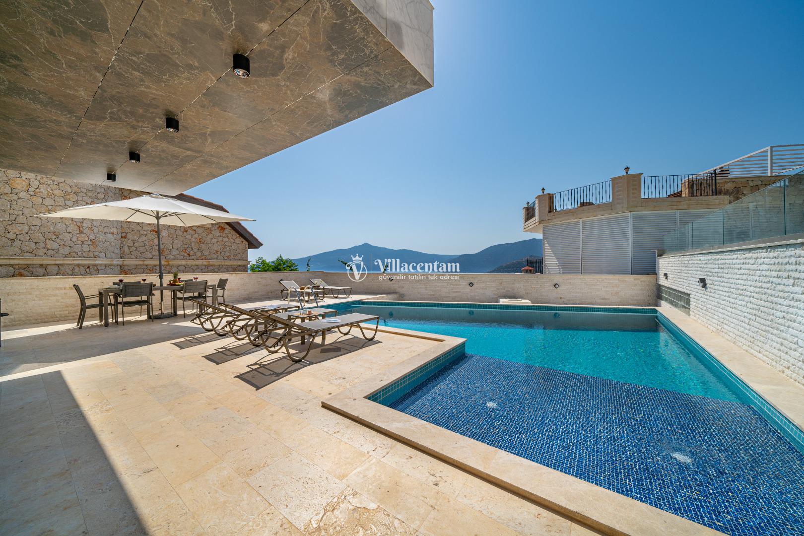 Modern mimariye sahip villamızda özel yüzme havuzu, jakuzi, sauna, Türk hamamı ve ısıtmalı kapalı havuz gibi ayrıcalıklı özellikler bulunmaktadır. Geniş havuz terası, güneşlenme alanı ve oturma grupları sayesinde gün boyu keyifli vakit geçirebilir, akşam saatlerinde ise Kalkan’ın eşsiz manzarası eşliğinde dinlenebilirsiniz.