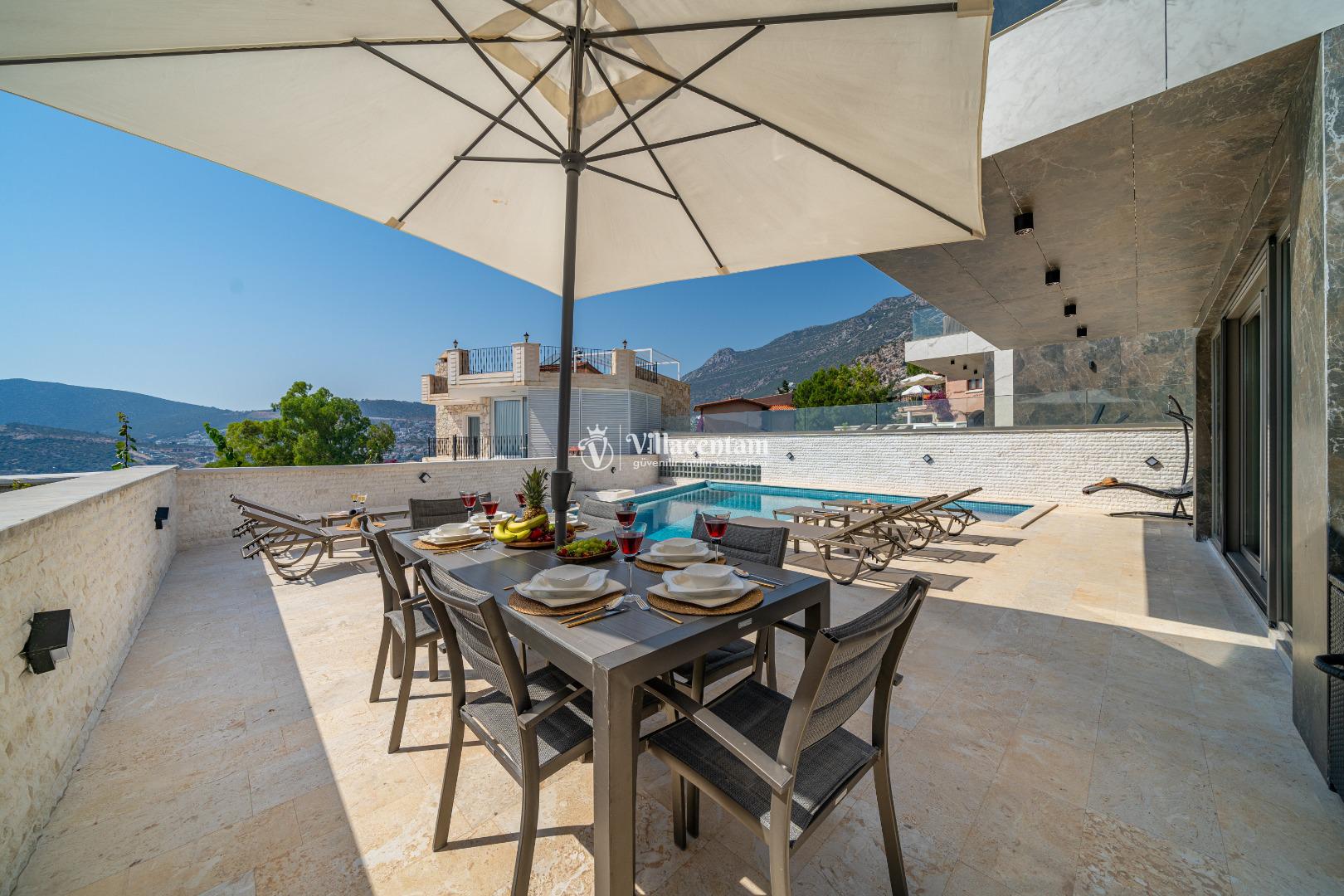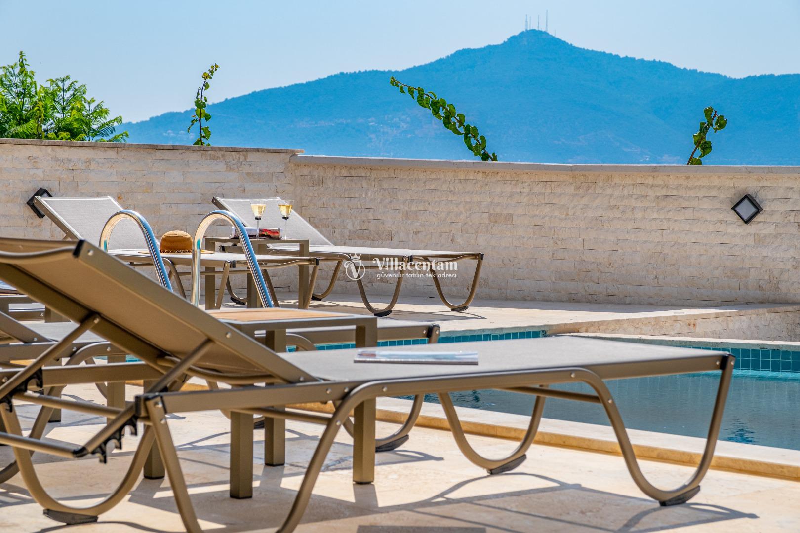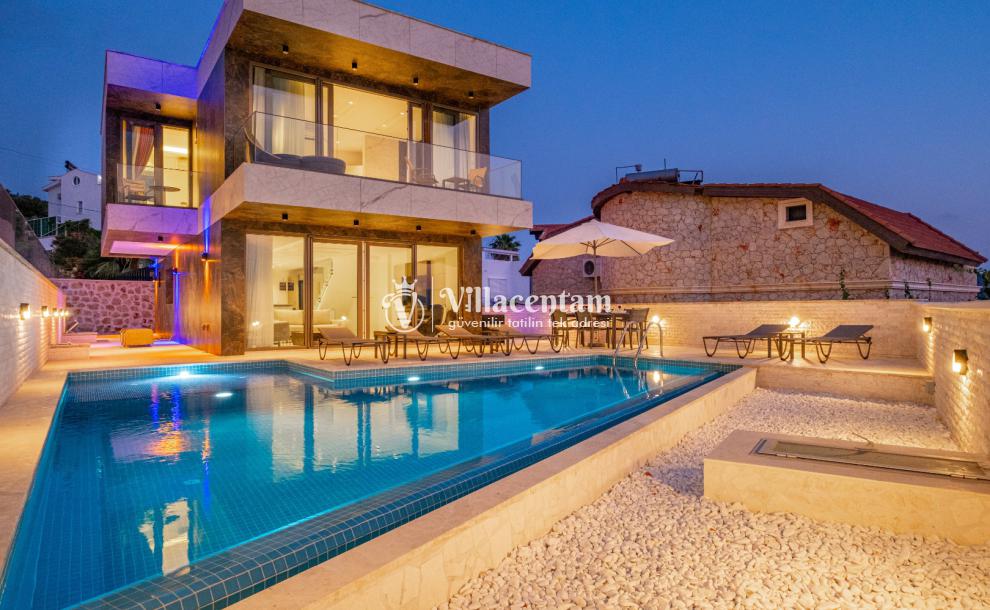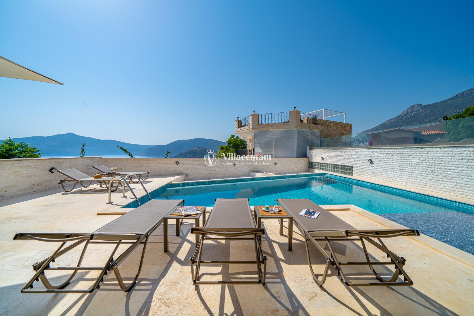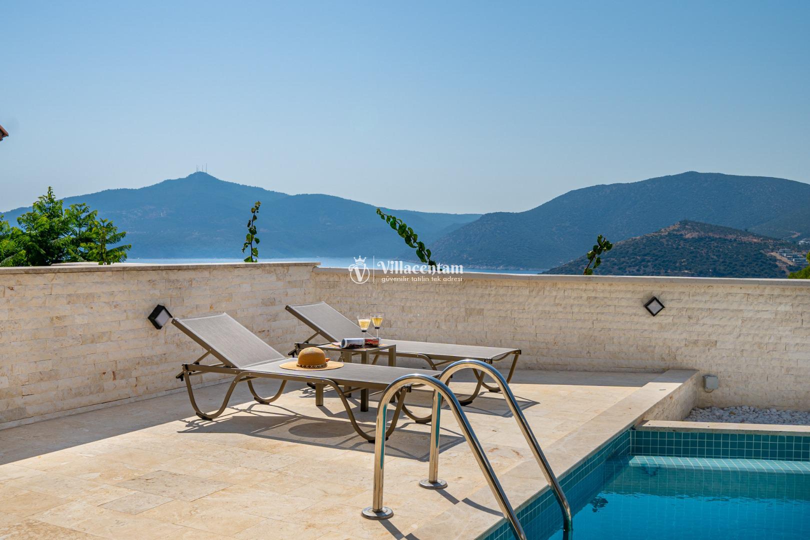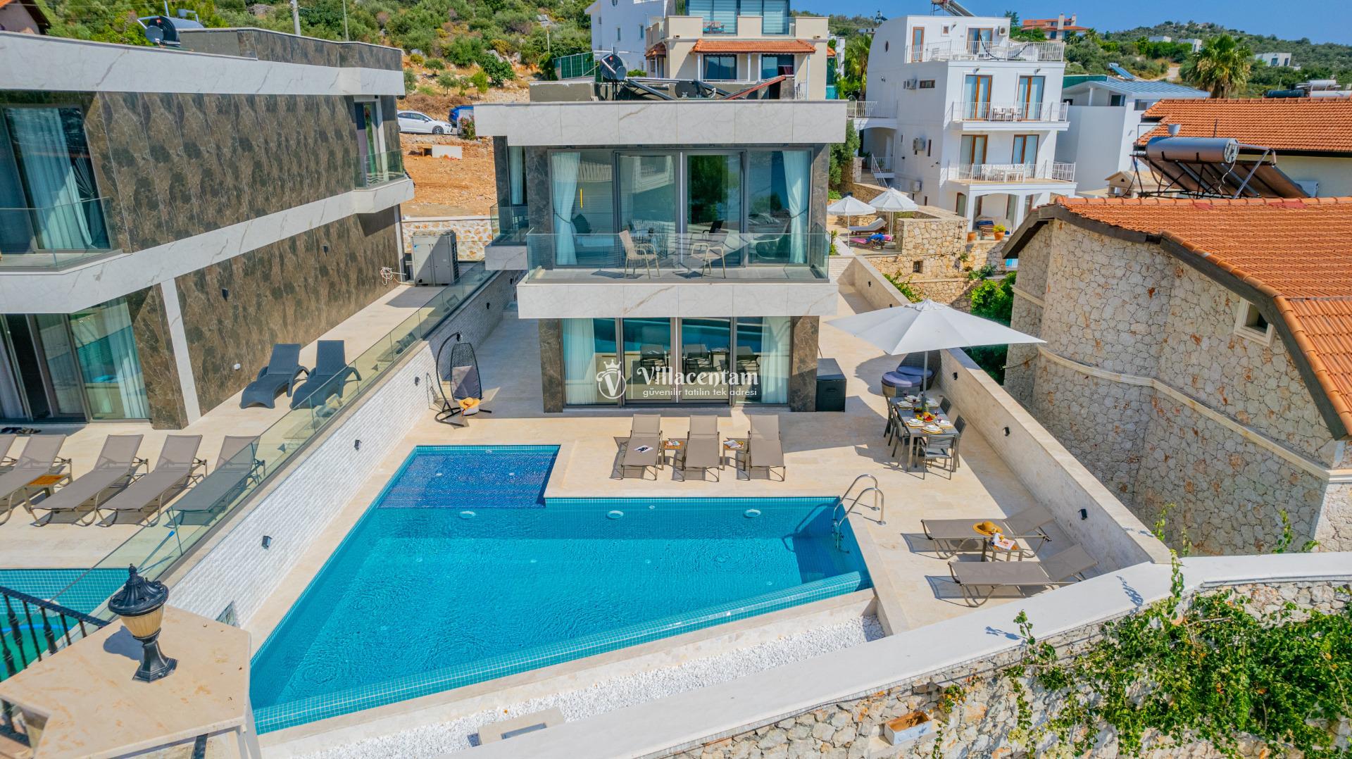 Modern mimariye sahip villamızda özel yüzme havuzu, jakuzi, sauna, Türk hamamı ve ısıtmalı kapalı havuz gibi ayrıcalıklı özellikler bulunmaktadır. Geniş havuz terası, güneşlenme alanı ve oturma grupları sayesinde gün boyu keyifli vakit geçirebilir, akşam saatlerinde ise Kalkan’ın eşsiz manzarası eşliğinde dinlenebilirsiniz.