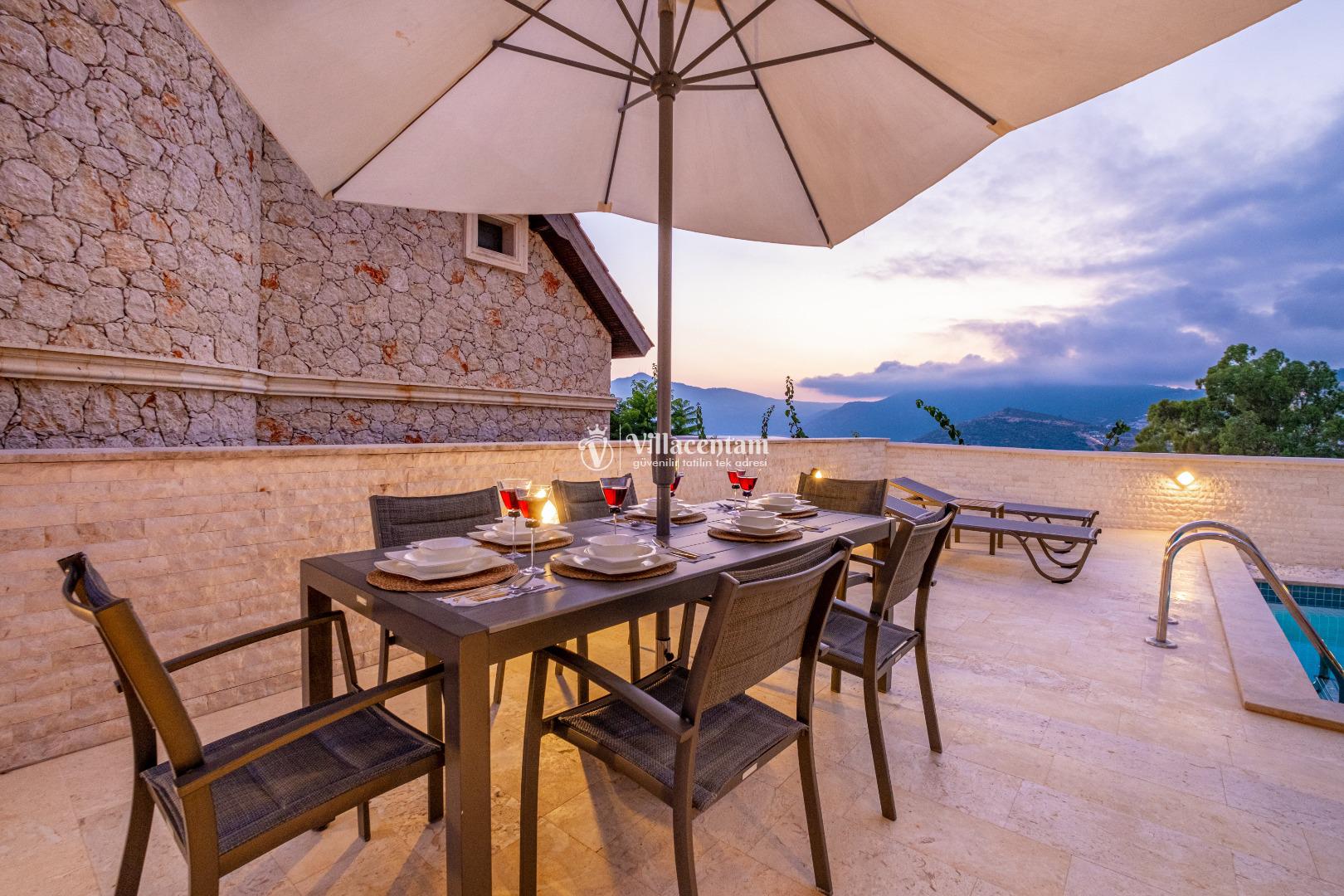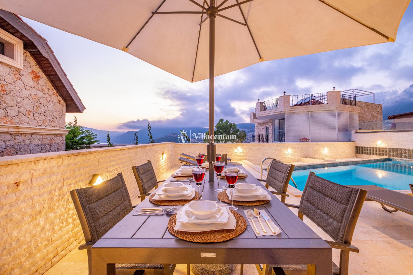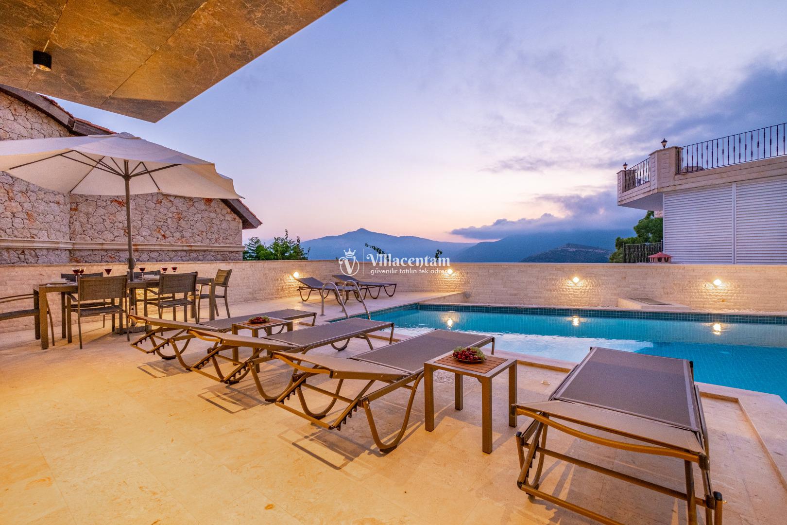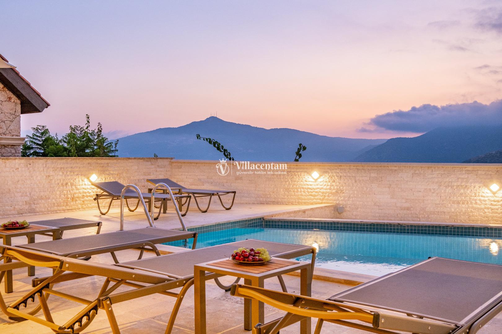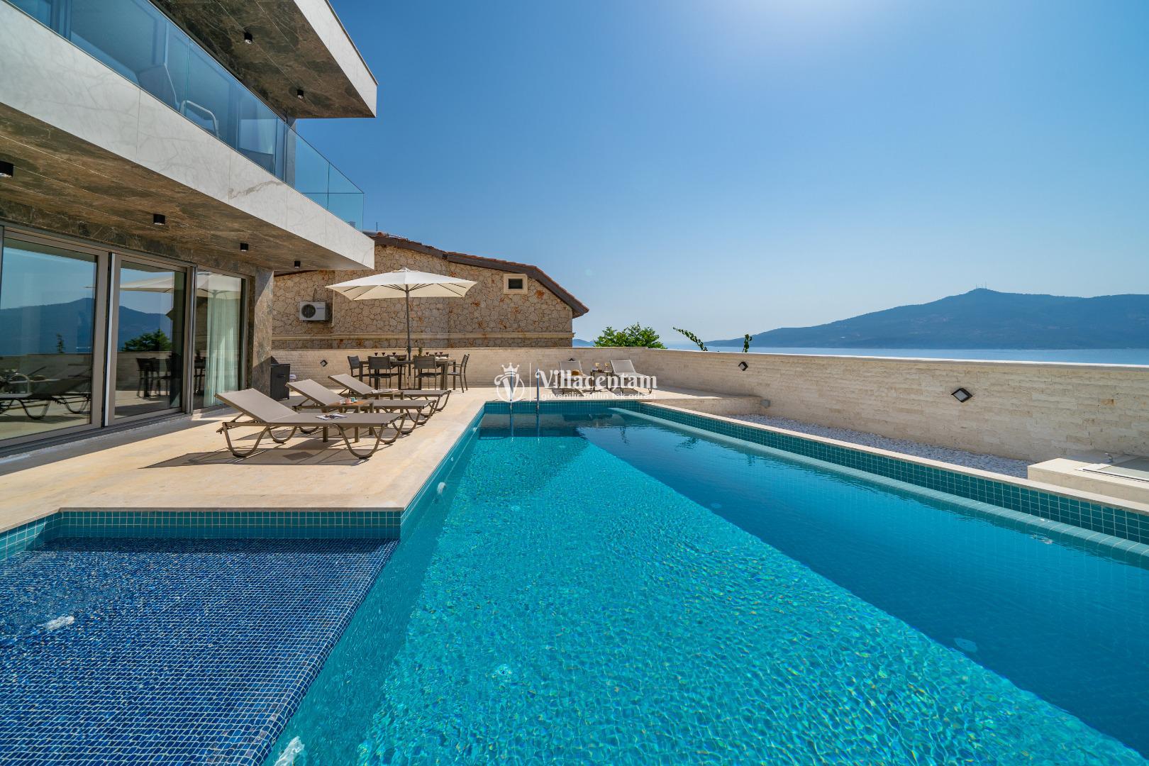 Modern mimariye sahip villamızda özel yüzme havuzu, jakuzi, sauna, Türk hamamı ve ısıtmalı kapalı havuz gibi ayrıcalıklı özellikler bulunmaktadır. Geniş havuz terası, güneşlenme alanı ve oturma grupları sayesinde gün boyu keyifli vakit geçirebilir, akşam saatlerinde ise Kalkan’ın eşsiz manzarası eşliğinde dinlenebilirsiniz.