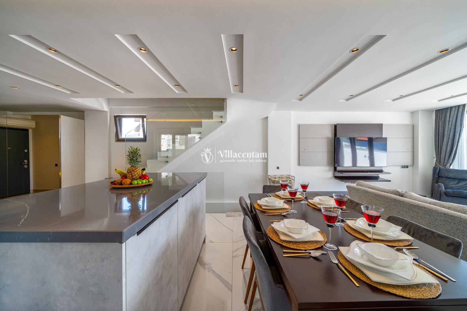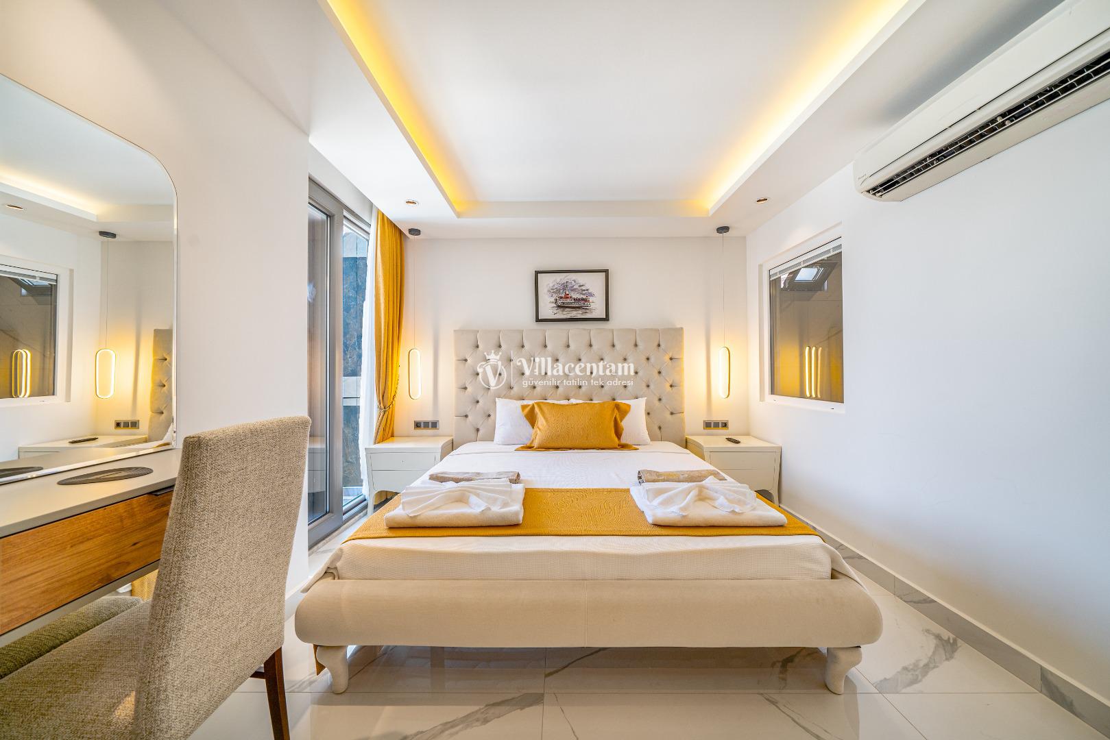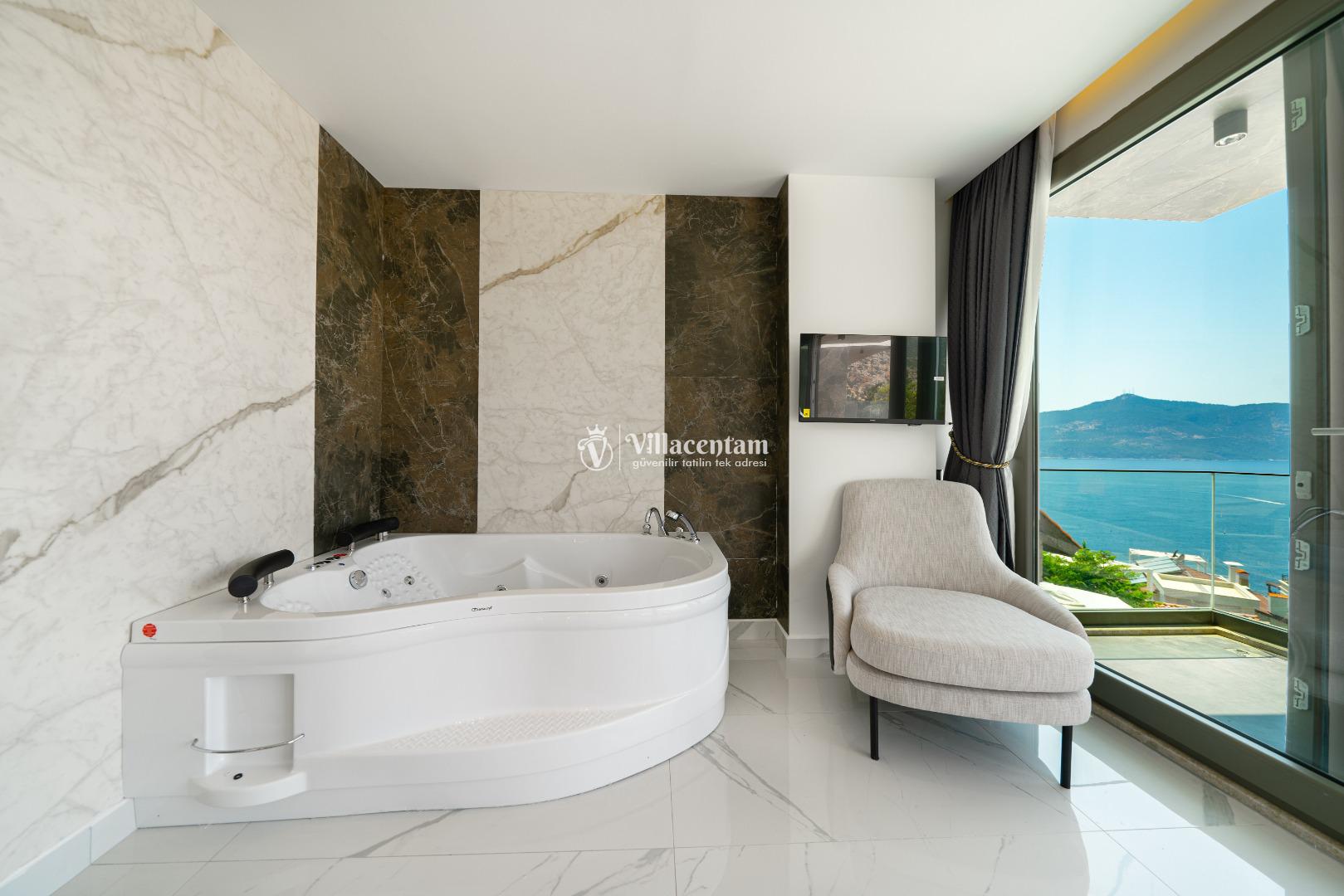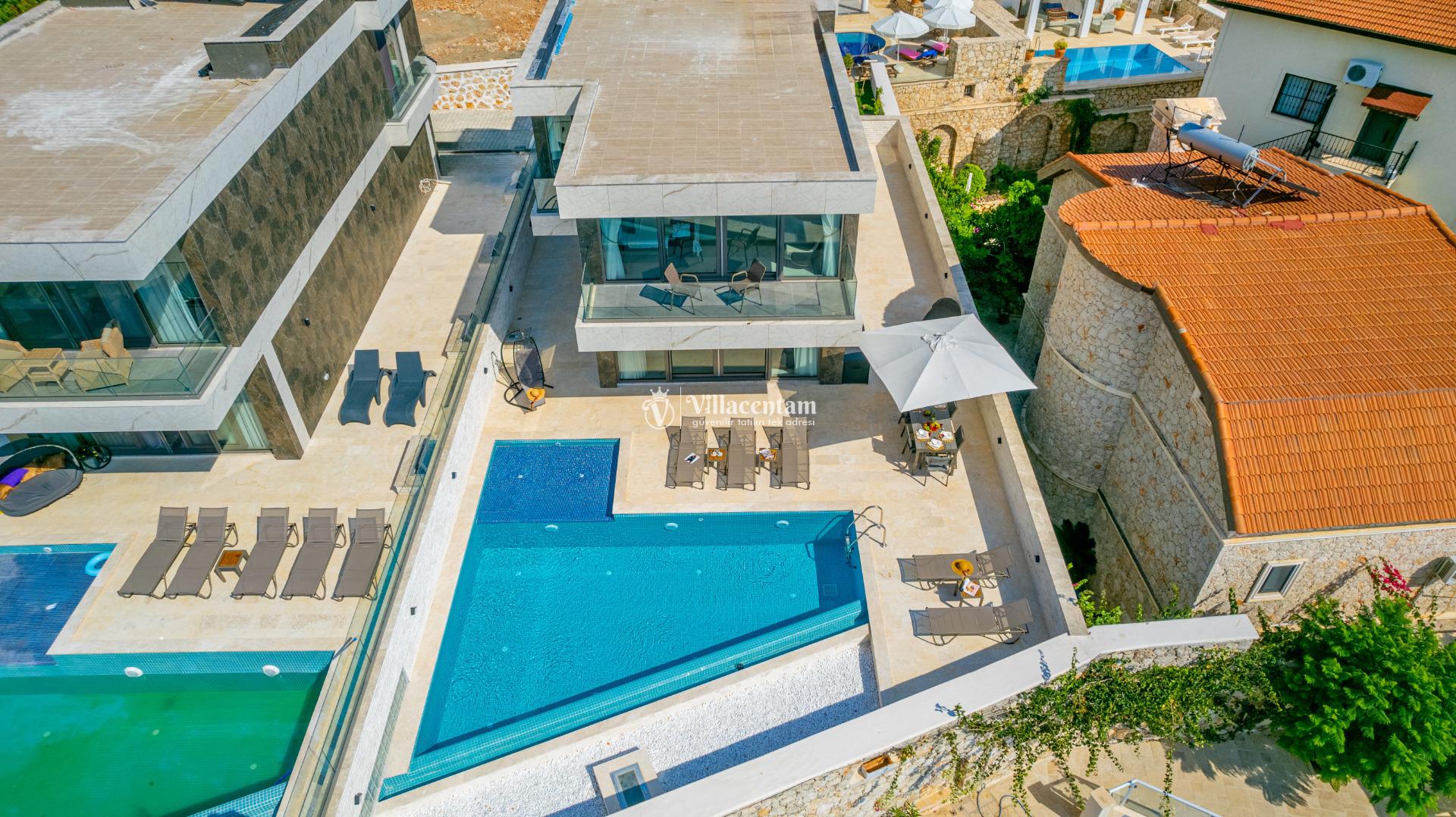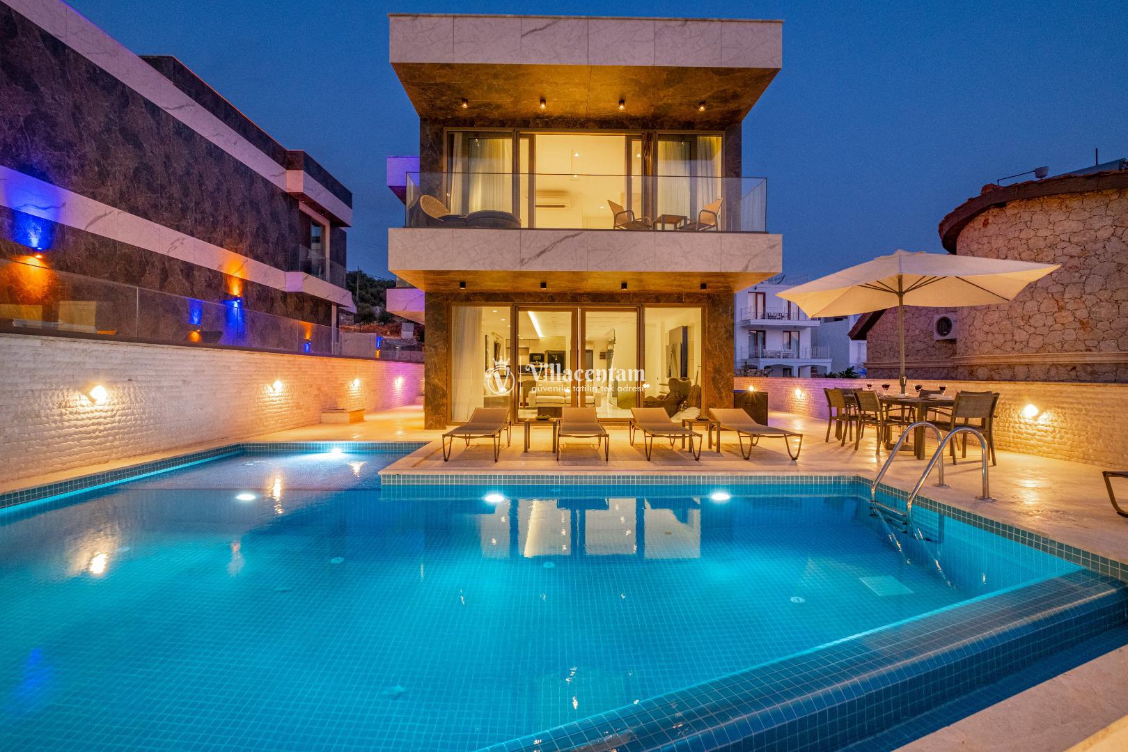 Modern mimariye sahip villamızda özel yüzme havuzu, jakuzi, sauna, Türk hamamı ve ısıtmalı kapalı havuz gibi ayrıcalıklı özellikler bulunmaktadır. Geniş havuz terası, güneşlenme alanı ve oturma grupları sayesinde gün boyu keyifli vakit geçirebilir, akşam saatlerinde ise Kalkan’ın eşsiz manzarası eşliğinde dinlenebilirsiniz.