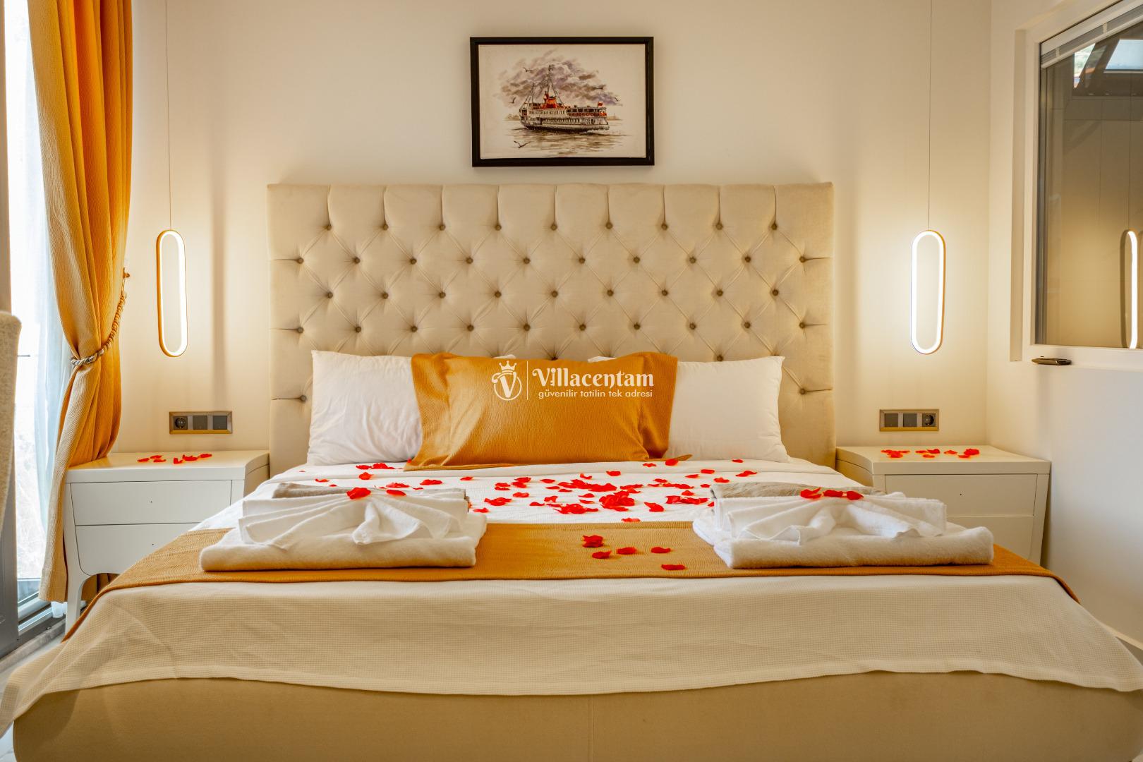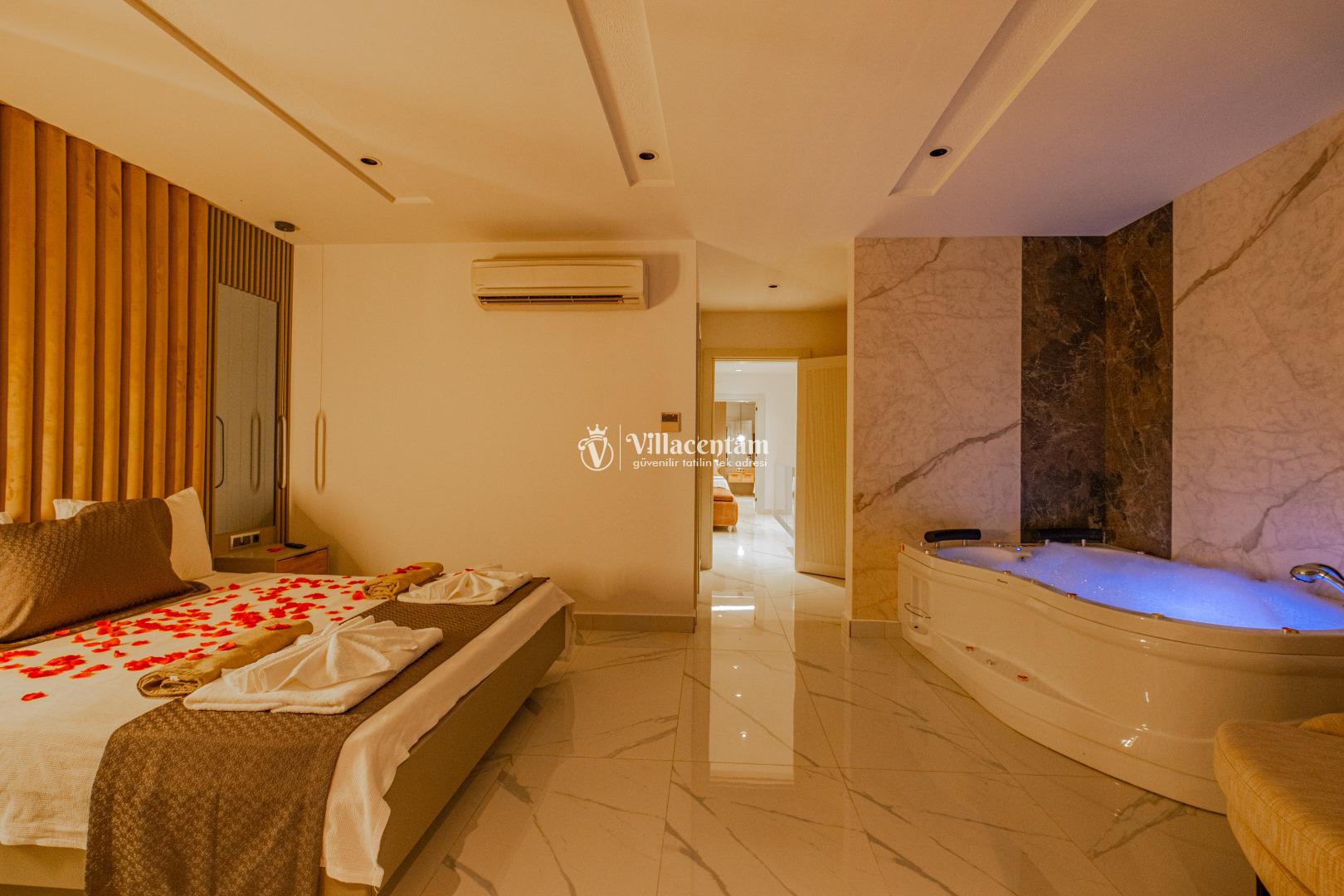 Not: Villamızın kapalı havuzu ısıtmalı olup, misafirlerimizin isteğine göre ücretsiz ( 1 Ekim - 30 Nisan tarihleri arasında ) olarak ısı derecesi ayarlanabilmektedir. Maksimum 25-28 derece) Diğer aylarda ise günlük 2000 TL ücret karşılığında hizmete sunulmaktadır.