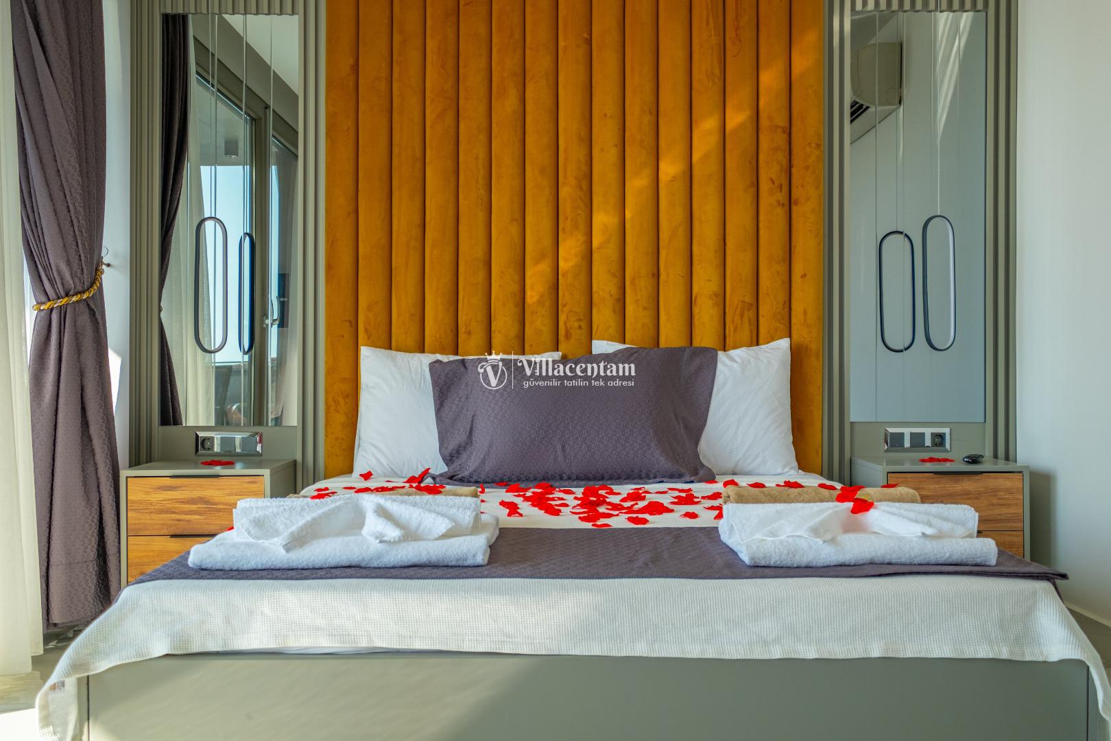 *Villalarda sıcak su için güneş enerjili su ısıtma sistemleri kullanılmaktadır. Çok yoğun sıcak su kullanımında, yoğunluğa ve su tankının büyüklüğüne bağlı olarak su tankında sıcak su tükenebilmekte ve tekrar suyun ısınması için belirli bir süre geçmesi gerekmektedir. Bu not sadece bu villa ile ilgili değil, tüm villalarımız için geçerli bir durumdur.