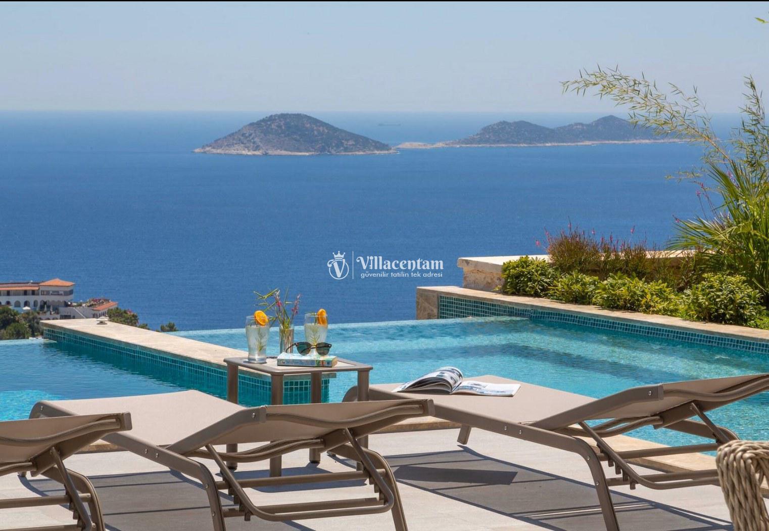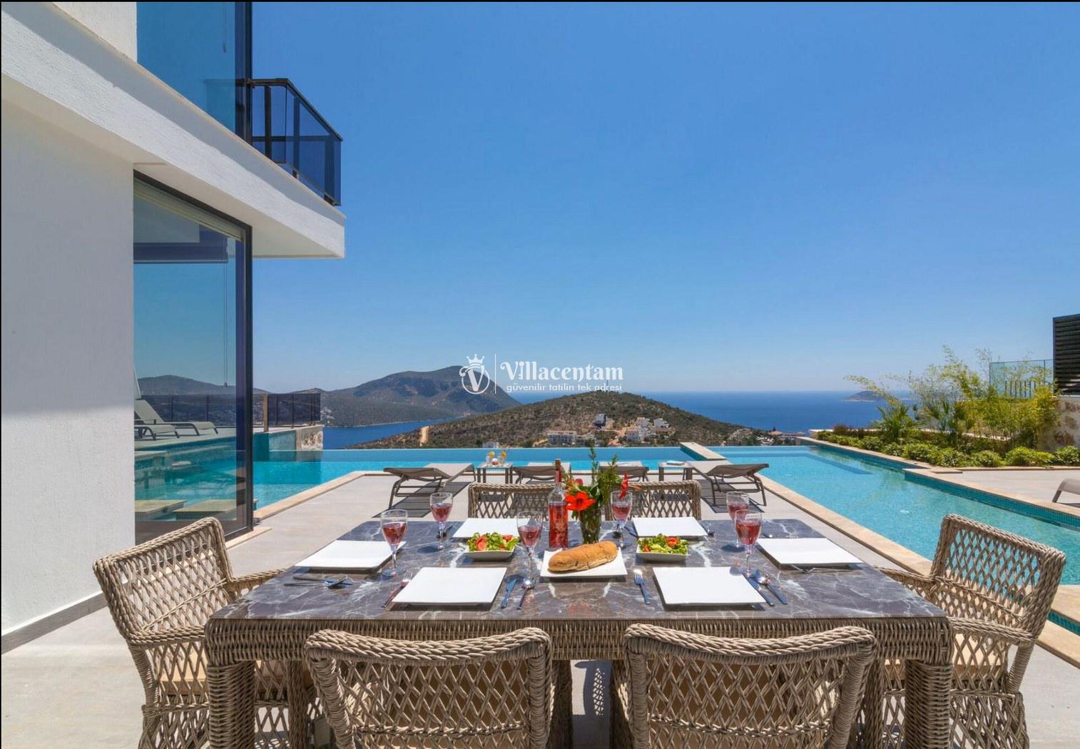 Villa Mirada 1, Kalkan Kalamar mevkiinde konumlanmakta olan muhteşem deniz manzarasına hakim lüks kiralık villalarımız arasında yer almaktadır. Modern ve konforlu bir şekilde dekore edilen yazlık villamızda 5 adet yatak odası bulunmakta olup, 10 kişiye konaklama imkanı sağlamaktadır. Geniş aileler ve kalabalık arkadaş grupları rahatlıkla konaklayabilmektedir. Ayrıca yazlık villamızın özel yüzme havuzunda jakuzi sistemi ve havuza entegre sığ havuz bulunmaktadır. Her sabah uyandığınızda gözlerinizi harika deniz manzarasına karşı açacağınız kiralık villamızda uzun uzun kahvaltı keyifleri yapabilir, havuzunuzun tadını çıkarabilirsiniz. Sevdiklerinizle birlikte hayallerinizin de ötesinde unutamayacağınız bir yazlık villada tatil için Villa Mirada 1’ i tercih edebilirsiniz.
