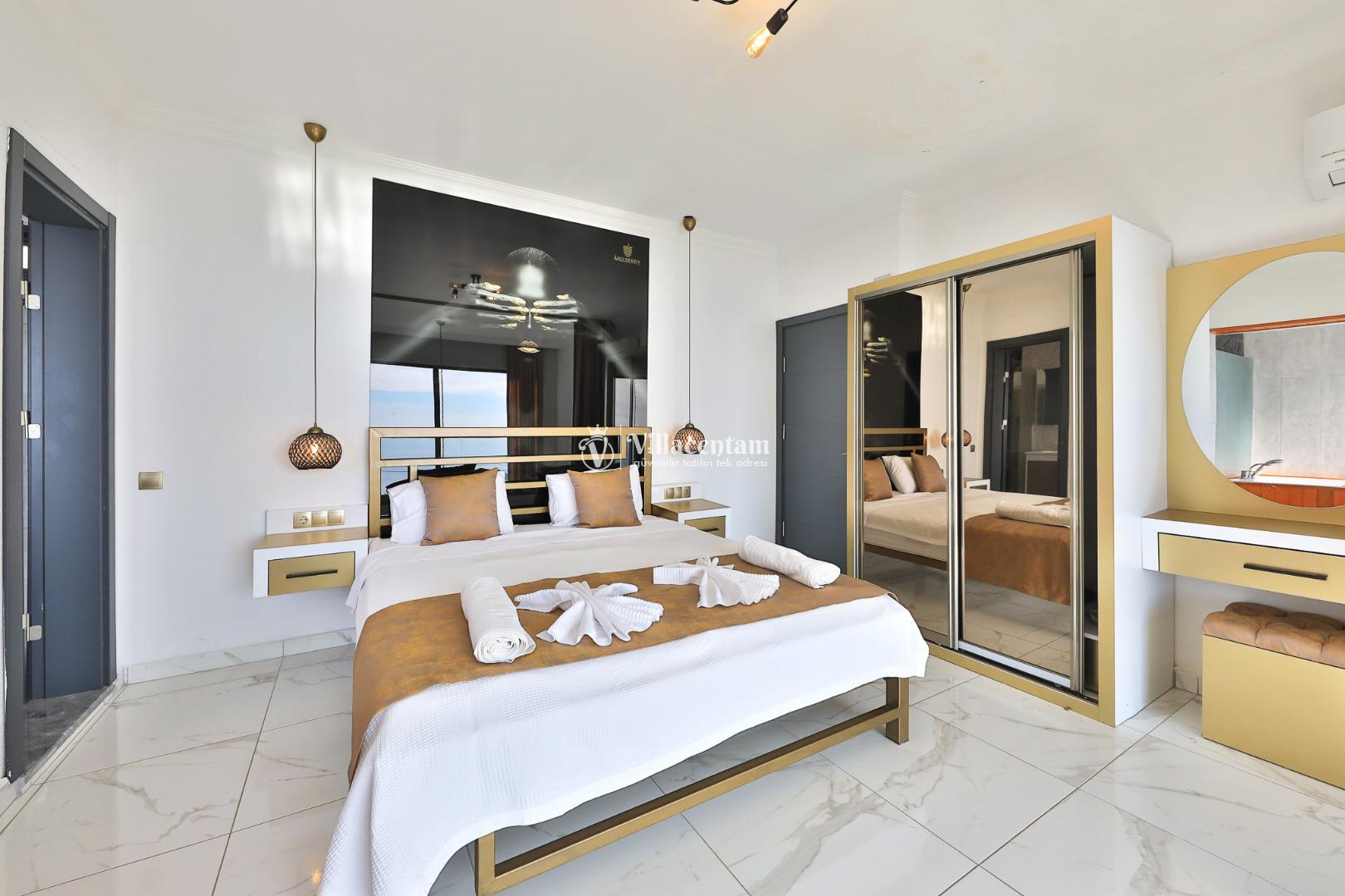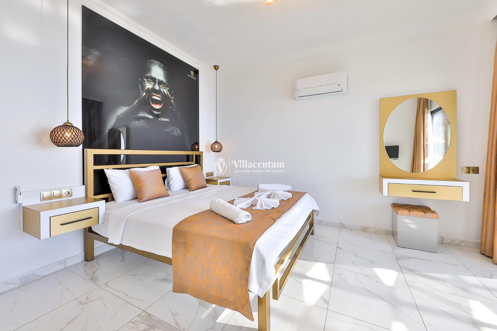 *Villalarda sıcak su için güneş enerjili su ısıtma sistemleri kullanılmaktadır. Çok yoğun sıcak su kullanımında, yoğunluğa ve su tankının büyüklüğüne bağlı olarak su tankında sıcak su tükenebilmekte ve tekrar suyun ısınması için belirli bir süre geçmesi gerekmektedir. Bu not sadece bu villa ile ilgili değil, tüm villalarımız için geçerli bir durumdur.