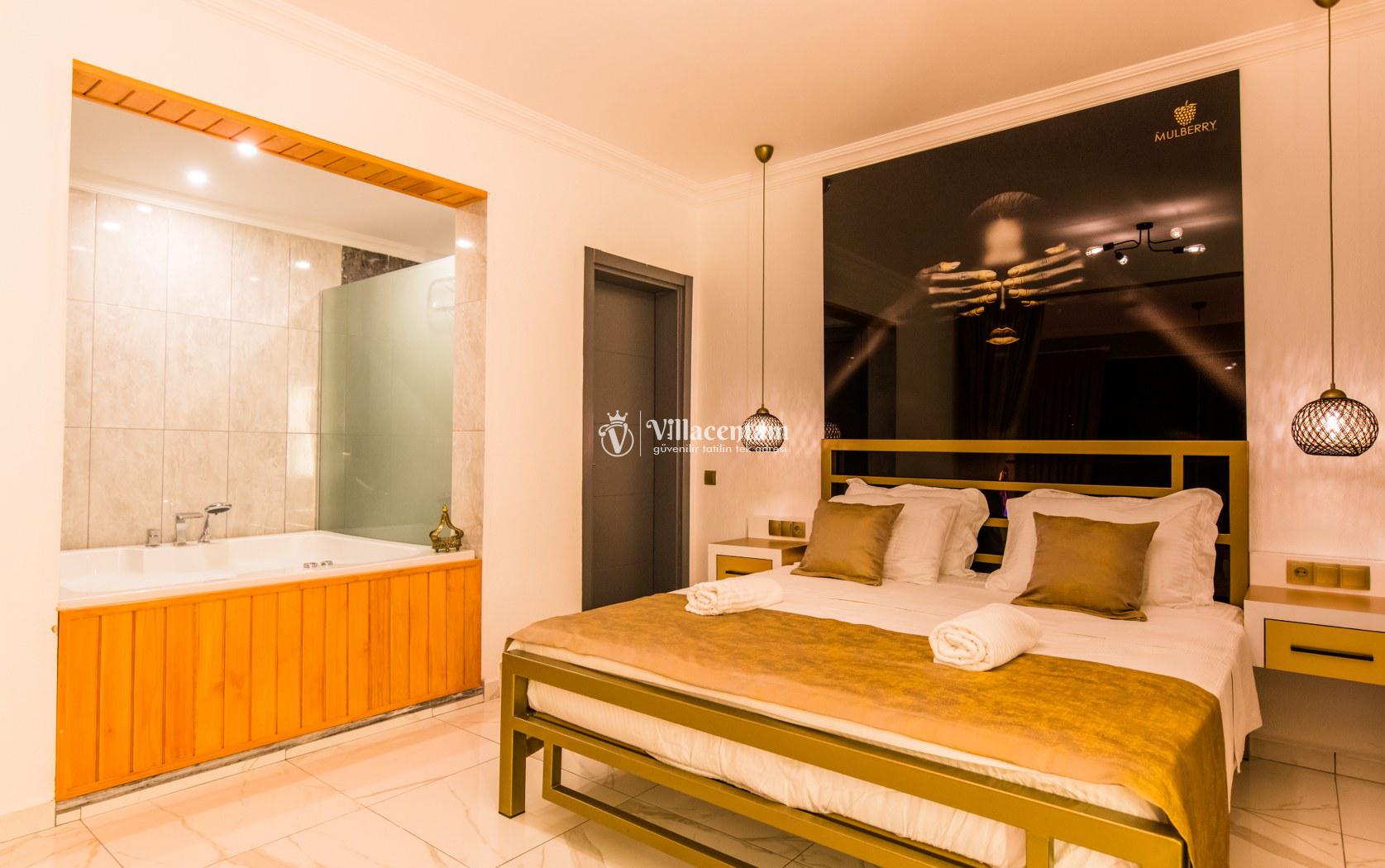 *Villalarda sıcak su için güneş enerjili su ısıtma sistemleri kullanılmaktadır. Çok yoğun sıcak su kullanımında, yoğunluğa ve su tankının büyüklüğüne bağlı olarak su tankında sıcak su tükenebilmekte ve tekrar suyun ısınması için belirli bir süre geçmesi gerekmektedir. Bu not sadece bu villa ile ilgili değil, tüm villalarımız için geçerli bir durumdur.