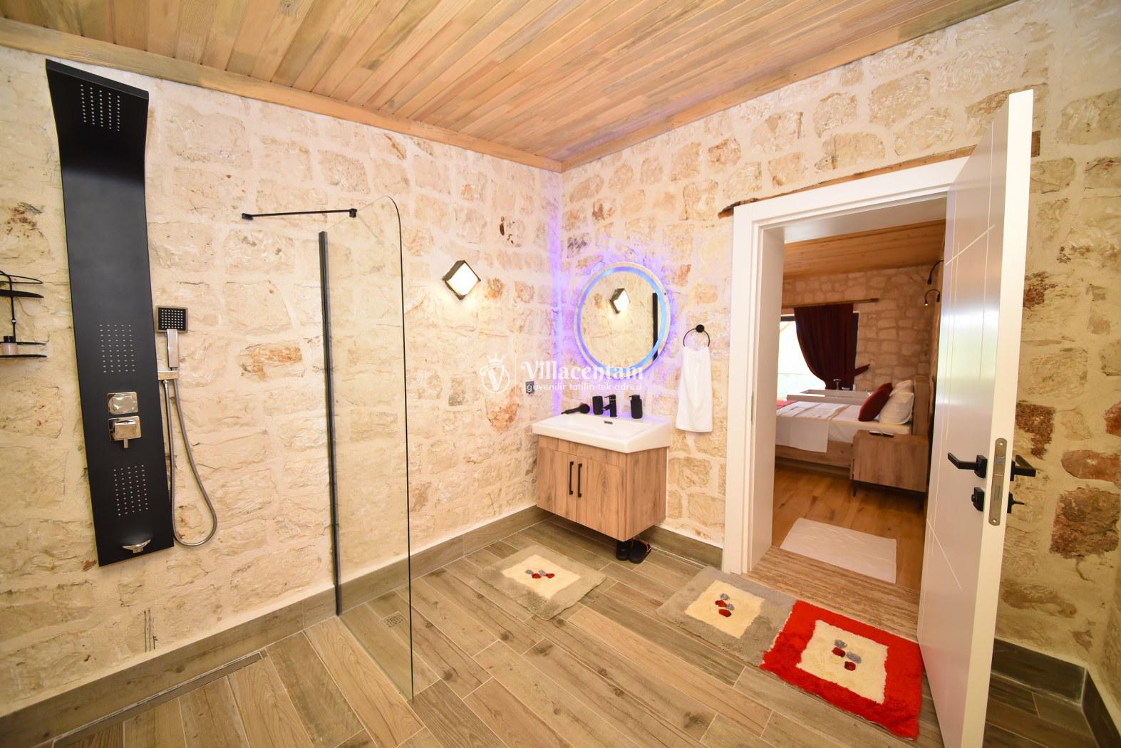 *Villalarda sıcak su için güneş enerjili su ısıtma sistemleri kullanılmaktadır. Çok yoğun sıcak su kullanımında, yoğunluğa ve su tankının büyüklüğüne bağlı olarak su tankında sıcak su tükenebilmekte ve tekrar suyun ısınması için belirli bir süre geçmesi gerekmektedir. Bu not sadece bu villa ile ilgili değil, tüm villalarımız için geçerli bir durumdur.
