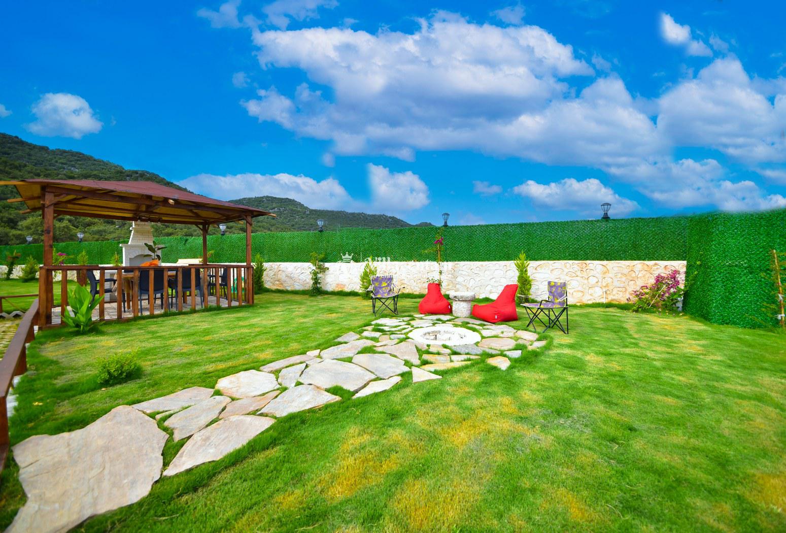 Geniş bahçesi ve keyifli yaşam alanlarıyla öne çıkan bu özel tatil villası, 2 yatak odası ve 4 kişilik konaklama kapasitesi ile aileler ve huzurlu bir tatil arayan misafirler için ideal bir konaklama seçeneği sunmaktadır. Ferah açık alanları sayesinde hem dinlenmek hem de keyifli vakit geçirmek mümkündür.