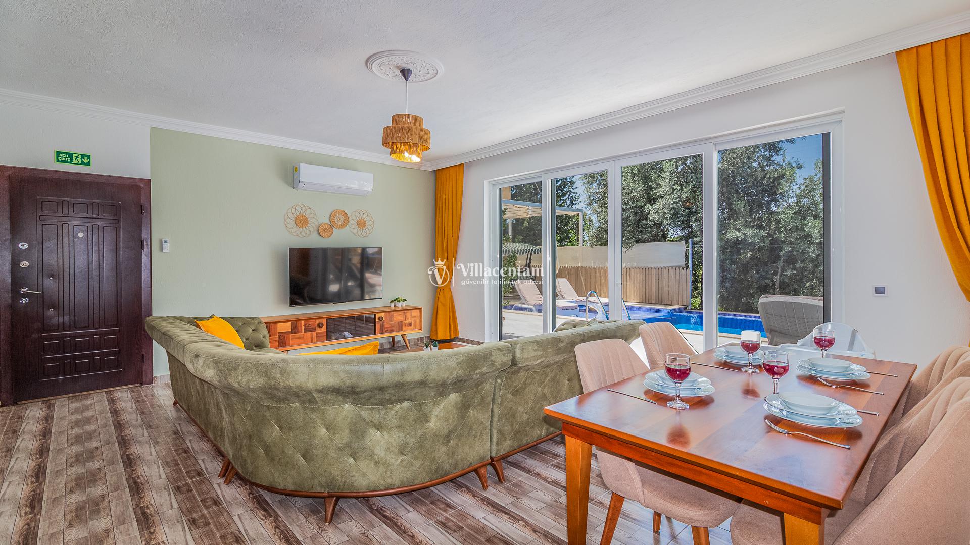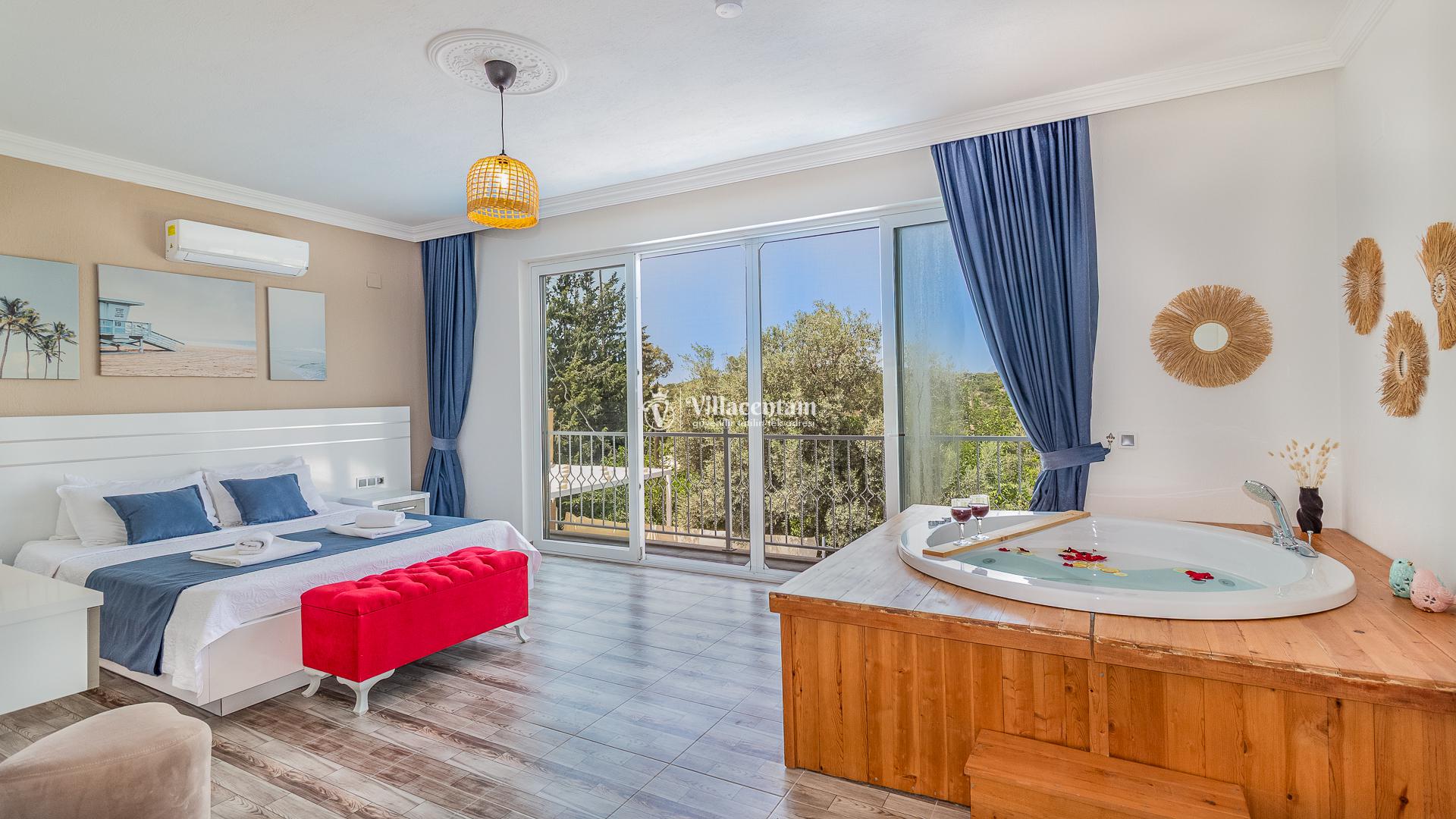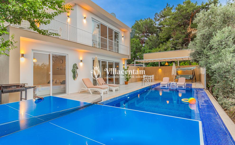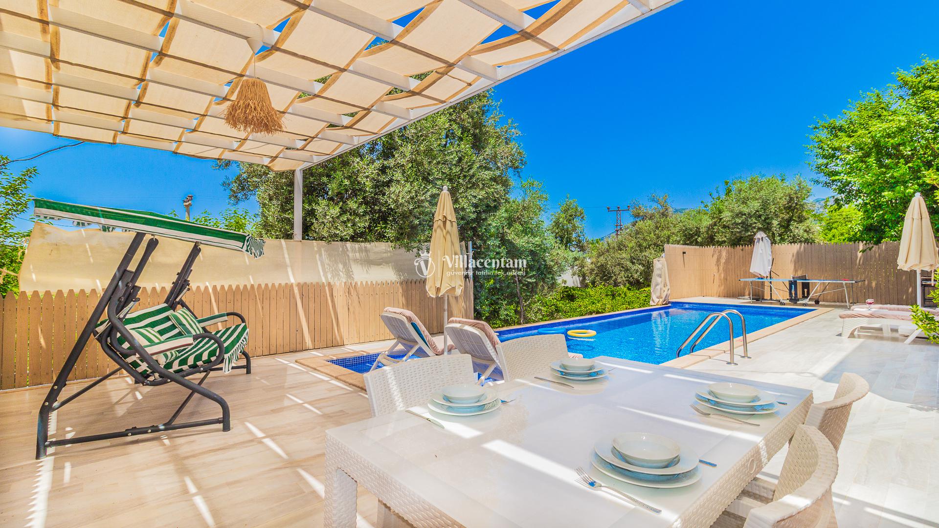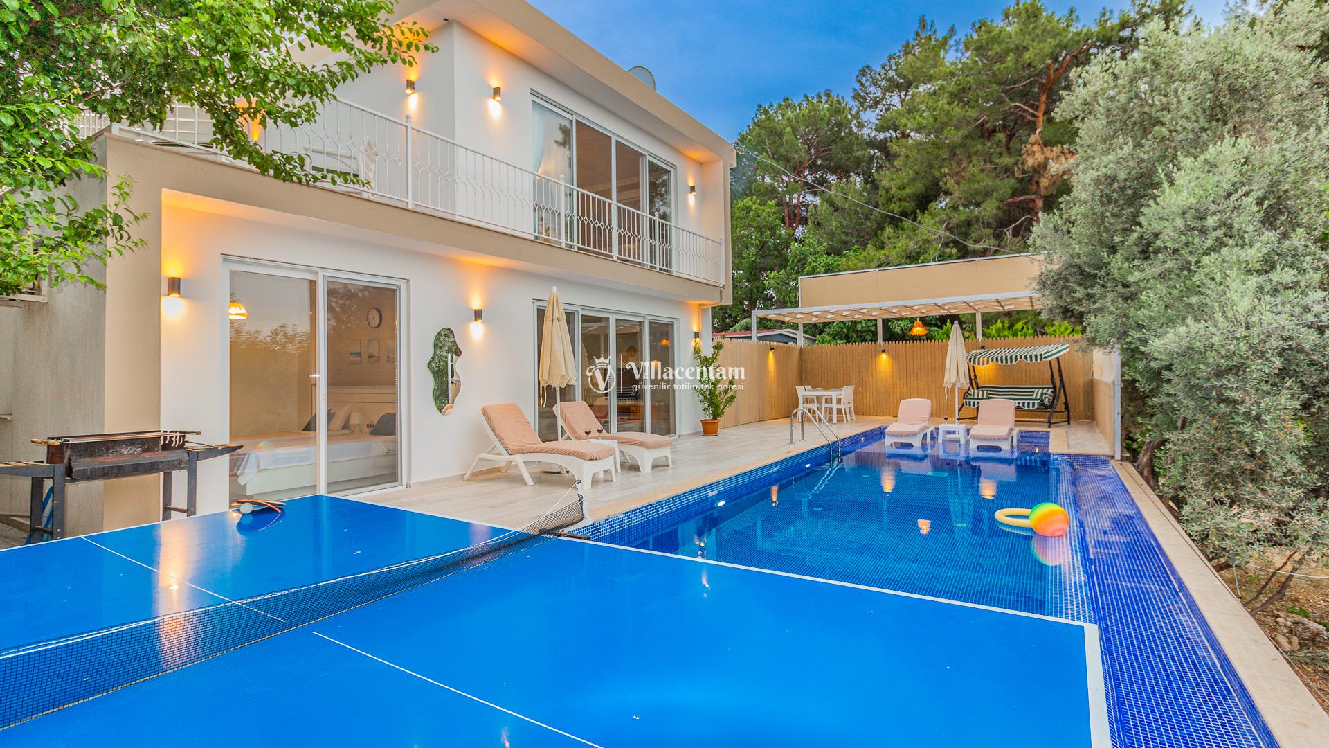Villamızda bulunan özel yüzme havuzu, dışarıdan görünmeyecek şekilde planlanmış olup tatiliniz boyunca özgürce vakit geçirmenize olanak tanır. Jakuzi, doğanın huzur veren atmosferi eşliğinde dinlenmeniz ve günün yorgunluğunu atmanız için özel olarak tasarlanmıştır. Modern ve konforlu iç dekorasyonu, tam donanımlı mutfağı, ferah salonu ve özenle hazırlanmış yatak odaları ile evinizin rahatlığını tatilde de yaşamanızı sağlar. Şehir kalabalığından uzak, sakin ve keyifli bir tatil arayan misafirler için ideal bir villadır.
