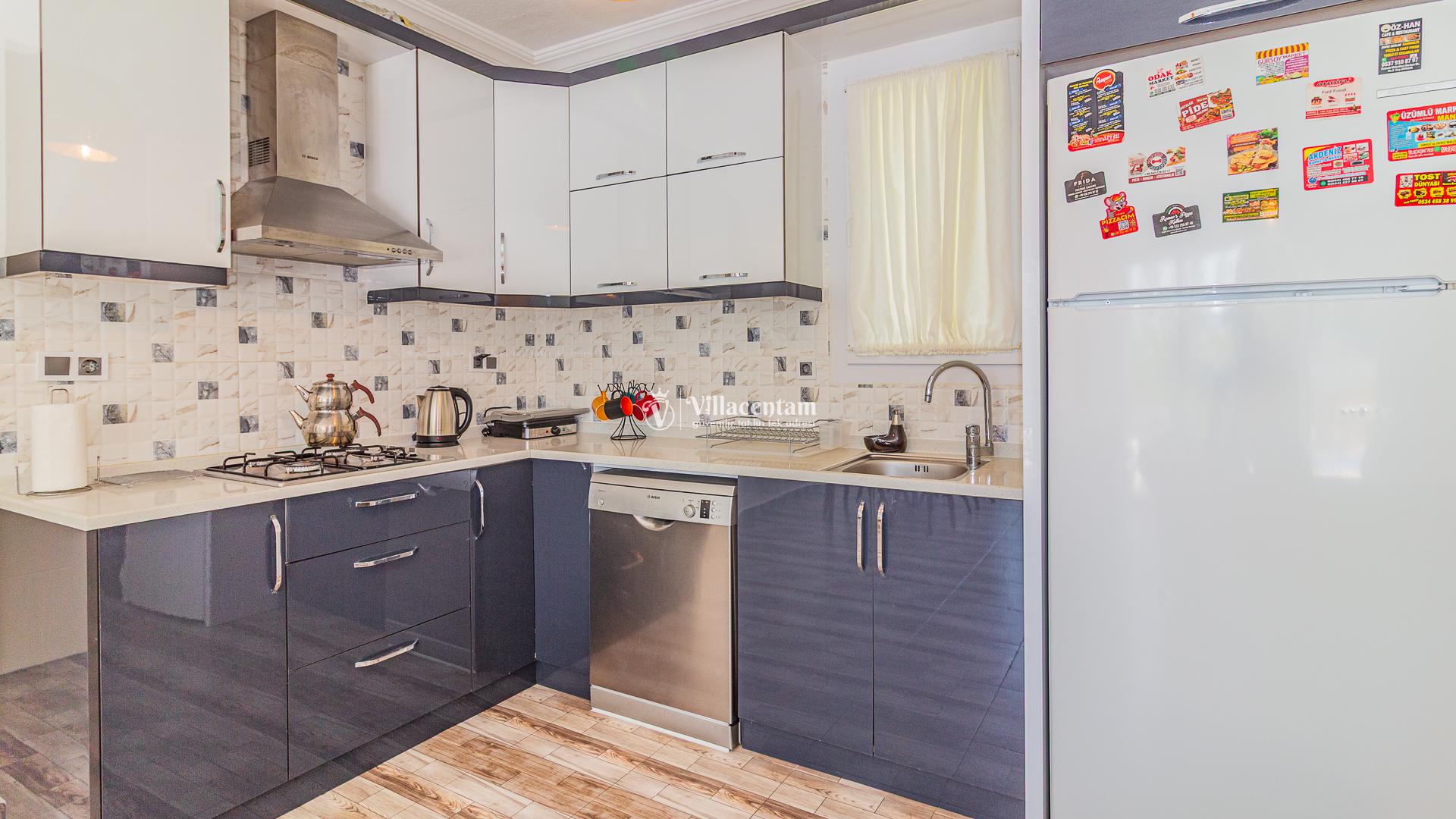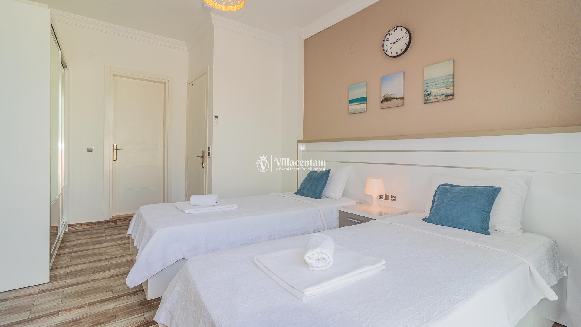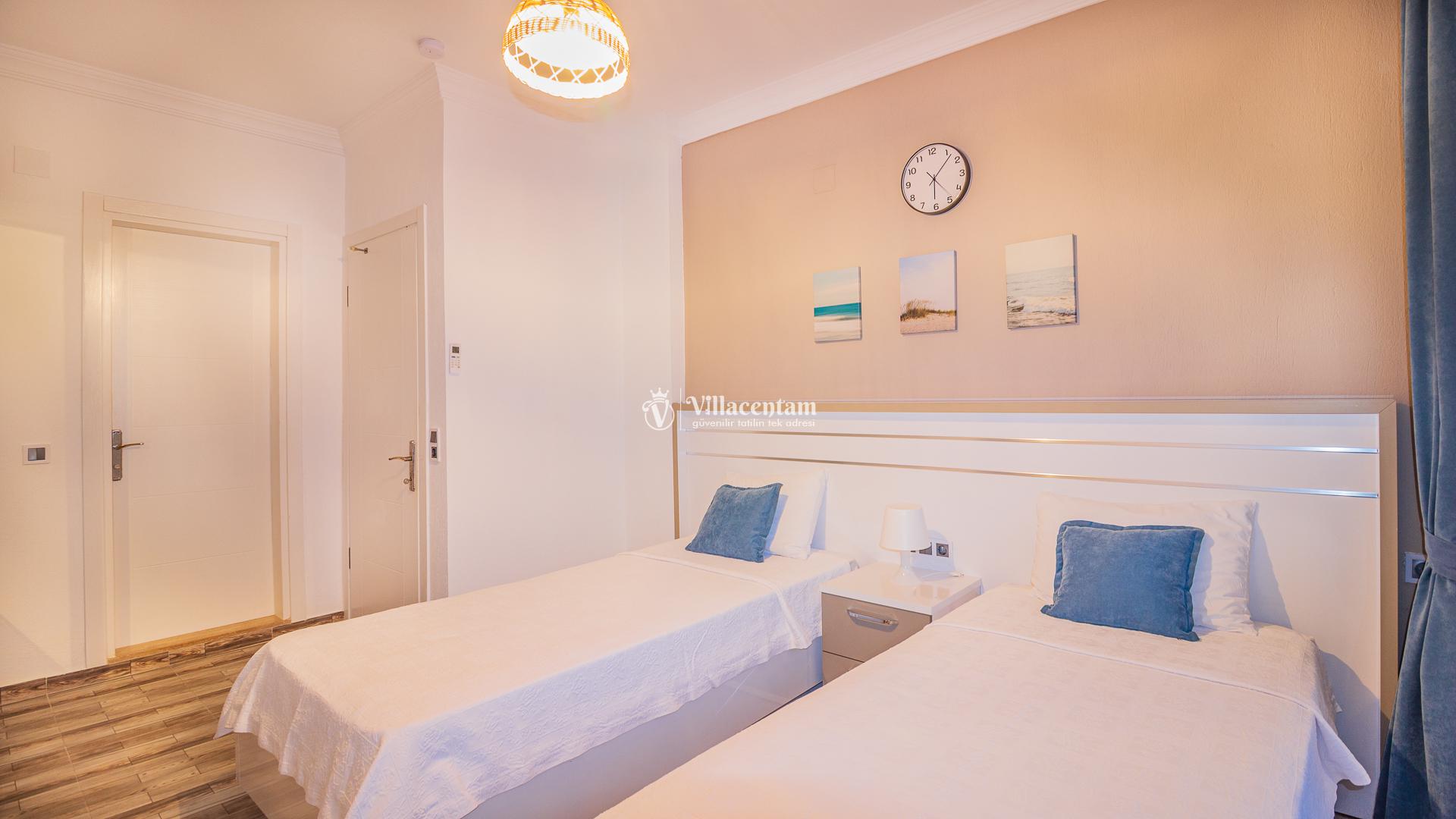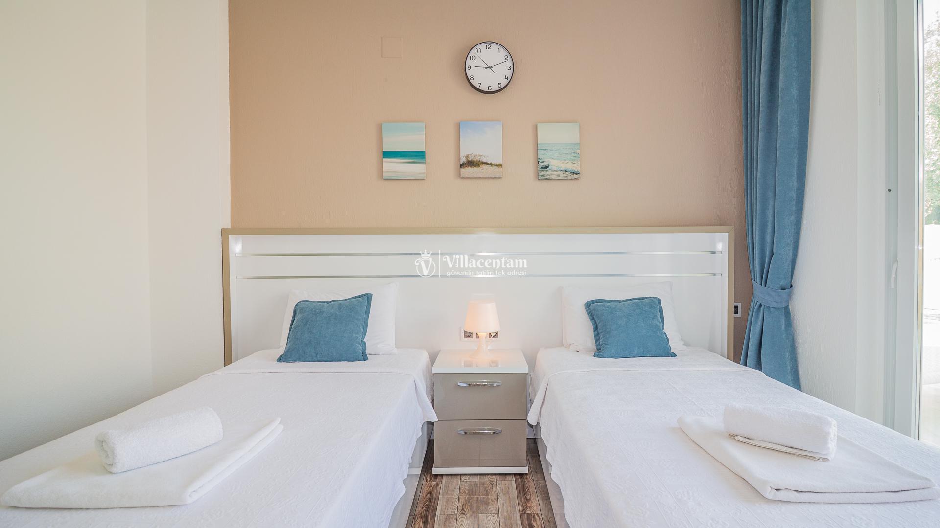 *Villalarda sıcak su için güneş enerjili su ısıtma sistemleri kullanılmaktadır. Çok yoğun sıcak su kullanımında, yoğunluğa ve su tankının büyüklüğüne bağlı olarak su tankında sıcak su tükenebilmekte ve tekrar suyun ısınması için belirli bir süre geçmesi gerekmektedir. Bu not sadece bu villa ile ilgili değil, tüm villalarımız için geçerli bir durumdur.