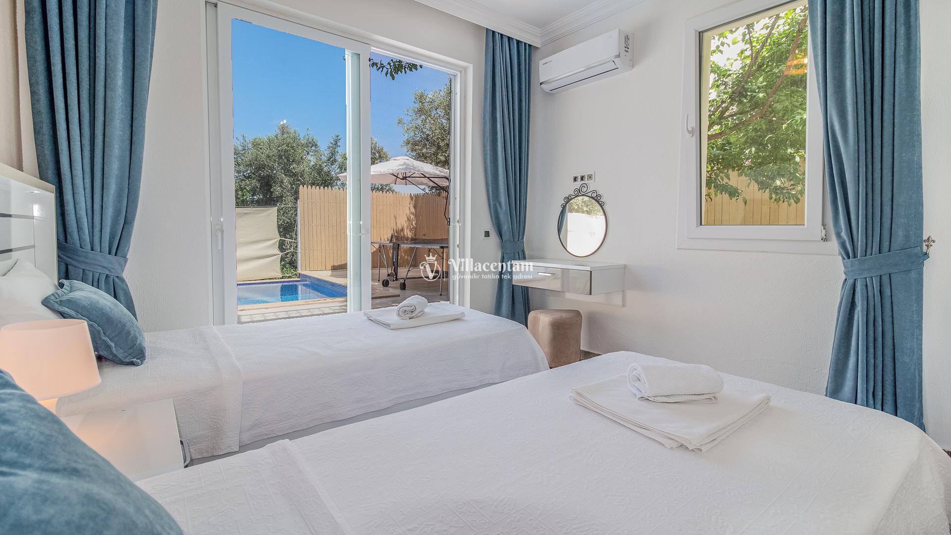Doğa içerisinde, gözlerden uzak ve sakin bir konumda yer alan bu özel tatil villası; 2 yatak odası ve 4 kişilik konaklama kapasitesi ile mahremiyete önem veren aileler ve balayı çiftleri için ideal bir konaklama seçeneği sunmaktadır. Muhafazakâr yapısı sayesinde huzurlu ve güvenli bir tatil ortamı sağlar.
