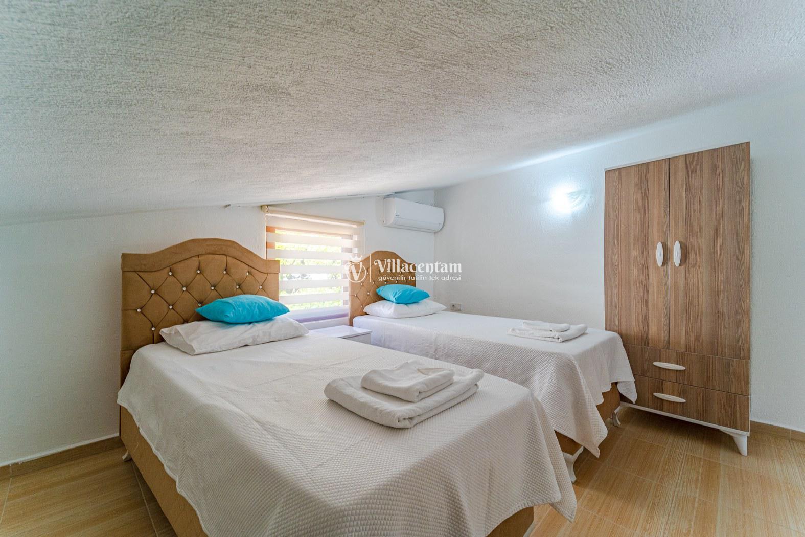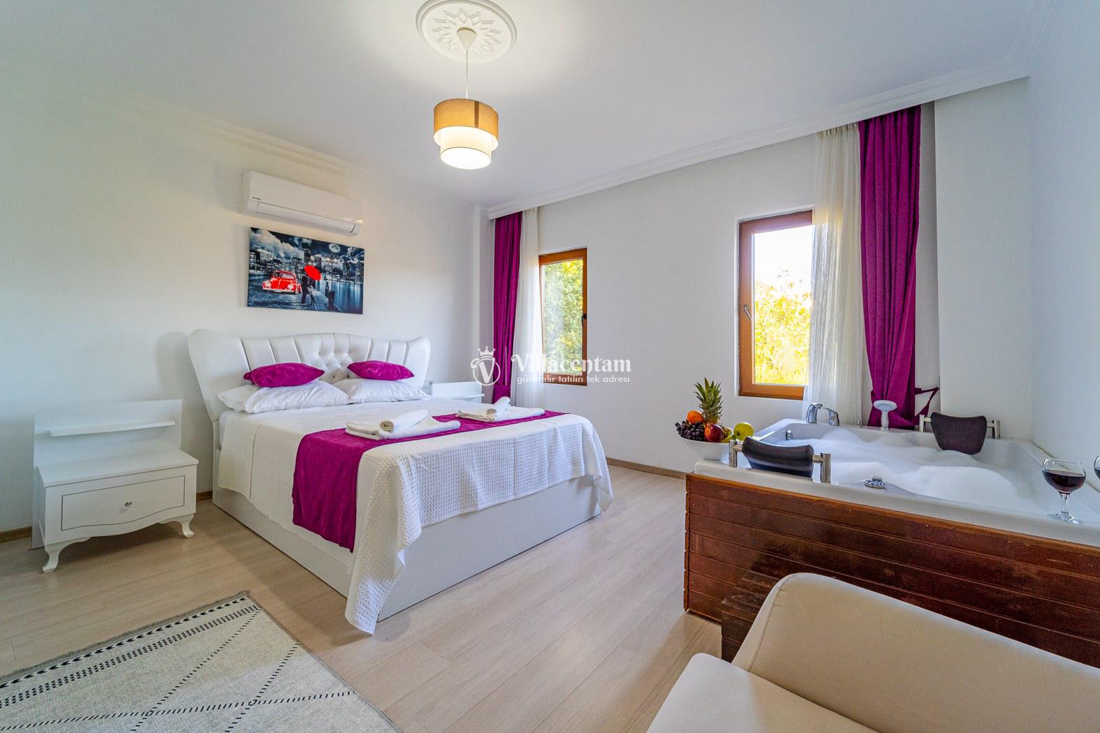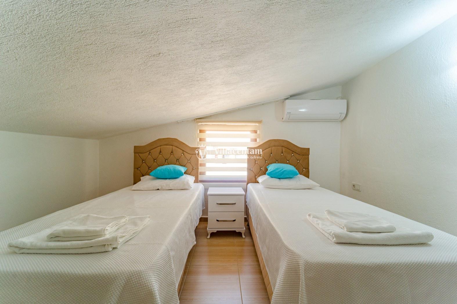 *Villalarda sıcak su için güneş enerjili su ısıtma sistemleri kullanılmaktadır. Çok yoğun sıcak su kullanımında, yoğunluğa ve su tankının büyüklüğüne bağlı olarak su tankında sıcak su tükenebilmekte ve tekrar suyun ısınması için belirli bir süre geçmesi gerekmektedir. Bu not sadece bu villa ile ilgili değil, tüm villalarımız için geçerli bir durumdur.