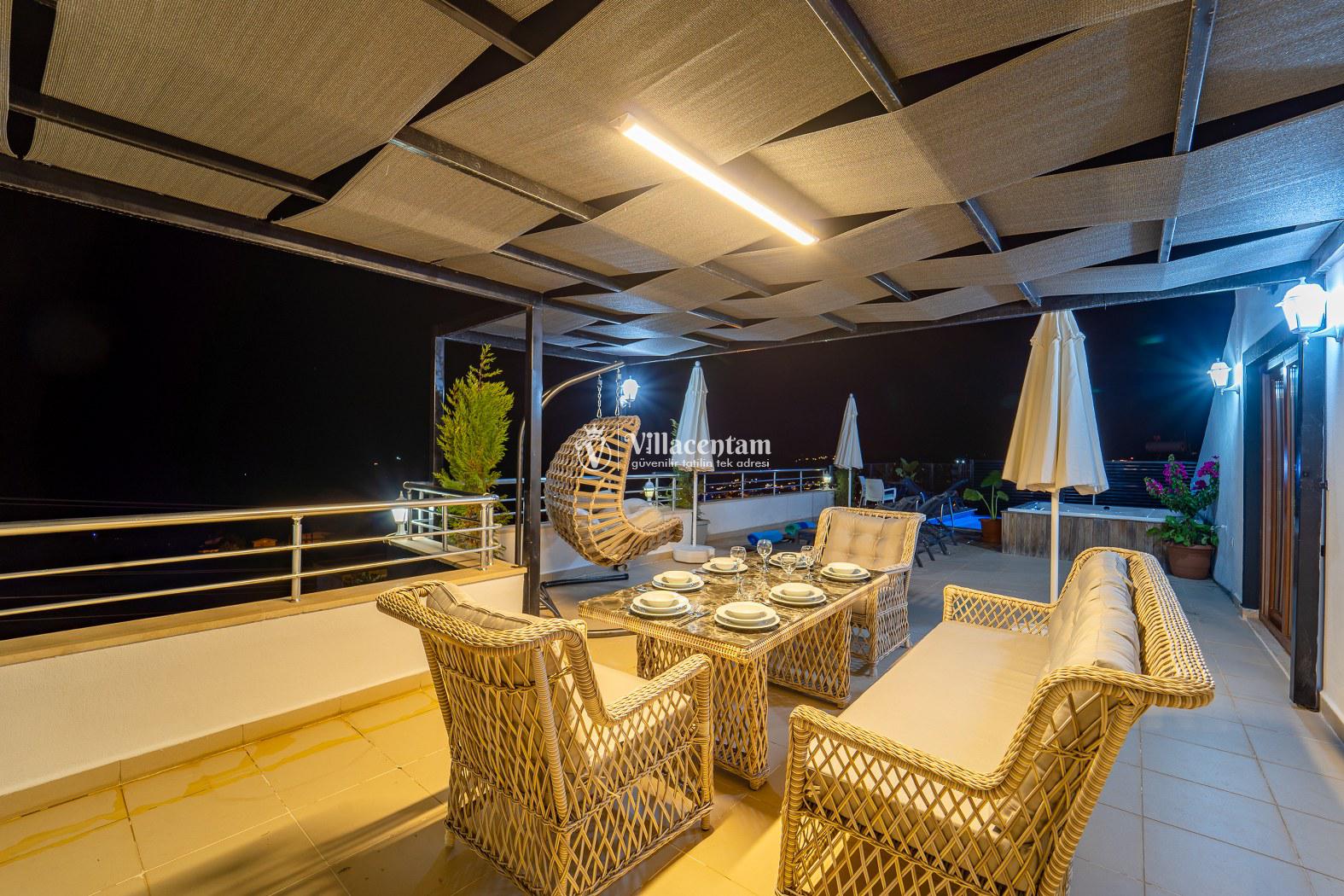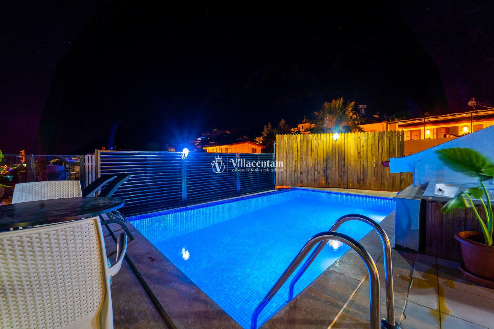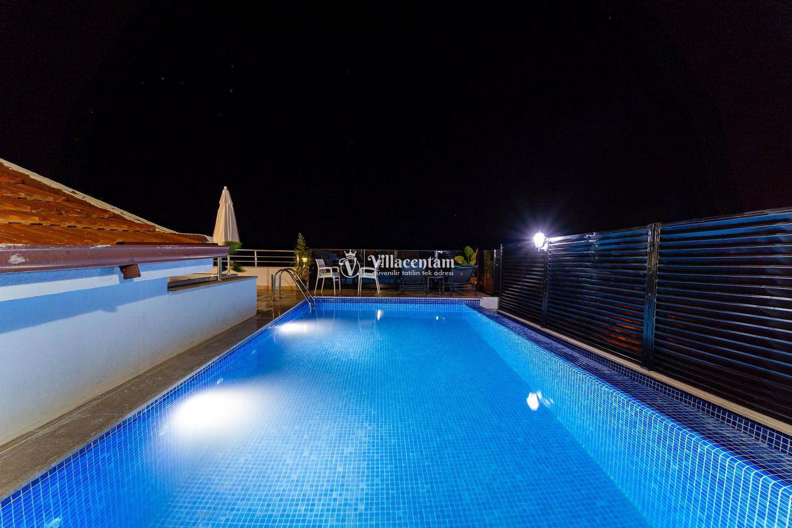 Villamızın tam korunaklı özel yüzme havuzu, dışarıdan hiçbir şekilde görünmeyen havuz ve teras alanıyla mahremiyet ve huzur odaklı bir tatil deneyimi sağlar. Havuz çevresindeki geniş terasta şezlong, barbekü ve oturma alanları dinlendirici açık hava keyfi için özenle düzenlenmiştir.