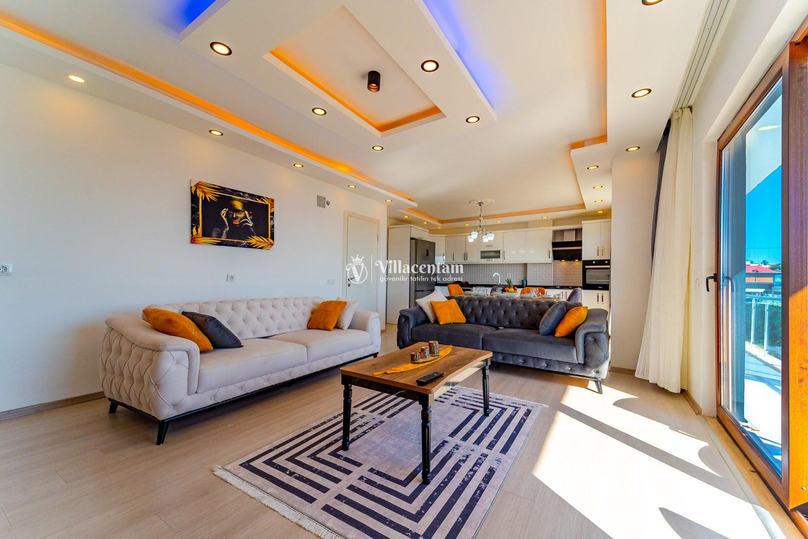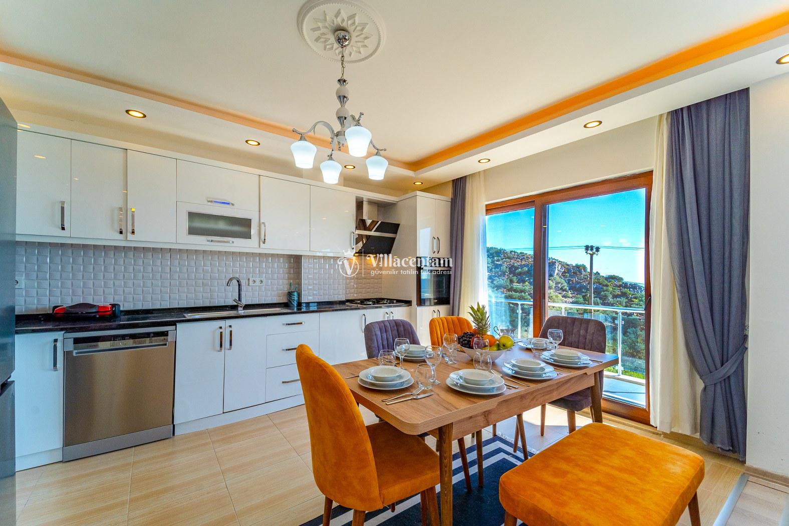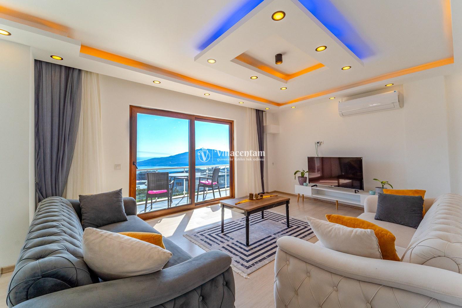 Modern tasarımıyla ferah iç mekânlar; konforlu salon, tam donanımlı mutfak ve dinlendirici yatak odalarıyla evinizdeymişsiniz gibi bir konaklama sunar. Aynı zamanda villanın deniz ve doğa manzarası, tatilinizi görsel bir şölen hâline getirir.
