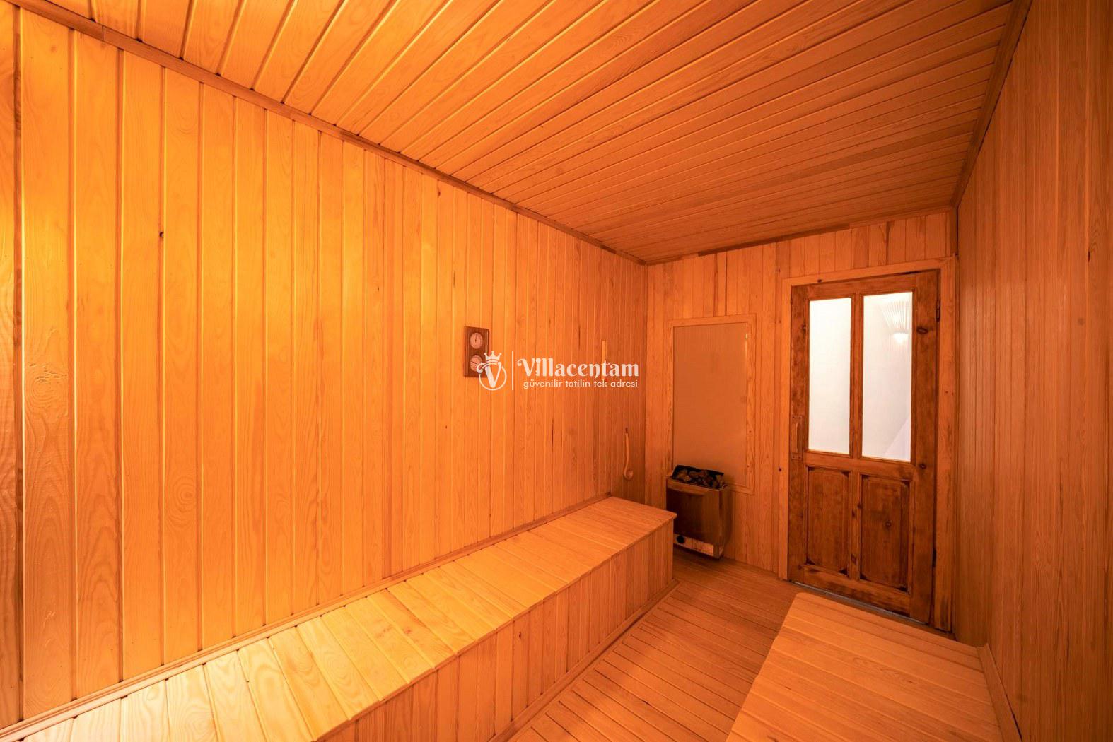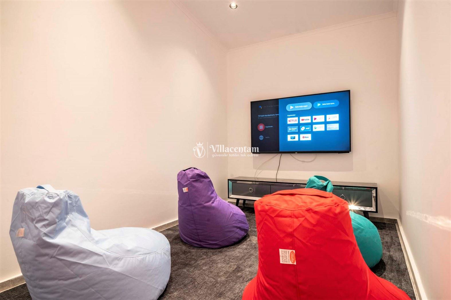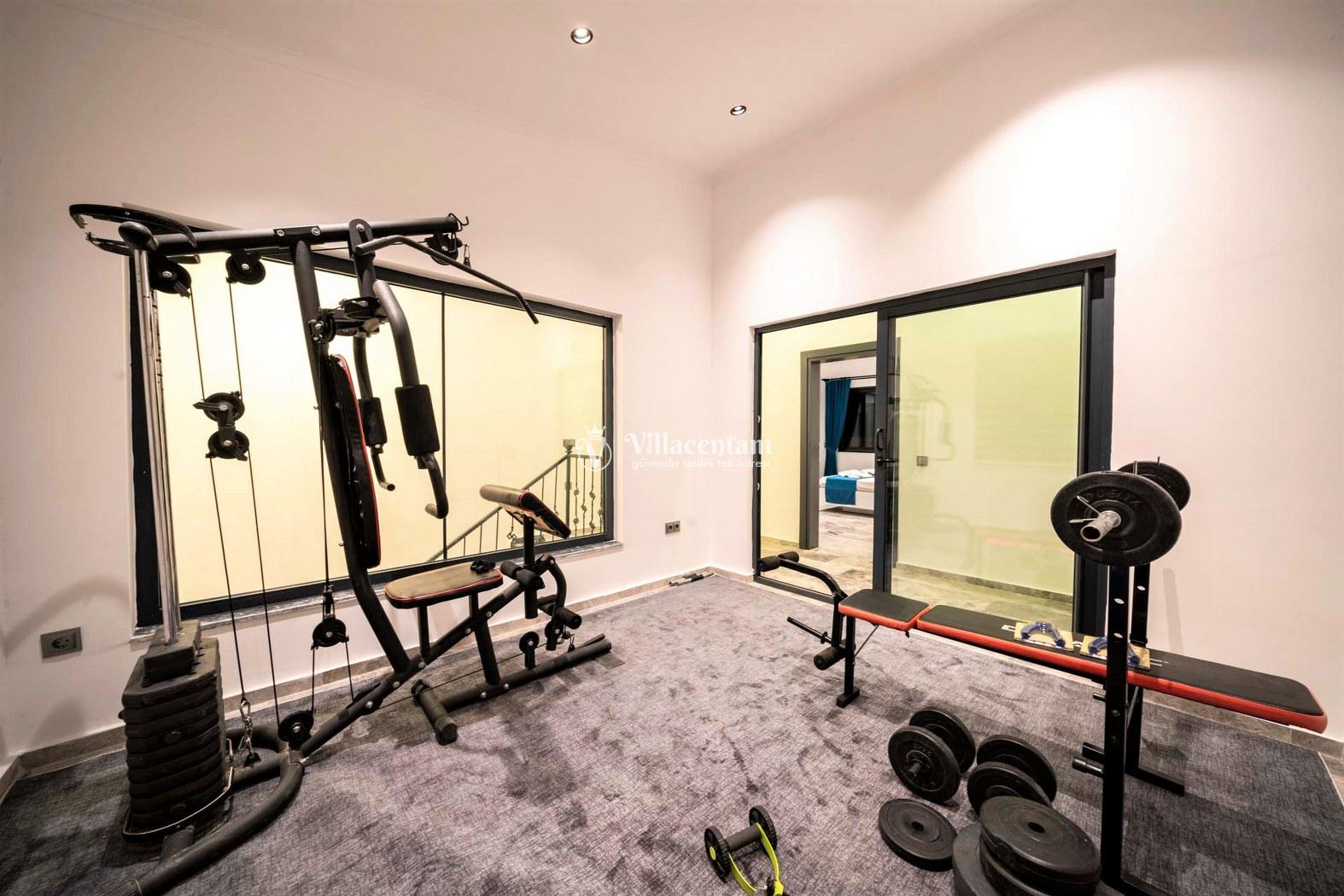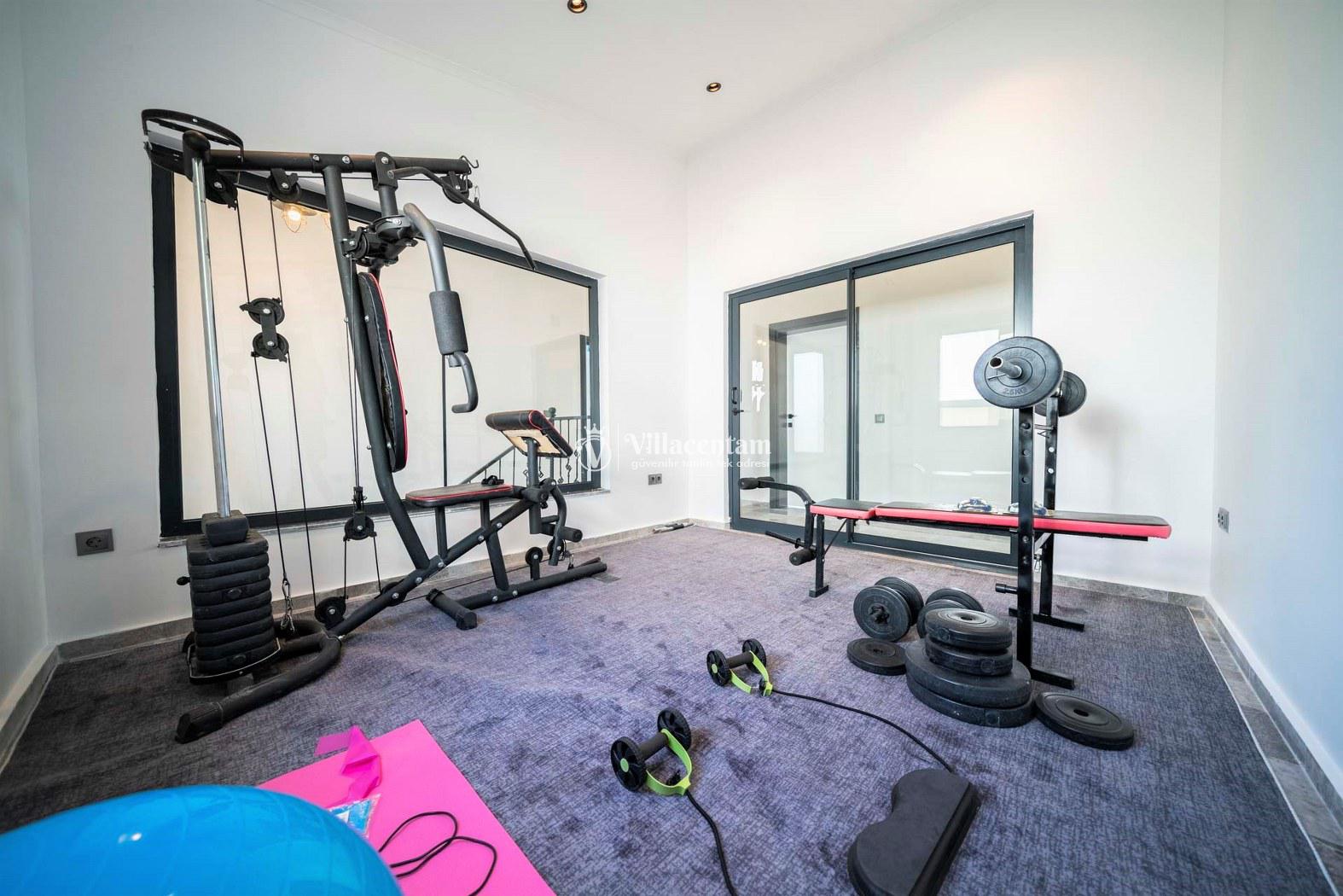 Modern ve ferah iç mekânlara sahip villada; tam donanımlı mutfak, geniş salon ve konforlu yaşam alanları bulunmaktadır. Sinema odası, spor alanı, sauna, hamam ve jakuzi gibi özel olanaklar sayesinde tatil boyunca konforunuz üst seviyede tutulur.