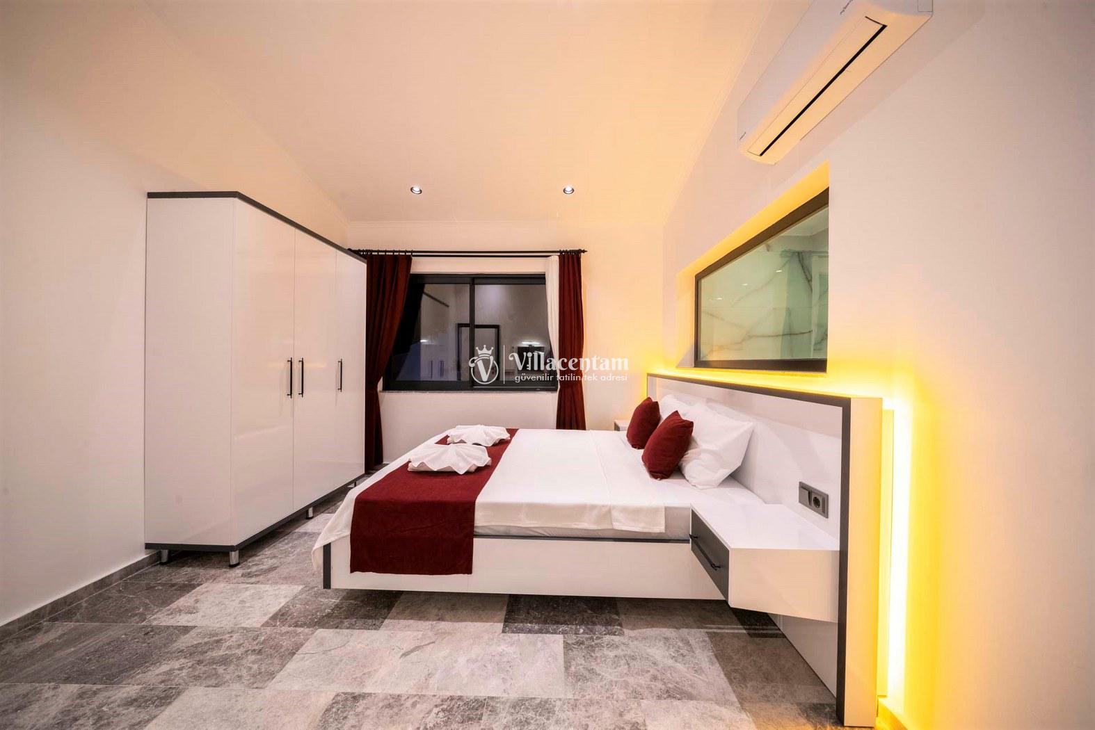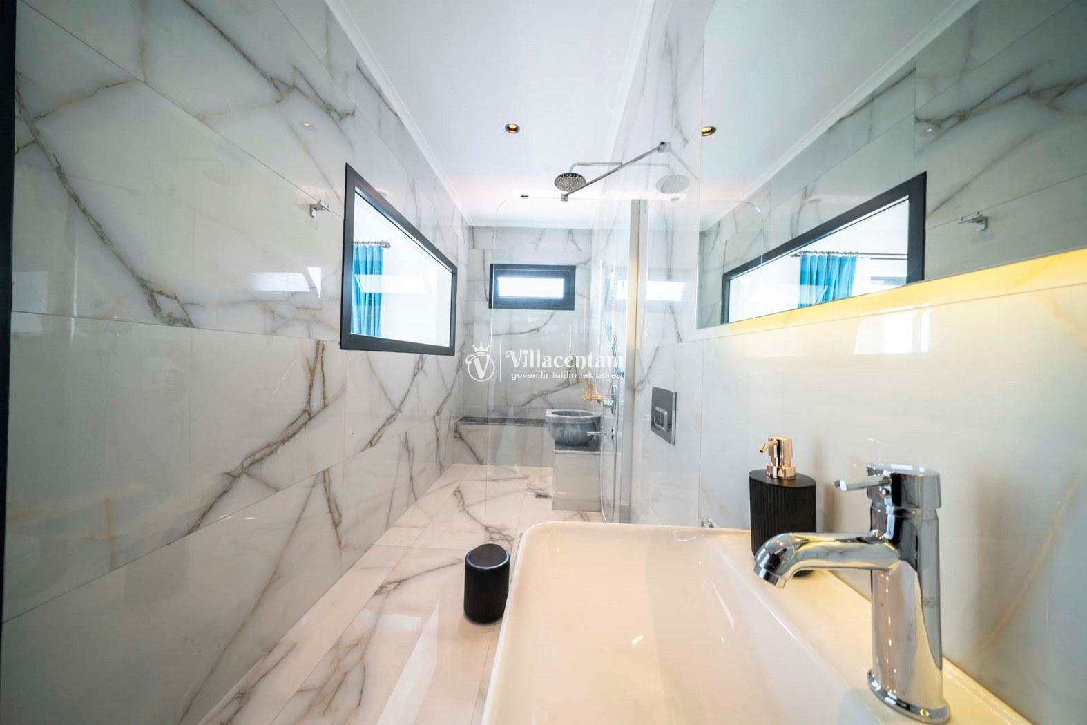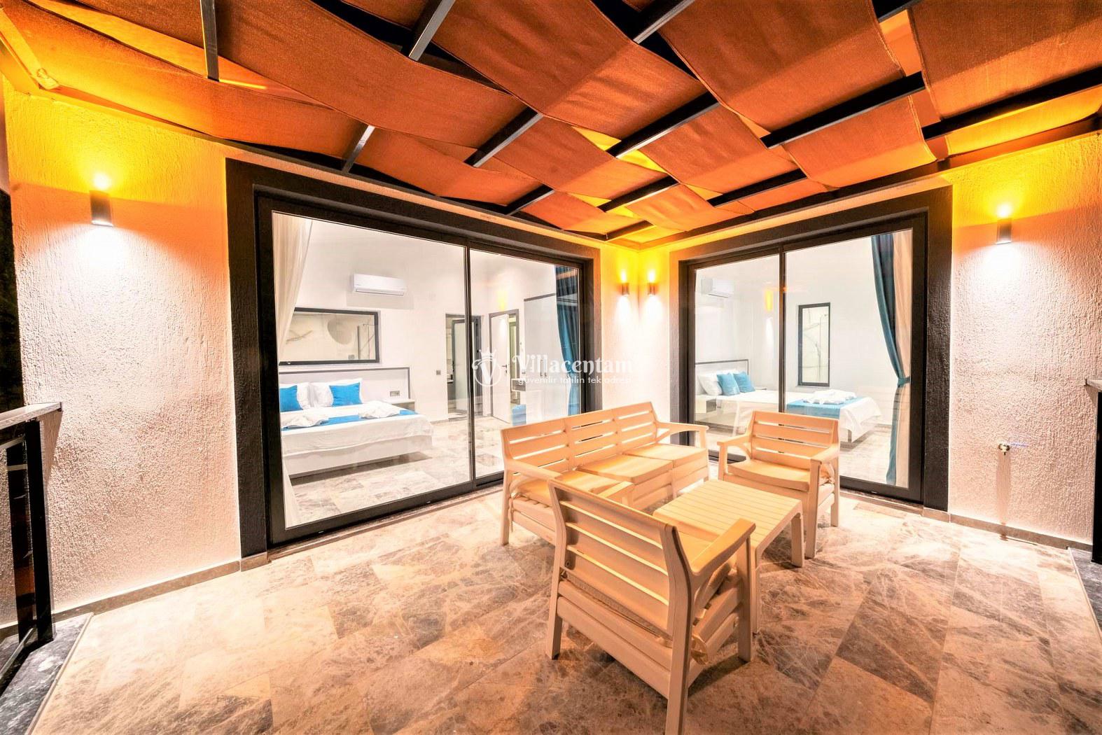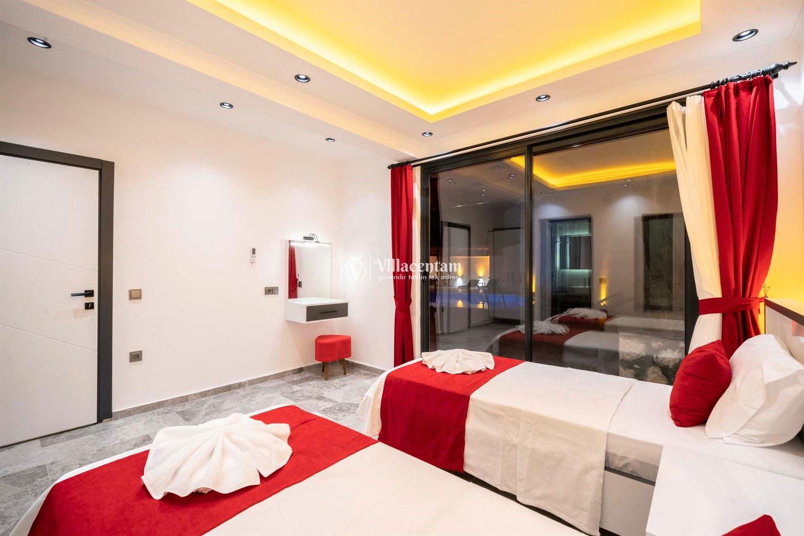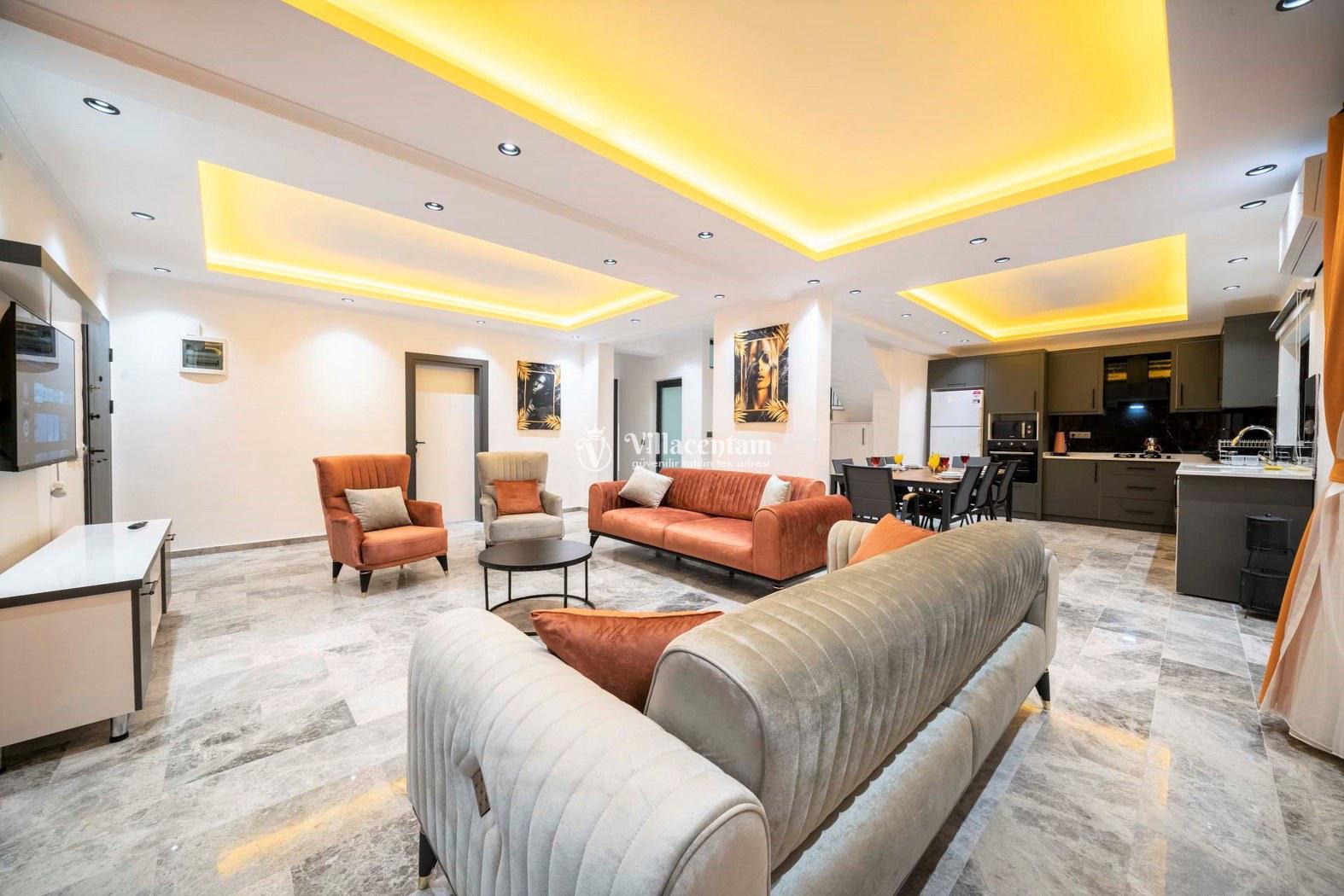 Modern ve ferah iç mekânlara sahip villada; tam donanımlı mutfak, geniş salon ve konforlu yaşam alanları bulunmaktadır. Sinema odası, spor alanı, sauna, hamam ve jakuzi gibi özel olanaklar sayesinde tatil boyunca konforunuz üst seviyede tutulur.