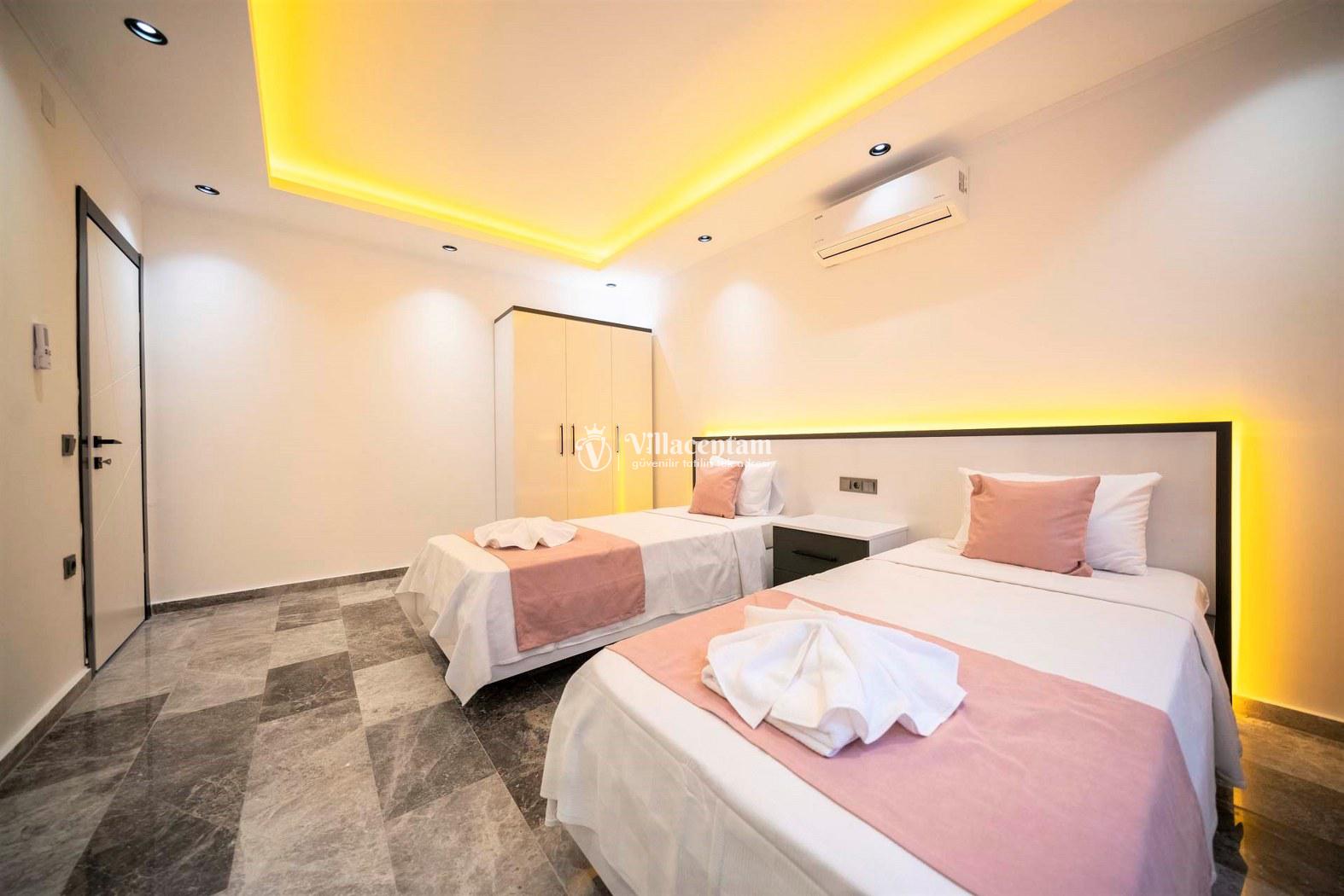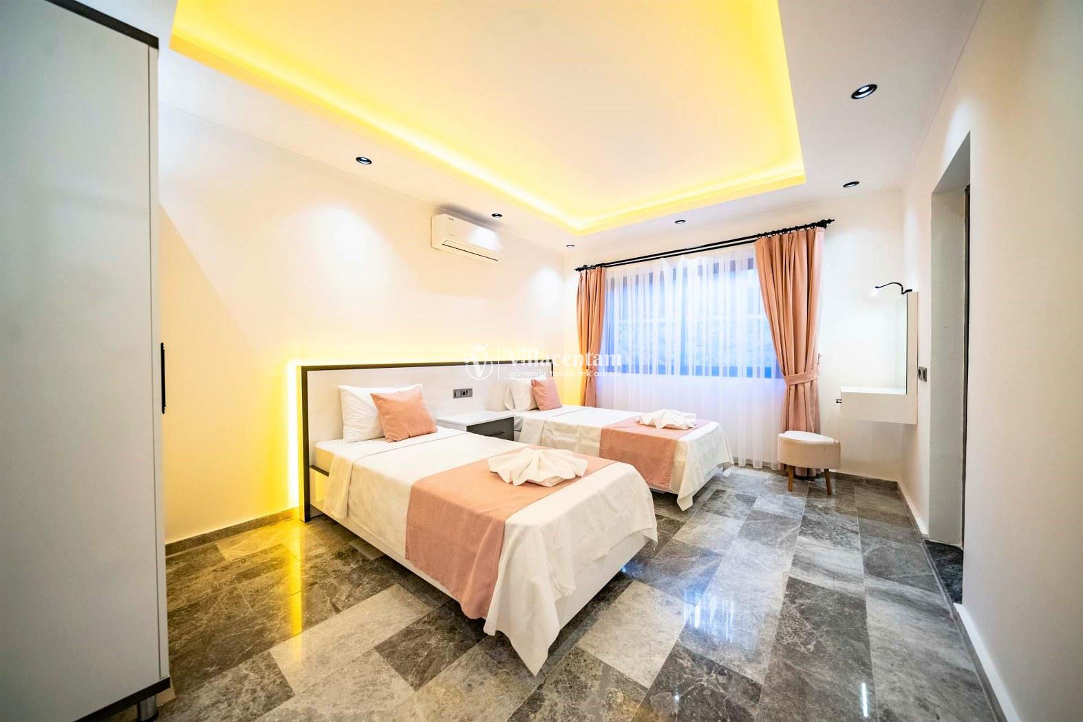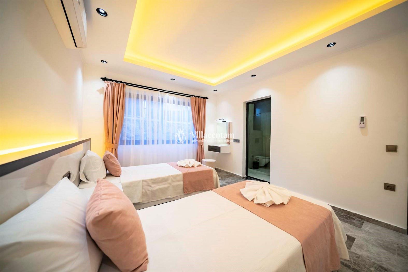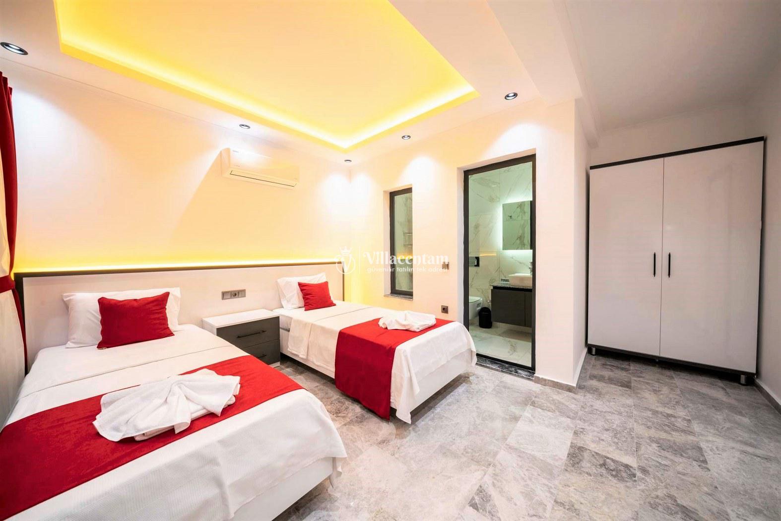 Modern ve ferah iç mekânlara sahip villada; tam donanımlı mutfak, geniş salon ve konforlu yaşam alanları bulunmaktadır. Sinema odası, spor alanı, sauna, hamam ve jakuzi gibi özel olanaklar sayesinde tatil boyunca konforunuz üst seviyede tutulur.