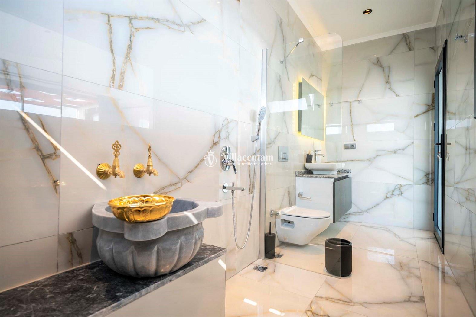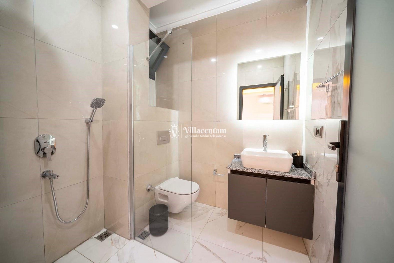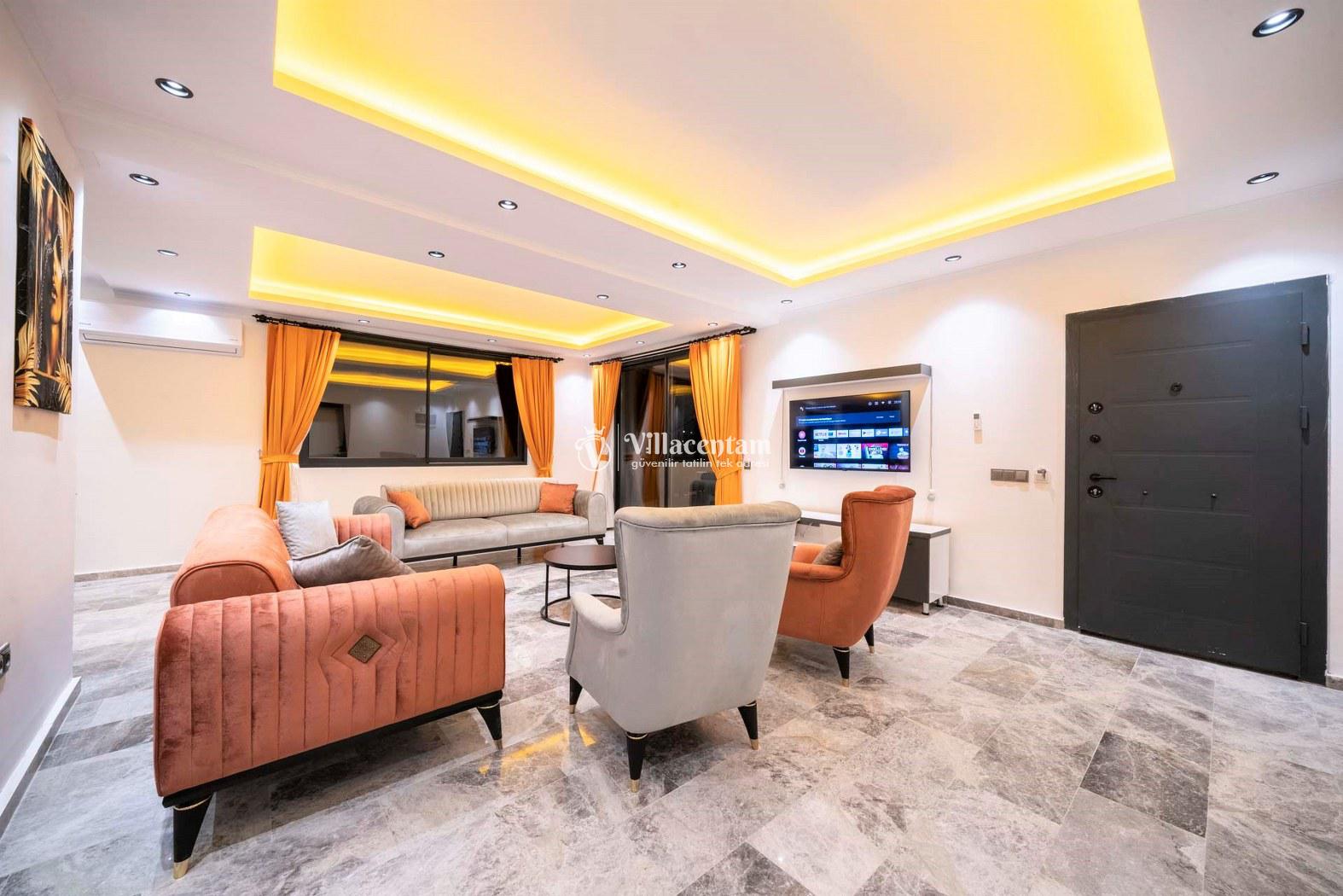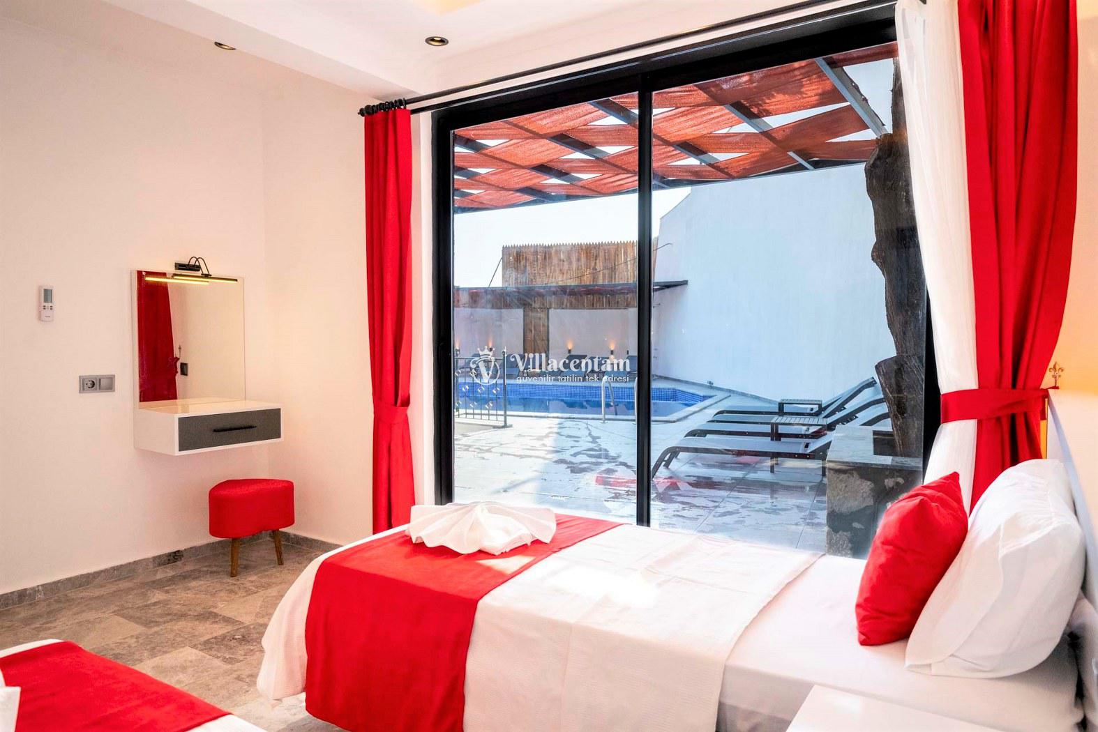 Modern ve ferah iç mekânlara sahip villada; tam donanımlı mutfak, geniş salon ve konforlu yaşam alanları bulunmaktadır. Sinema odası, spor alanı, sauna, hamam ve jakuzi gibi özel olanaklar sayesinde tatil boyunca konforunuz üst seviyede tutulur.