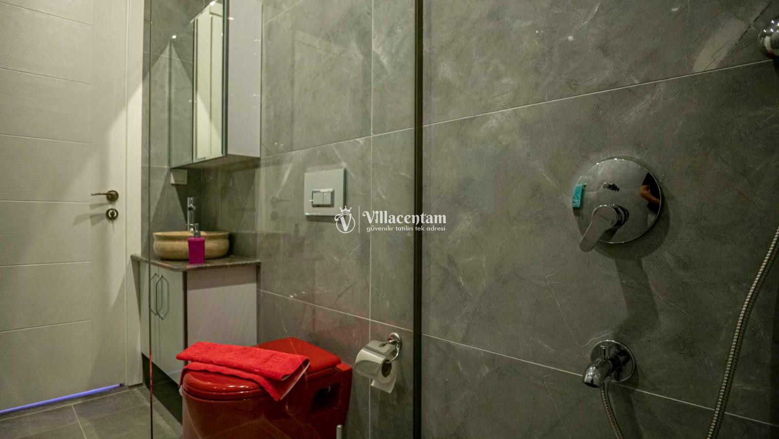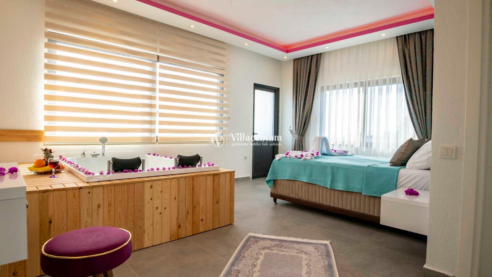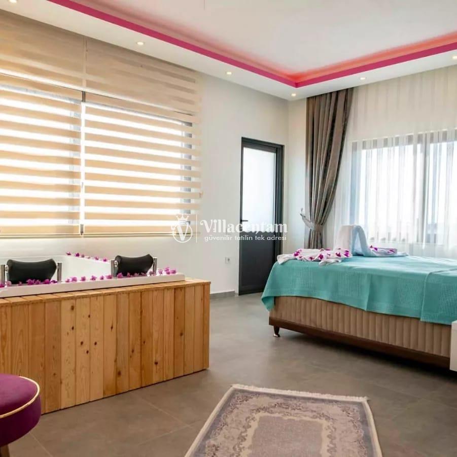 *Villalarda sıcak su için güneş enerjili su ısıtma sistemleri kullanılmaktadır. Çok yoğun sıcak su kullanımında, yoğunluğa ve su tankının büyüklüğüne bağlı olarak su tankında sıcak su tükenebilmekte ve tekrar suyun ısınması için belirli bir süre geçmesi gerekmektedir. Bu not sadece bu villa ile ilgili değil, tüm villalarımız için geçerli bir durumdur.
