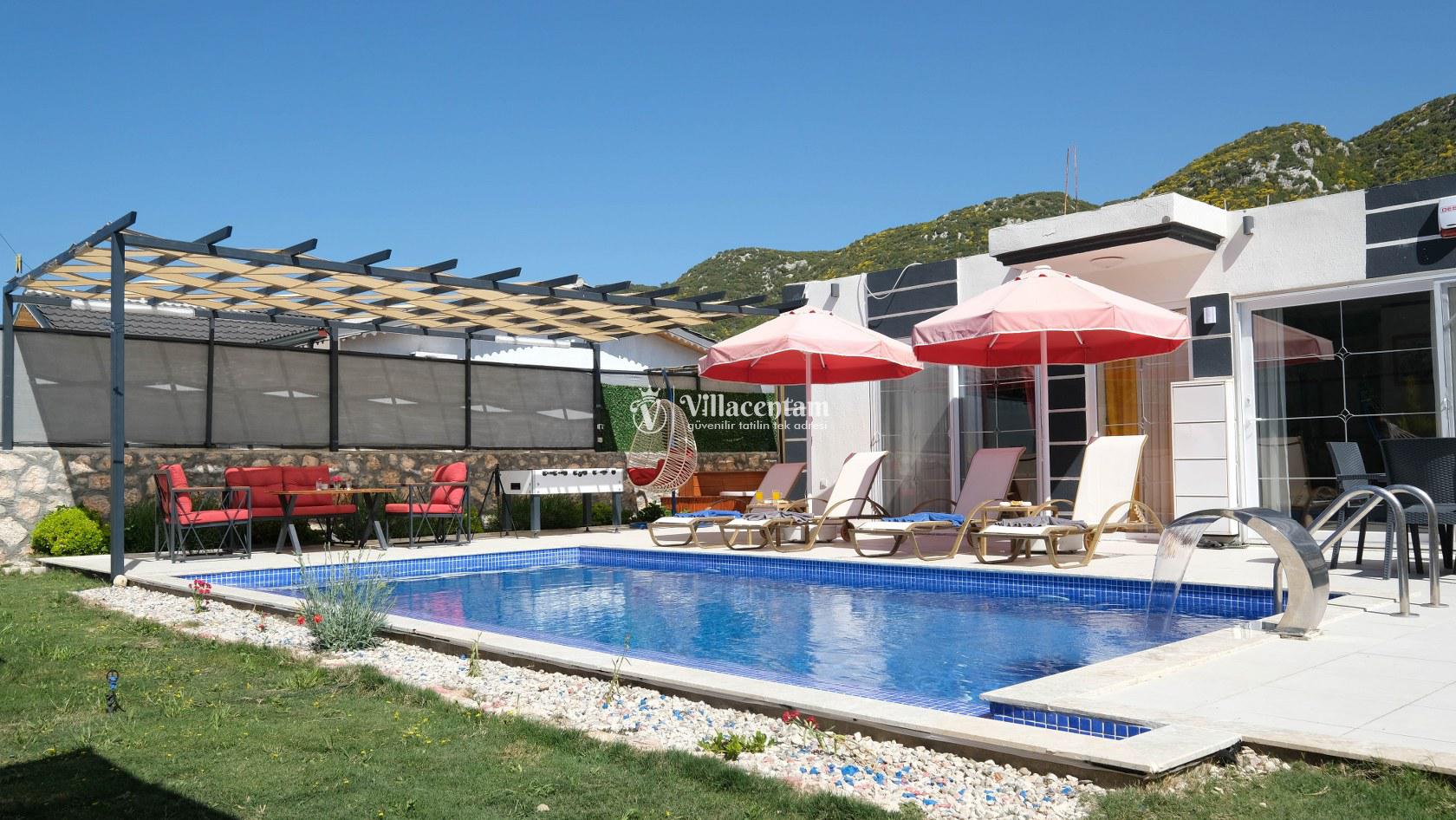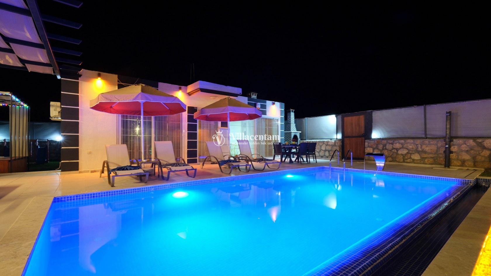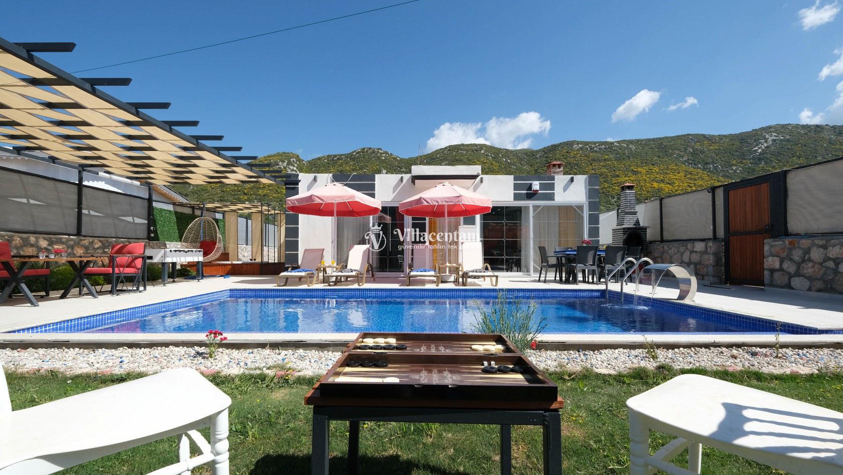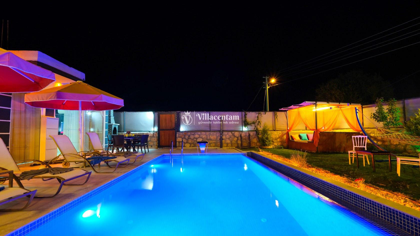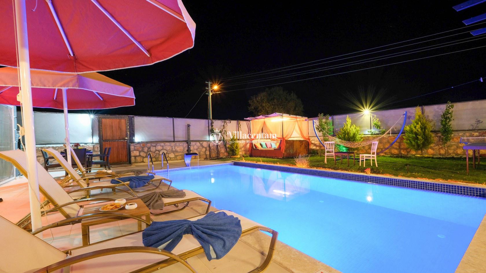 Villa Okan, Kalkan Sarıbelen mevkiinde konumlanmakta olan doğa manzarasına hakim kiralık villalarımız arasında yer almaktadır. Modern ve lüks bir şekilde dekore edilen villamızda 2 adet yatak odası bulunmakta olup, 4 kişiye konaklama imkanı sağlamaktadır. Villamızın bahçesinde tüm yılın vermiş olduğu yorgunluğu atabileceğiniz jakuzi bulunmaktadır. Her bir detayın en ince ayrıntısına kadar düşünüldüğü villamızda tatilinizi keyifli hale getirmesi için sinema odası,masa tenisi ve çocuklar için uygun oyun park alanı bulunmaktadır. Havuz ve havuz terası korunaklı hale getirilmiştir. Dışarından bir kimse tarafından görünmemektedir. Muhafazakar balayı çiftleri ve çekirdek aileler rahatlıkla tercih edebilirler. Geniş ve ferah bir havuz terasına sahip olan villamızda sevdiklerinizle tatilin tadını çıkarabilirsiniz. Keyifli bir tatil için Villa Okan' ı tercih edebilirsiniz