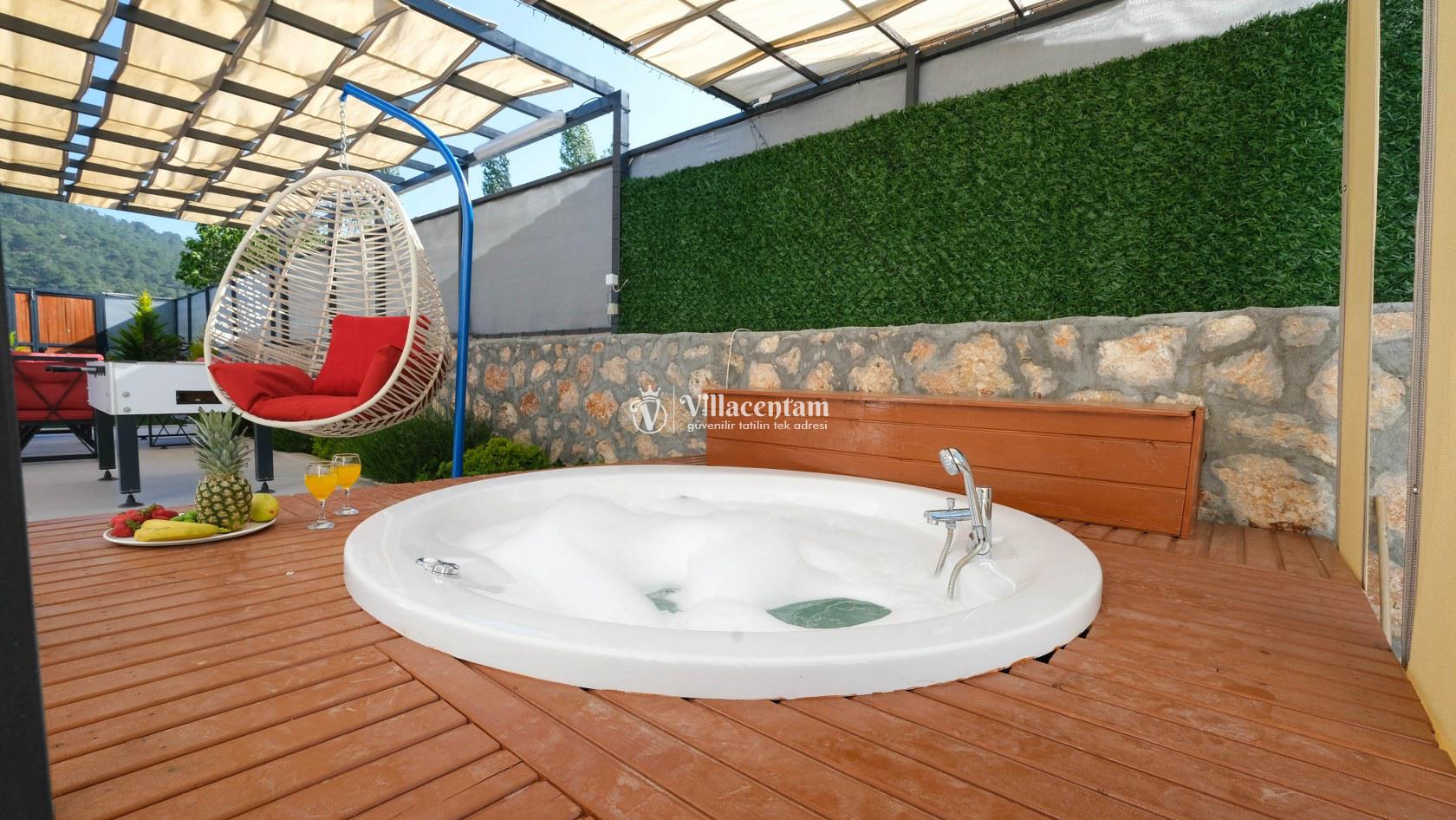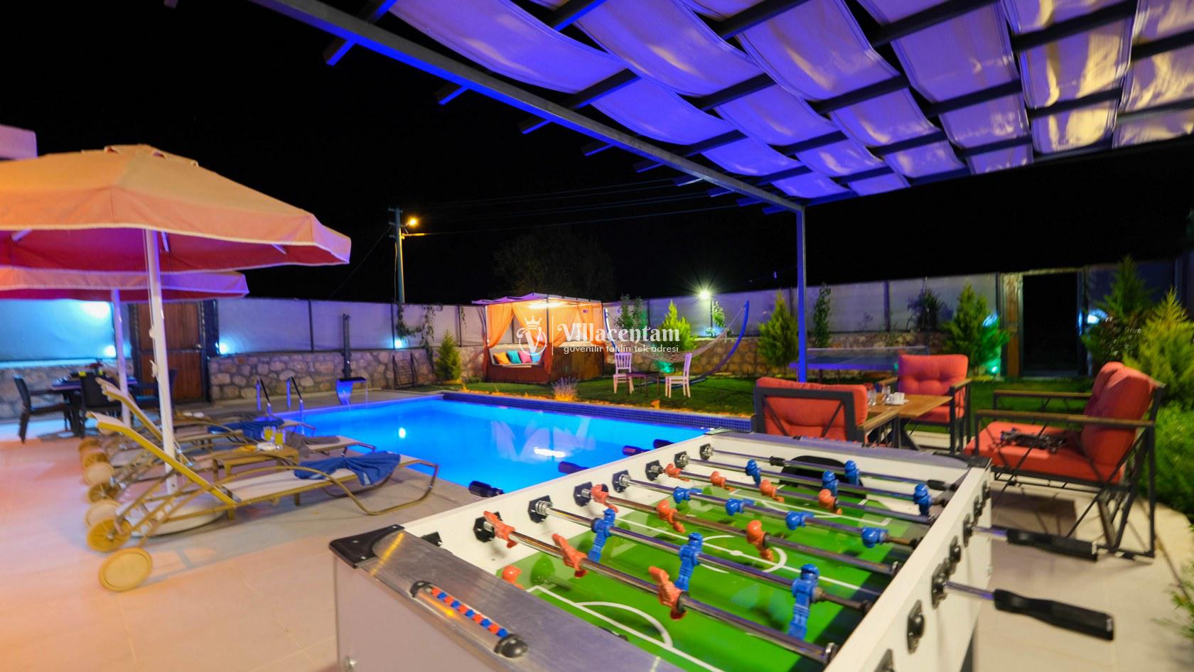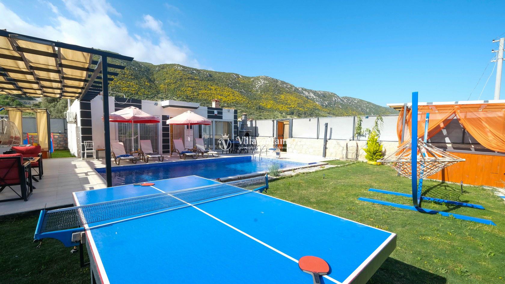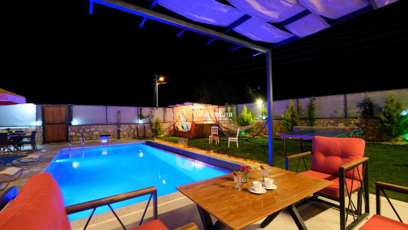 Villa Okan, Kalkan Sarıbelen mevkiinde konumlanmakta olan doğa manzarasına hakim kiralık villalarımız arasında yer almaktadır. Modern ve lüks bir şekilde dekore edilen villamızda 2 adet yatak odası bulunmakta olup, 4 kişiye konaklama imkanı sağlamaktadır. Villamızın bahçesinde tüm yılın vermiş olduğu yorgunluğu atabileceğiniz jakuzi bulunmaktadır. Her bir detayın en ince ayrıntısına kadar düşünüldüğü villamızda tatilinizi keyifli hale getirmesi için sinema odası,masa tenisi ve çocuklar için uygun oyun park alanı bulunmaktadır. Havuz ve havuz terası korunaklı hale getirilmiştir. Dışarından bir kimse tarafından görünmemektedir. Muhafazakar balayı çiftleri ve çekirdek aileler rahatlıkla tercih edebilirler. Geniş ve ferah bir havuz terasına sahip olan villamızda sevdiklerinizle tatilin tadını çıkarabilirsiniz. Keyifli bir tatil için Villa Okan' ı tercih edebilirsiniz