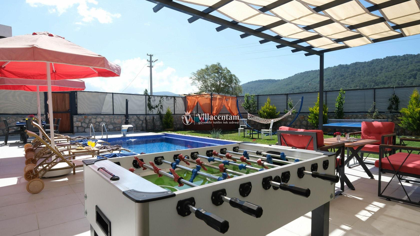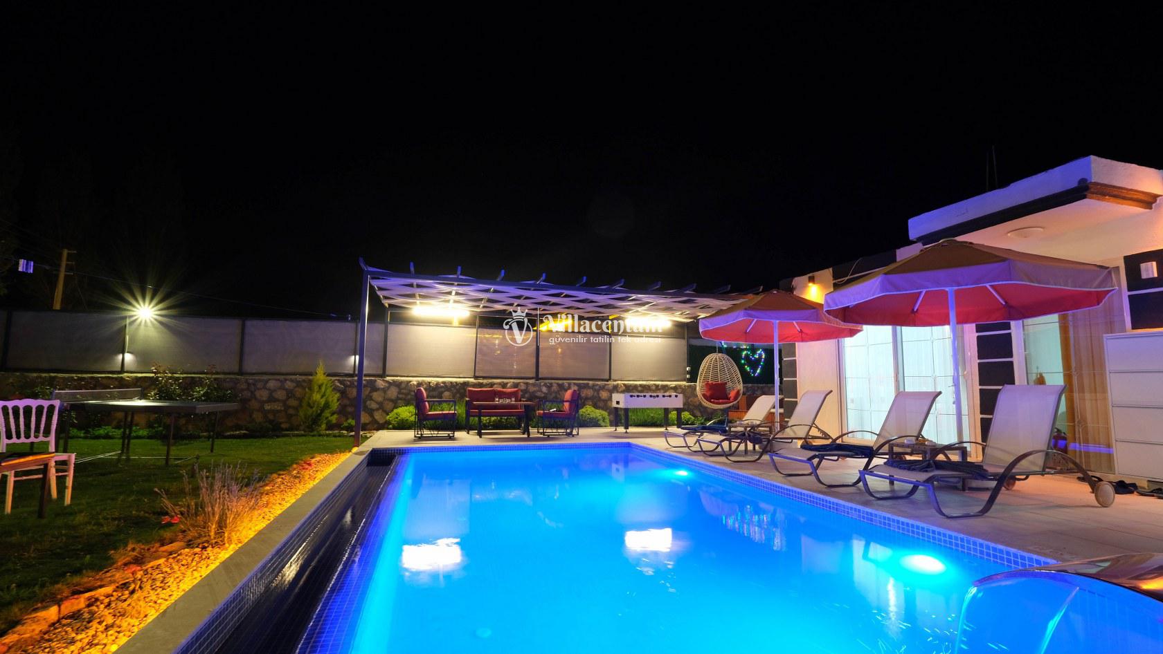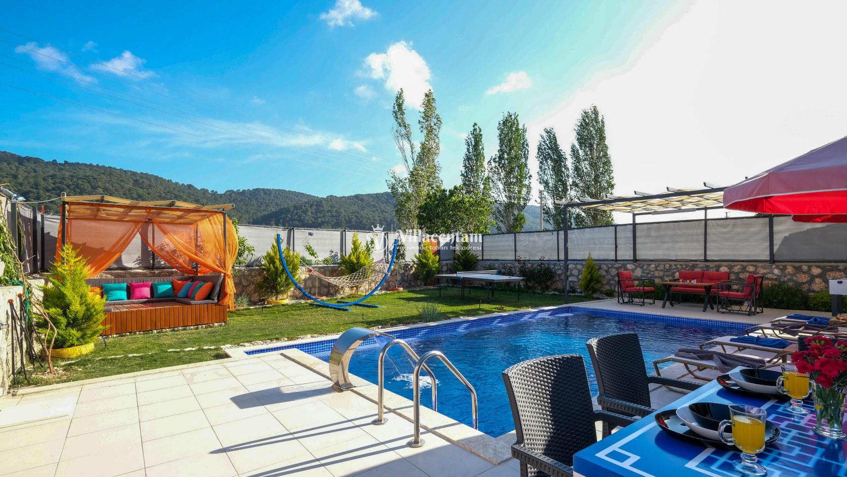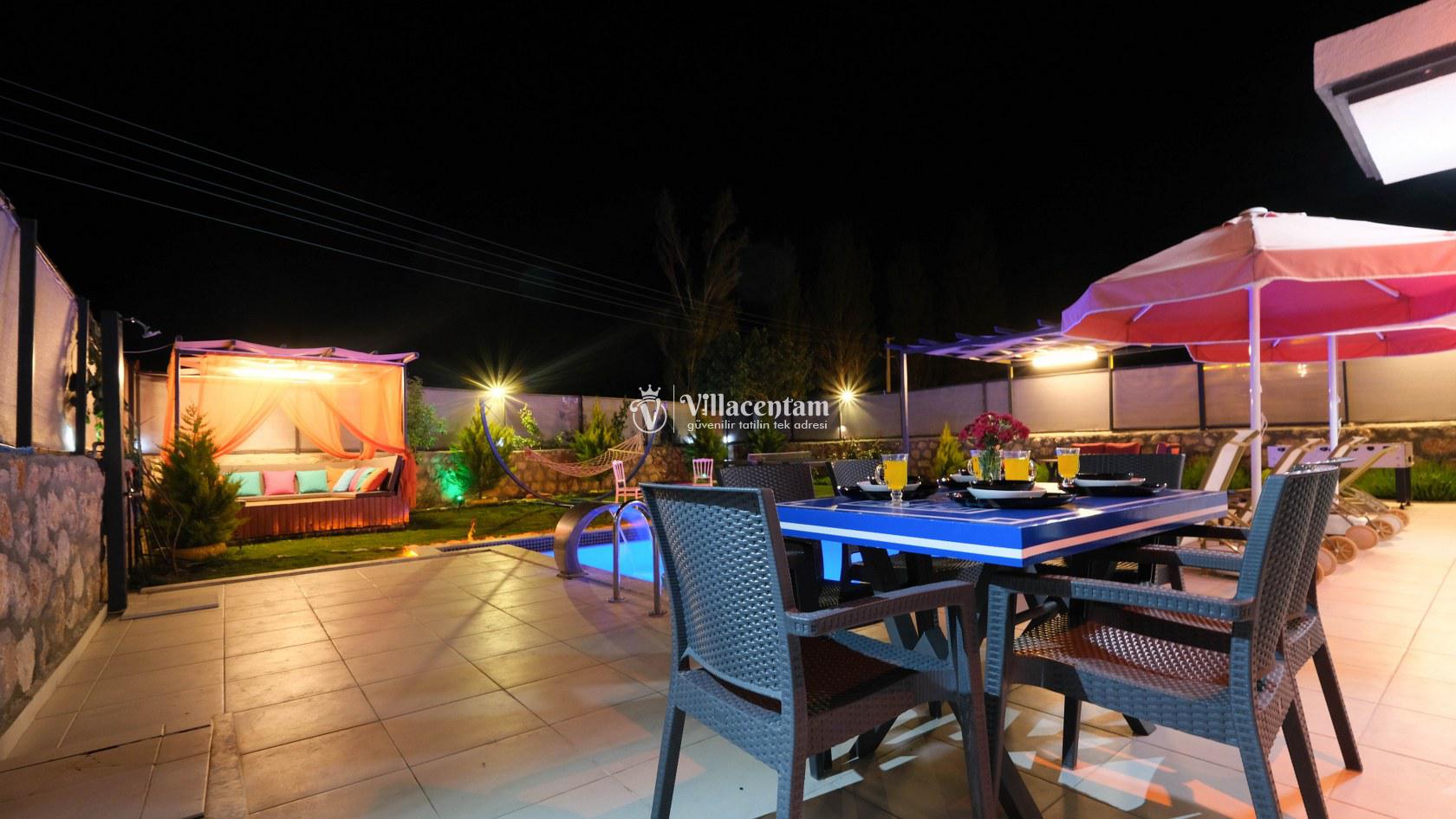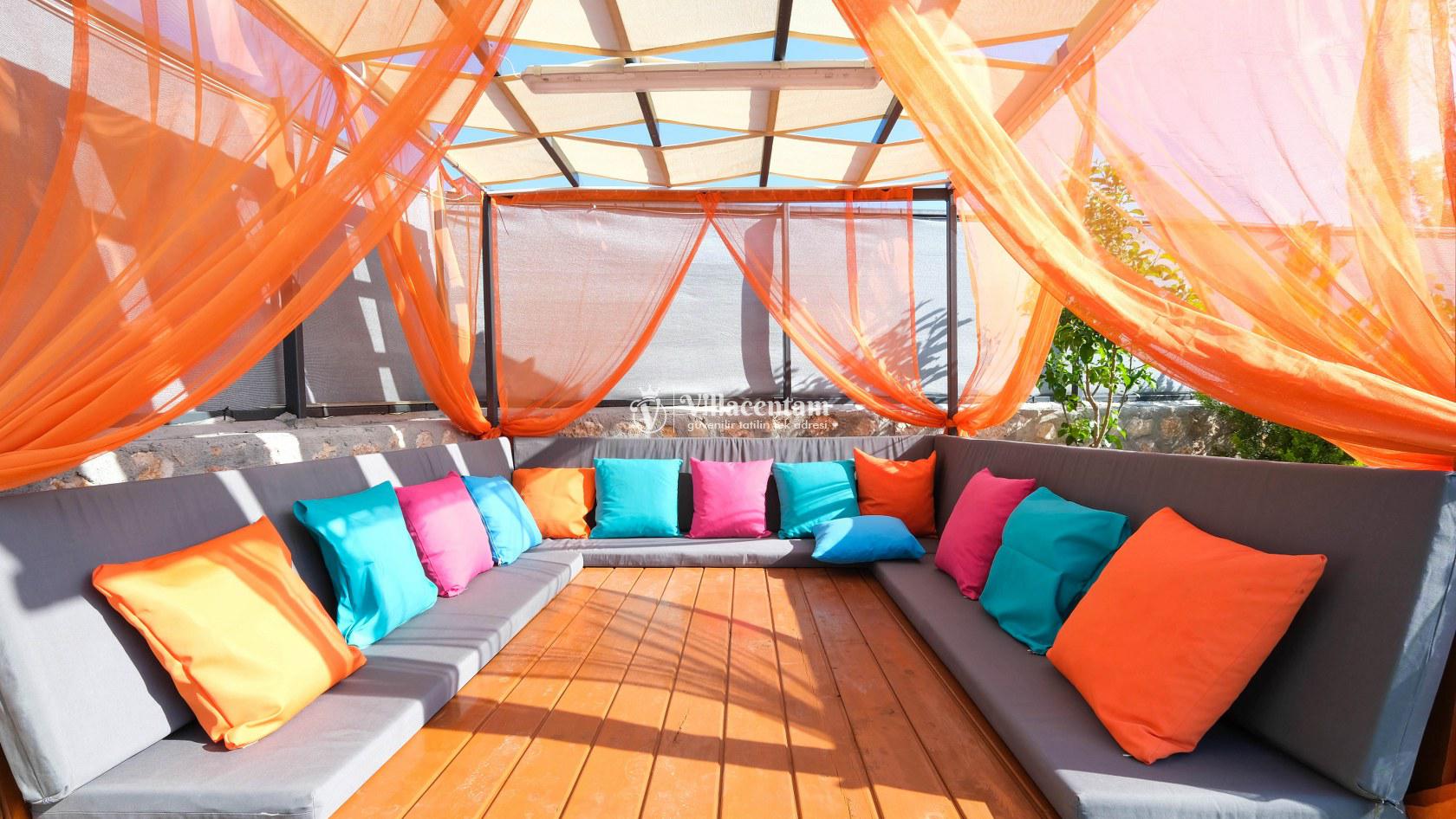 Villa Okan, Kalkan Sarıbelen mevkiinde konumlanmakta olan doğa manzarasına hakim kiralık villalarımız arasında yer almaktadır. Modern ve lüks bir şekilde dekore edilen villamızda 2 adet yatak odası bulunmakta olup, 4 kişiye konaklama imkanı sağlamaktadır. Villamızın bahçesinde tüm yılın vermiş olduğu yorgunluğu atabileceğiniz jakuzi bulunmaktadır. Her bir detayın en ince ayrıntısına kadar düşünüldüğü villamızda tatilinizi keyifli hale getirmesi için sinema odası,masa tenisi ve çocuklar için uygun oyun park alanı bulunmaktadır. Havuz ve havuz terası korunaklı hale getirilmiştir. Dışarından bir kimse tarafından görünmemektedir. Muhafazakar balayı çiftleri ve çekirdek aileler rahatlıkla tercih edebilirler. Geniş ve ferah bir havuz terasına sahip olan villamızda sevdiklerinizle tatilin tadını çıkarabilirsiniz. Keyifli bir tatil için Villa Okan' ı tercih edebilirsiniz
