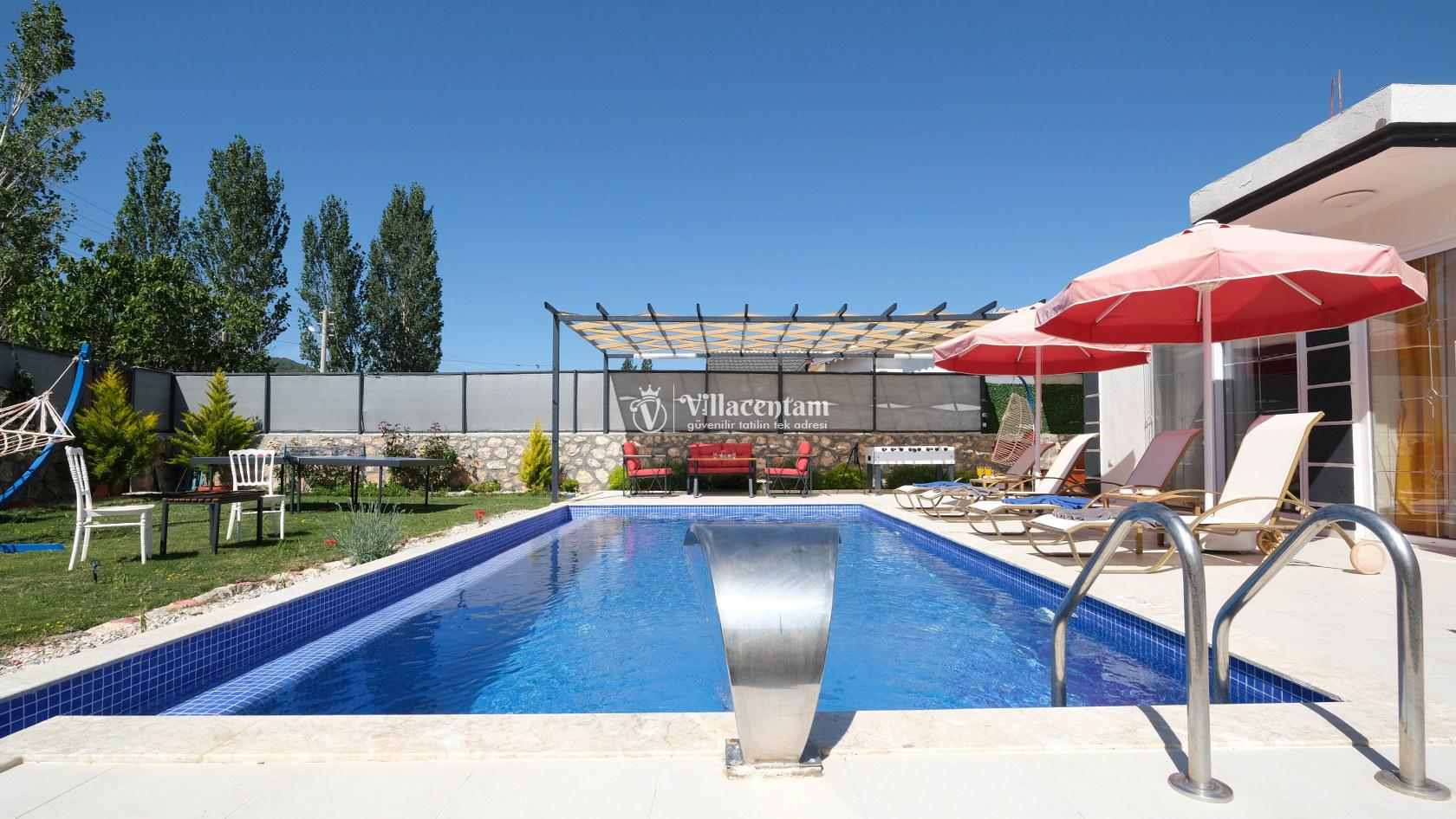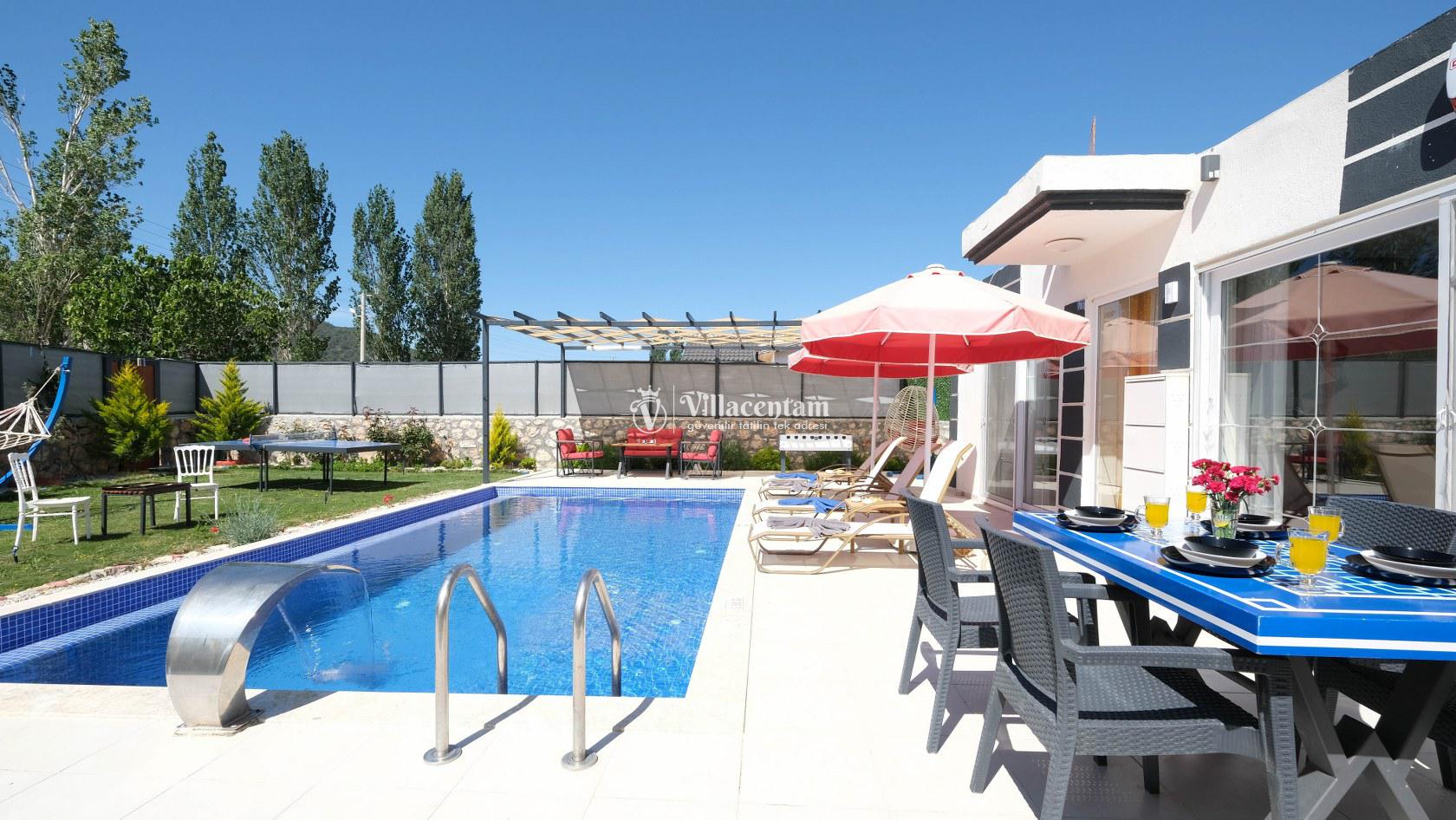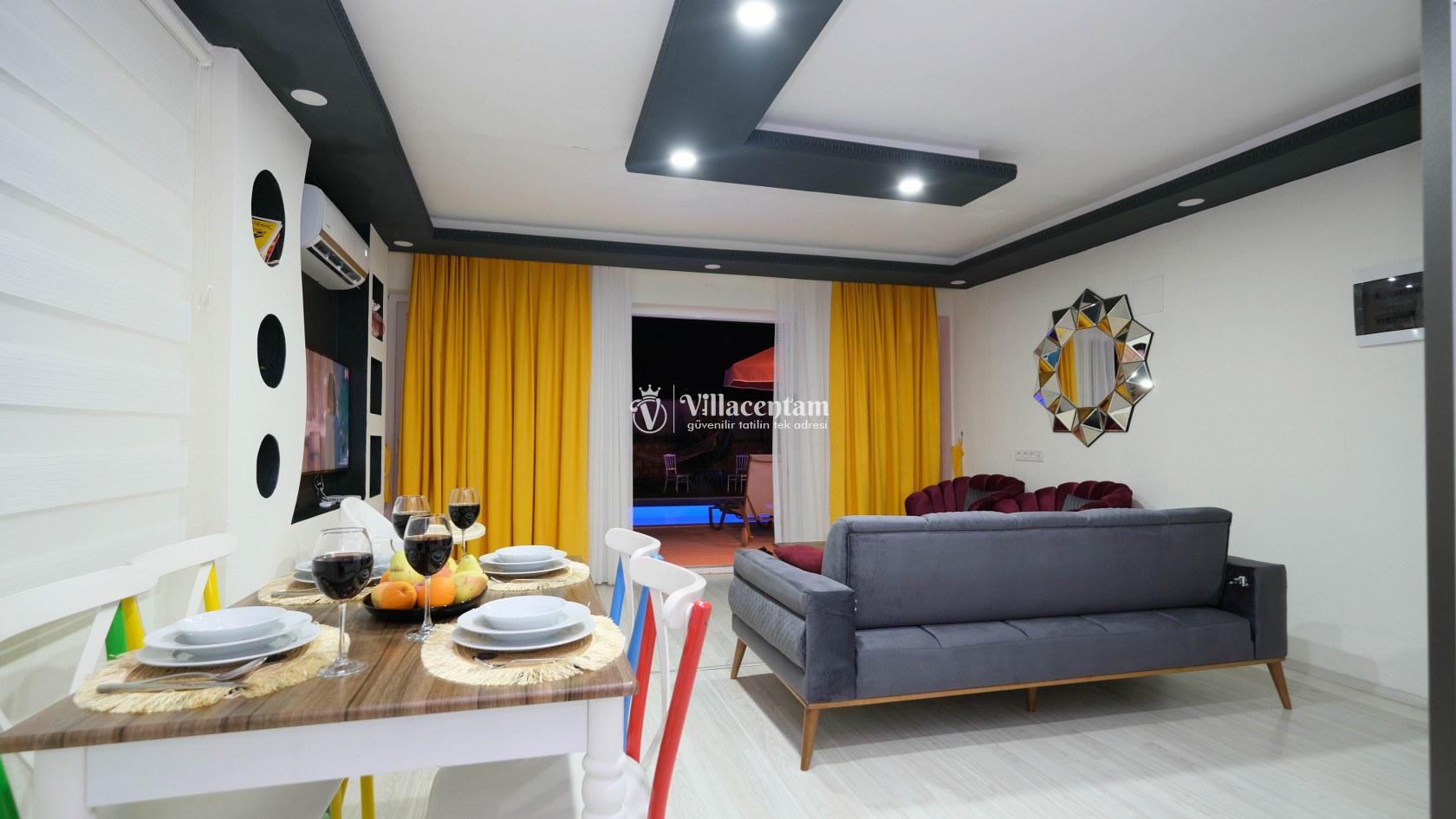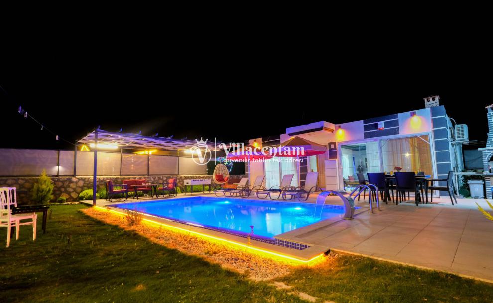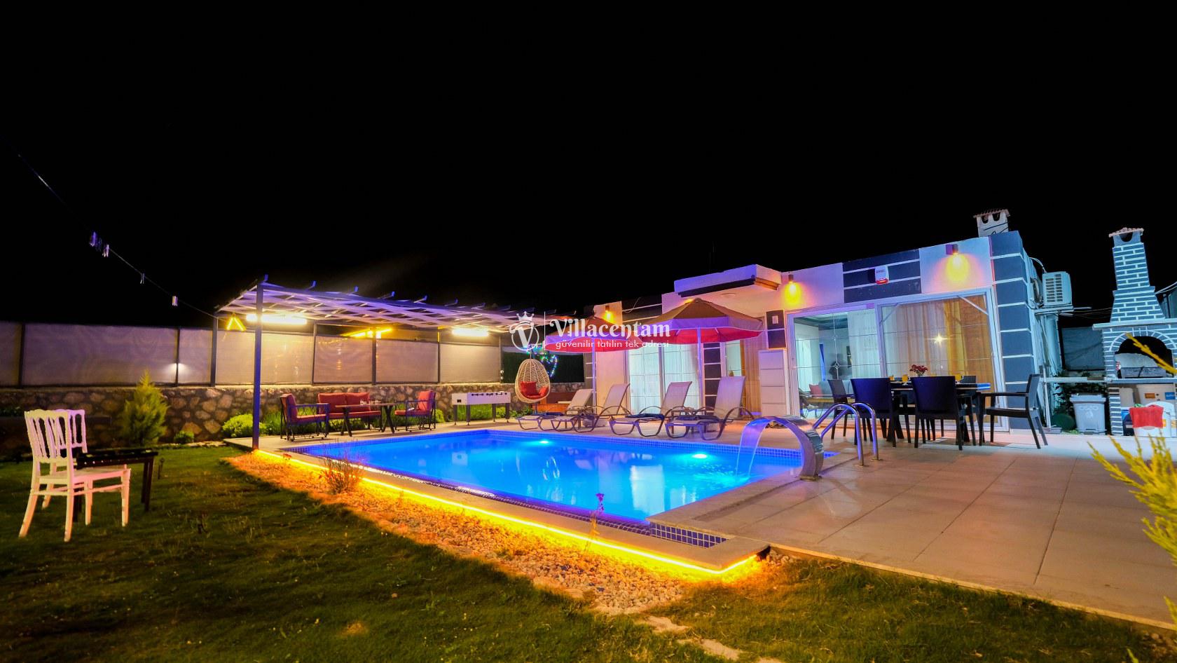 Villa Okan, Kalkan Sarıbelen mevkiinde konumlanmakta olan doğa manzarasına hakim kiralık villalarımız arasında yer almaktadır. Modern ve lüks bir şekilde dekore edilen villamızda 2 adet yatak odası bulunmakta olup, 4 kişiye konaklama imkanı sağlamaktadır. Villamızın bahçesinde tüm yılın vermiş olduğu yorgunluğu atabileceğiniz jakuzi bulunmaktadır. Her bir detayın en ince ayrıntısına kadar düşünüldüğü villamızda tatilinizi keyifli hale getirmesi için sinema odası,masa tenisi ve çocuklar için uygun oyun park alanı bulunmaktadır. Havuz ve havuz terası korunaklı hale getirilmiştir. Dışarından bir kimse tarafından görünmemektedir. Muhafazakar balayı çiftleri ve çekirdek aileler rahatlıkla tercih edebilirler. Geniş ve ferah bir havuz terasına sahip olan villamızda sevdiklerinizle tatilin tadını çıkarabilirsiniz. Keyifli bir tatil için Villa Okan' ı tercih edebilirsiniz