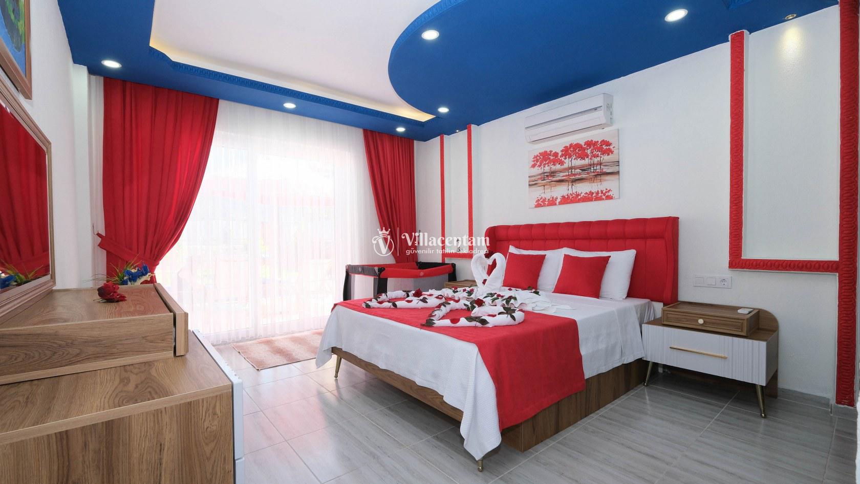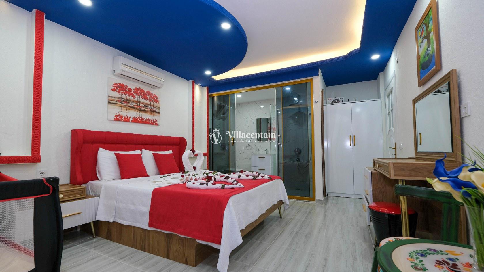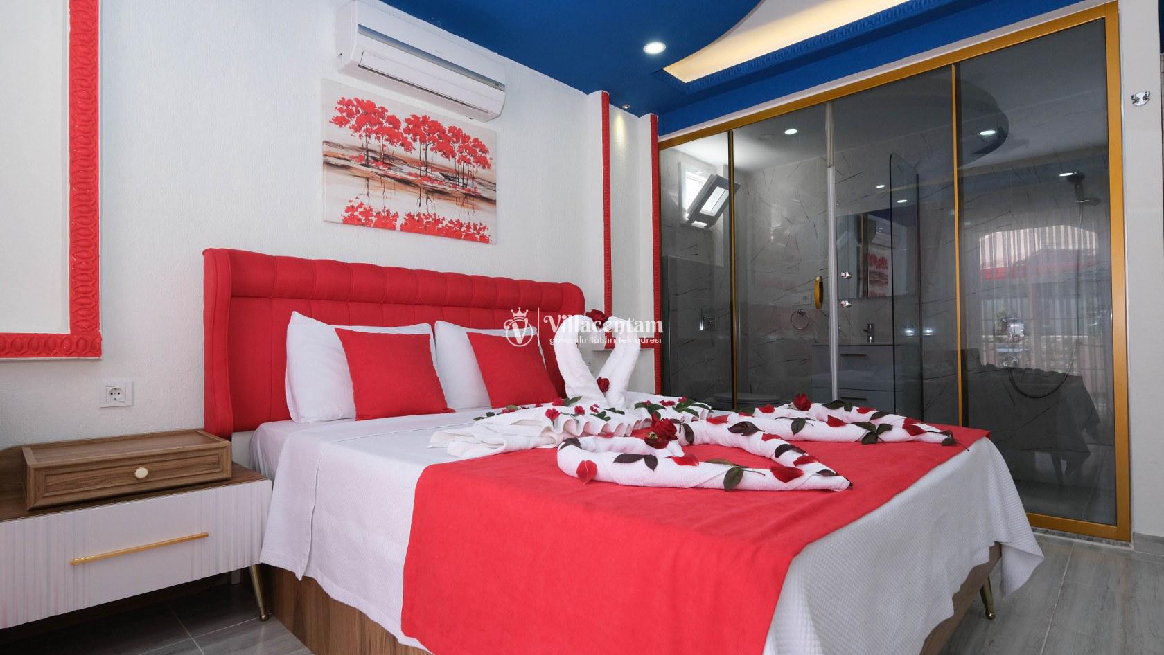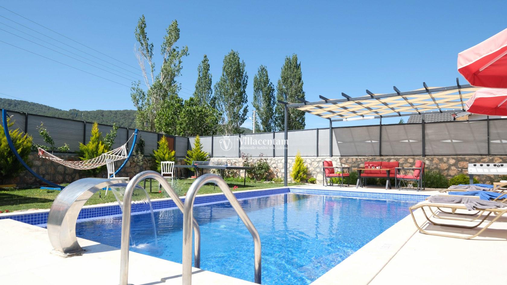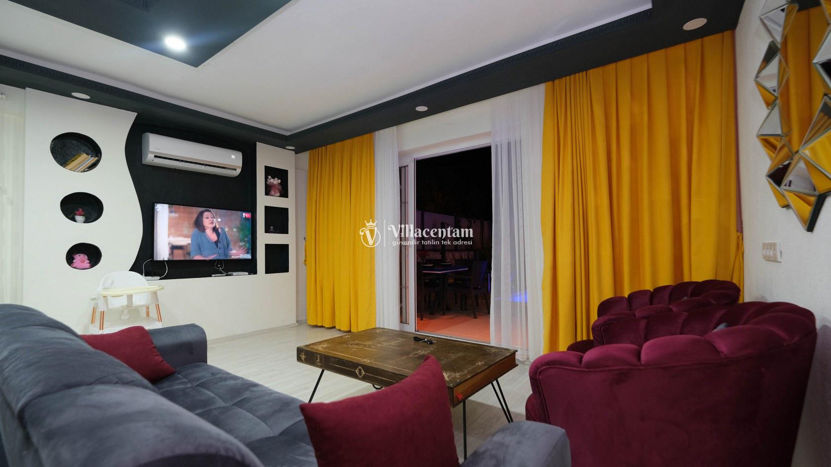 Villa Okan, Kalkan Sarıbelen mevkiinde konumlanmakta olan doğa manzarasına hakim kiralık villalarımız arasında yer almaktadır. Modern ve lüks bir şekilde dekore edilen villamızda 2 adet yatak odası bulunmakta olup, 4 kişiye konaklama imkanı sağlamaktadır. Villamızın bahçesinde tüm yılın vermiş olduğu yorgunluğu atabileceğiniz jakuzi bulunmaktadır. Her bir detayın en ince ayrıntısına kadar düşünüldüğü villamızda tatilinizi keyifli hale getirmesi için sinema odası,masa tenisi ve çocuklar için uygun oyun park alanı bulunmaktadır. Havuz ve havuz terası korunaklı hale getirilmiştir. Dışarından bir kimse tarafından görünmemektedir. Muhafazakar balayı çiftleri ve çekirdek aileler rahatlıkla tercih edebilirler. Geniş ve ferah bir havuz terasına sahip olan villamızda sevdiklerinizle tatilin tadını çıkarabilirsiniz. Keyifli bir tatil için Villa Okan' ı tercih edebilirsiniz