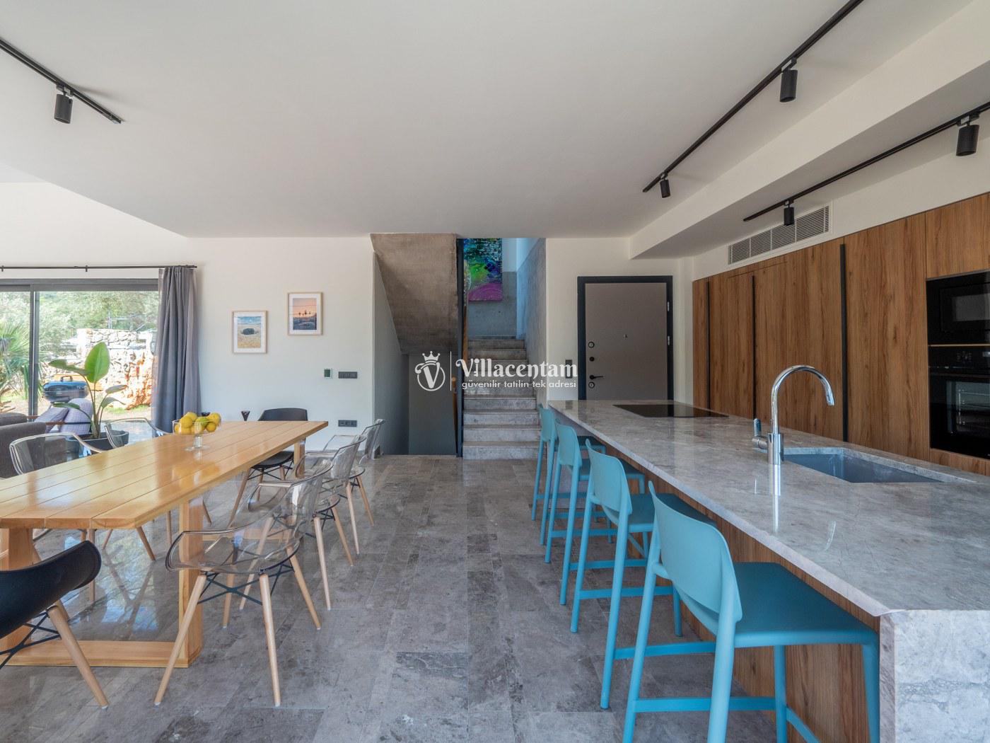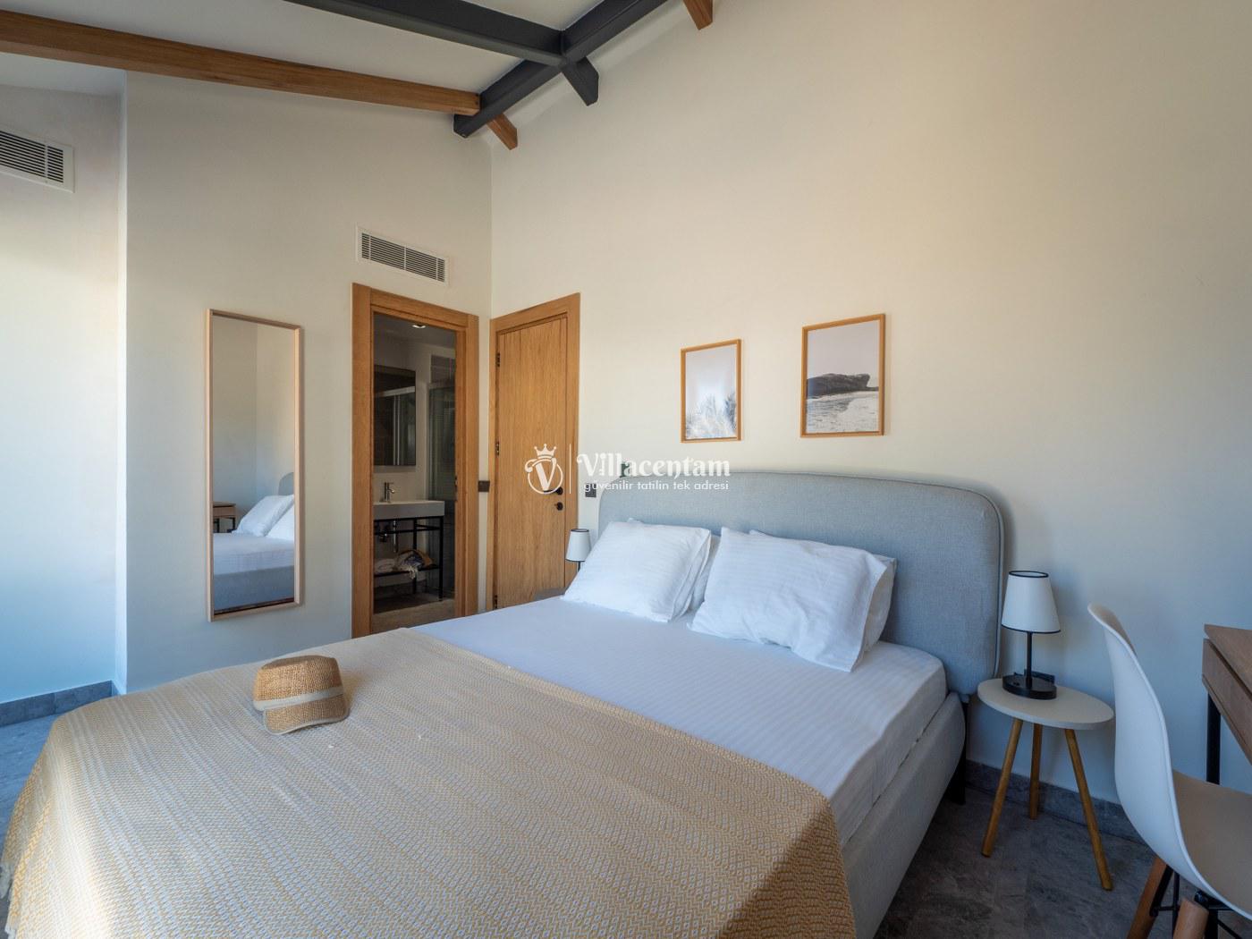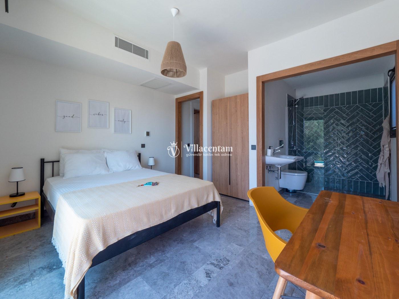 Toplam 5 yatak odası ve 10 kişilik konaklama kapasitesi ile geniş aileler ve arkadaş grupları için ideal bir seçenektir. Villanın modern ve şık dekorasyonu, ferah yaşam alanlarıyla birleşerek konforlu bir konaklama ortamı oluşturur. Günün yorgunluğunu atabileceğiniz jakuzili alan, tatilinize ayrıcalıklı bir dokunuş katar.