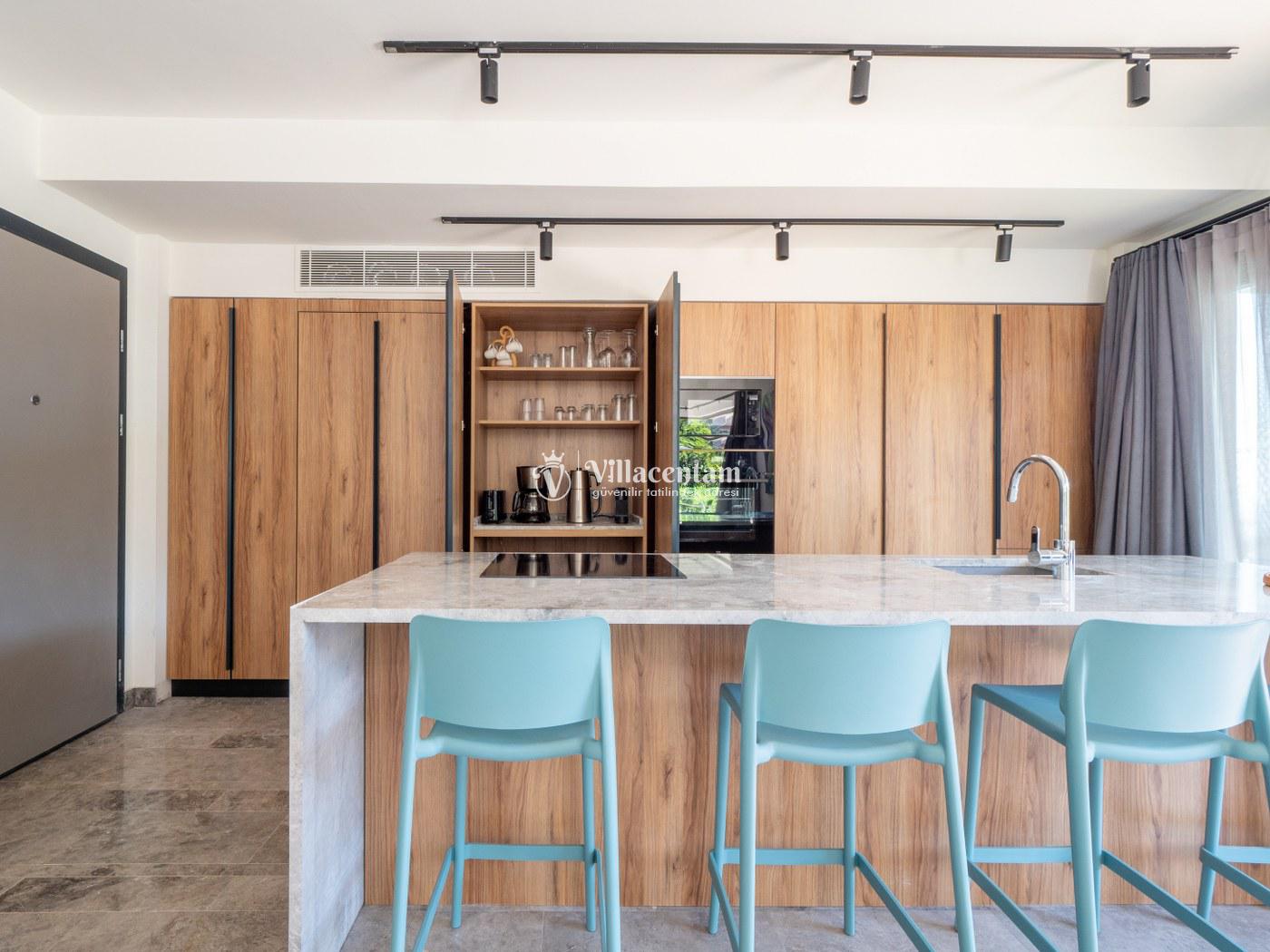 *Villalarda sıcak su için güneş enerjili su ısıtma sistemleri kullanılmaktadır. Çok yoğun sıcak su kullanımında, yoğunluğa ve su tankının büyüklüğüne bağlı olarak su tankında sıcak su tükenebilmekte ve tekrar suyun ısınması için belirli bir süre geçmesi gerekmektedir. Bu not sadece bu villa ile ilgili değil, tüm villalarımız için geçerli bir durumdur.
