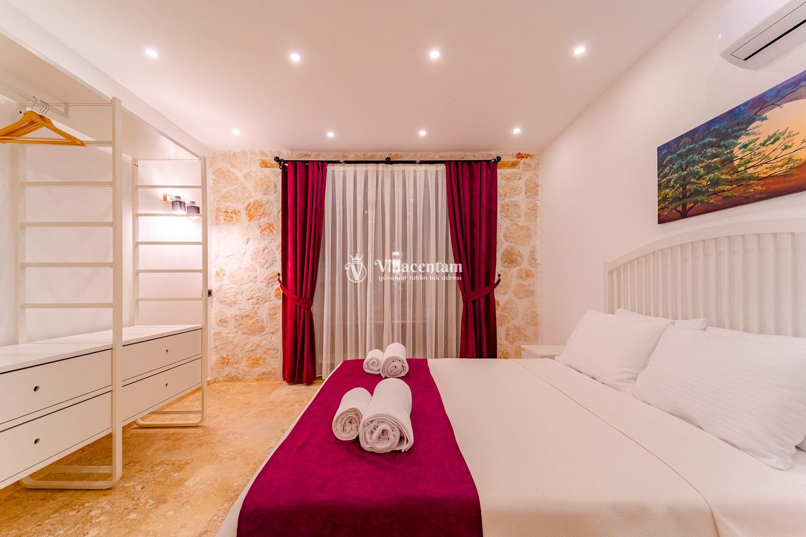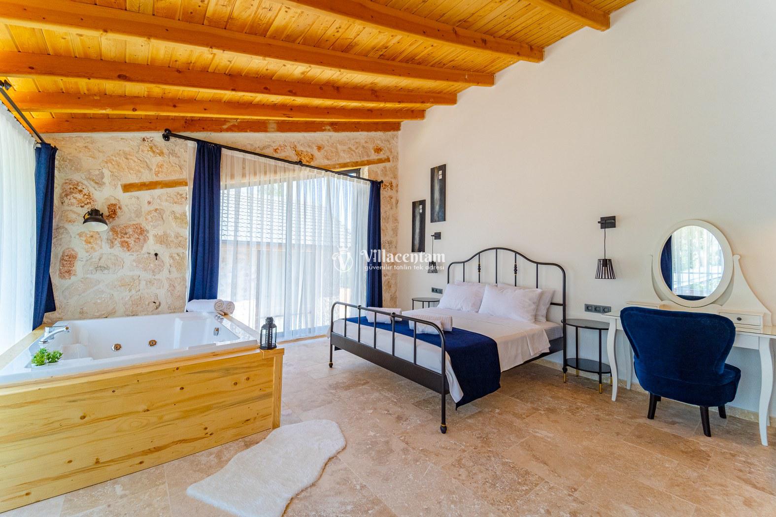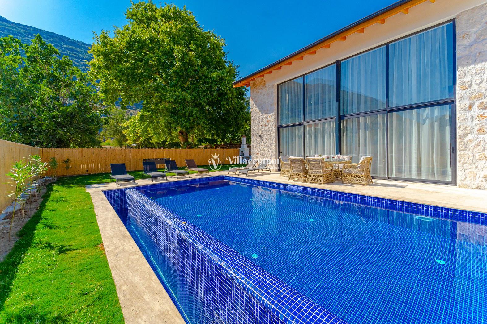 Villa Oslo, Kalkan Bezirgan köyünde konumlanmakta olan yeşilliklerle kaplı doğa manzarasına hakim kiralık villalarımız arasında yer almaktadır. Şık ve konforlu bir şekilde konumlanmakta olan yazlık villamızda 3 adet yatak odası bulunmakta olup, 6 kişiye konaklama imkanı sağlamaktadır. Yatak odalarından bir tanesinin içerisinde tüm yılın vermiş olduğu yorgunluğu giderebileceğiniz jakuzi bulunmaktadır. Havuz ve havuz terası korunaklı olan kiralık villamızı muhafazakar aileler, balayı çiftleri ve çekirder aileler rahatlıkla tercih edebilirler. Her bir detayın en ince ayrıntısına kadar düşünüldüğü yazlık villamızda langırt bulunmaktadır. Tüm gözlerden uzakta sessizlik ve sakinlik içerisinde huzur dolu bir yazlık villada tatili için Villa Oslo’ yu tercih edebilirsiniz.