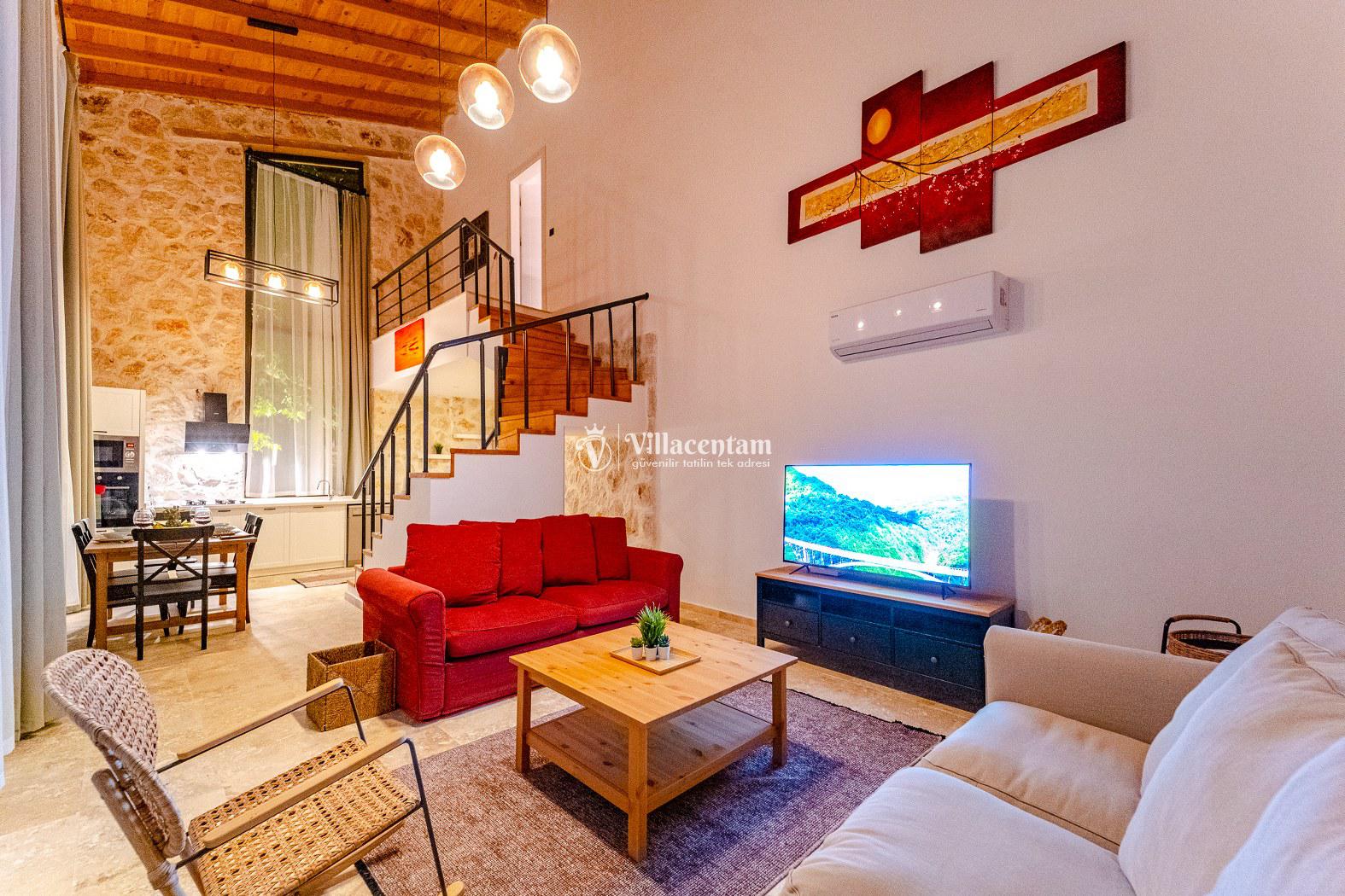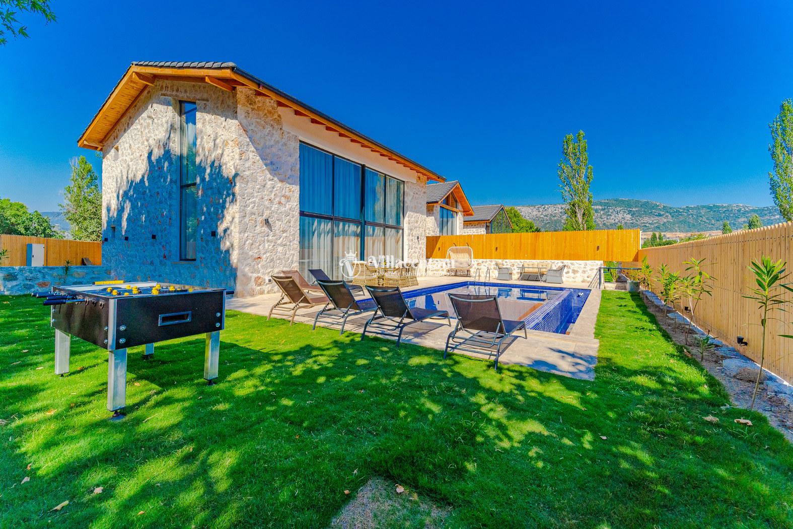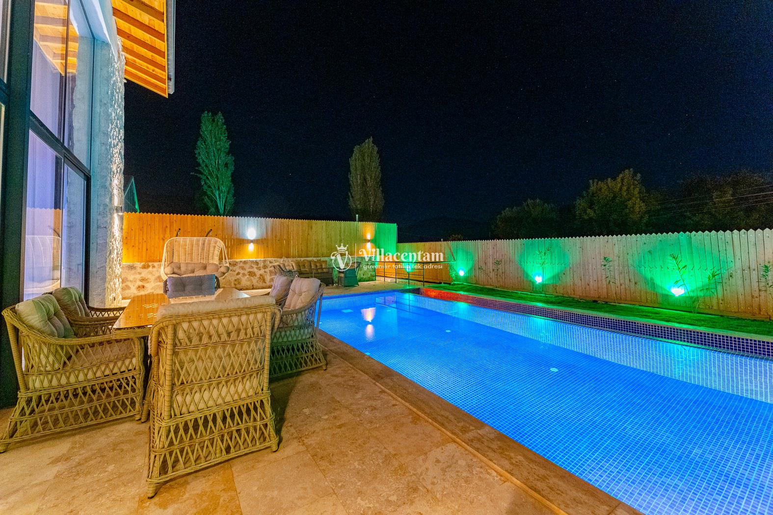 Villa Oslo, Kalkan Bezirgan köyünde konumlanmakta olan yeşilliklerle kaplı doğa manzarasına hakim kiralık villalarımız arasında yer almaktadır. Şık ve konforlu bir şekilde konumlanmakta olan yazlık villamızda 3 adet yatak odası bulunmakta olup, 6 kişiye konaklama imkanı sağlamaktadır. Yatak odalarından bir tanesinin içerisinde tüm yılın vermiş olduğu yorgunluğu giderebileceğiniz jakuzi bulunmaktadır. Havuz ve havuz terası korunaklı olan kiralık villamızı muhafazakar aileler, balayı çiftleri ve çekirder aileler rahatlıkla tercih edebilirler. Her bir detayın en ince ayrıntısına kadar düşünüldüğü yazlık villamızda langırt bulunmaktadır. Tüm gözlerden uzakta sessizlik ve sakinlik içerisinde huzur dolu bir yazlık villada tatili için Villa Oslo’ yu tercih edebilirsiniz.