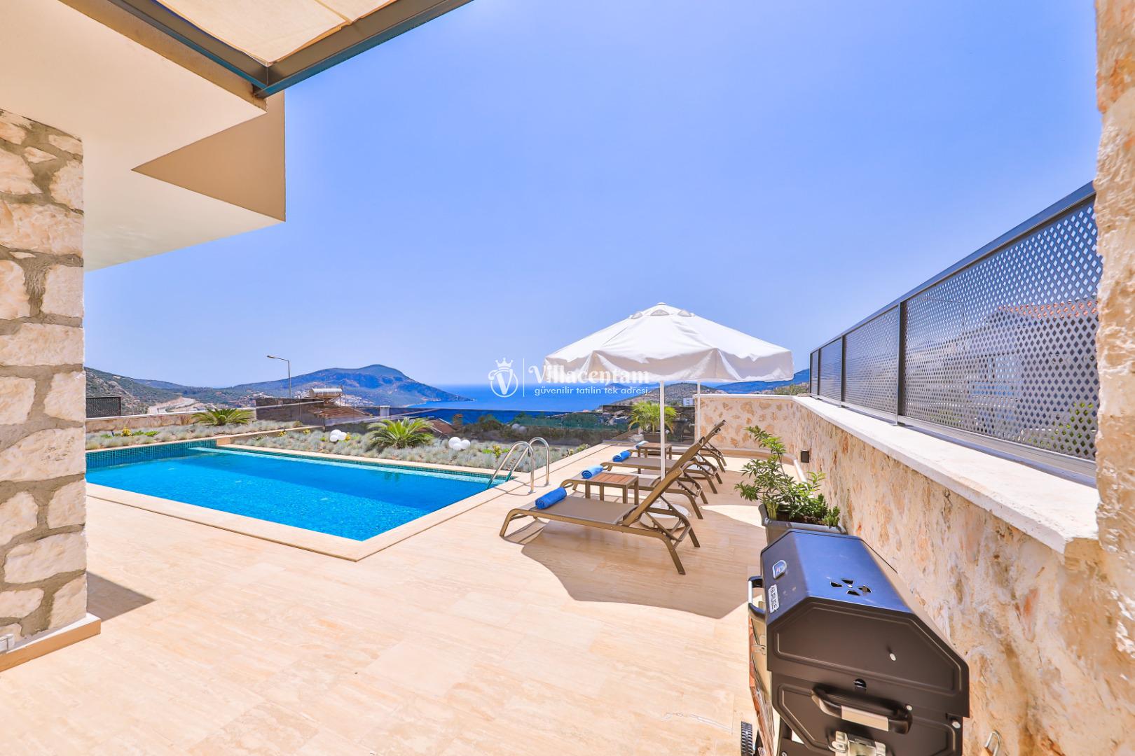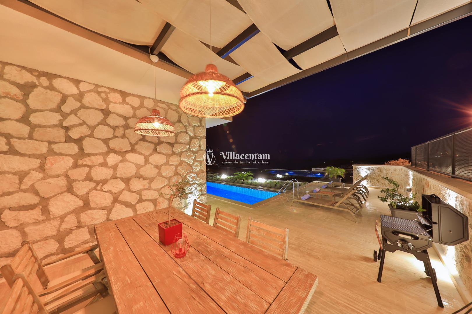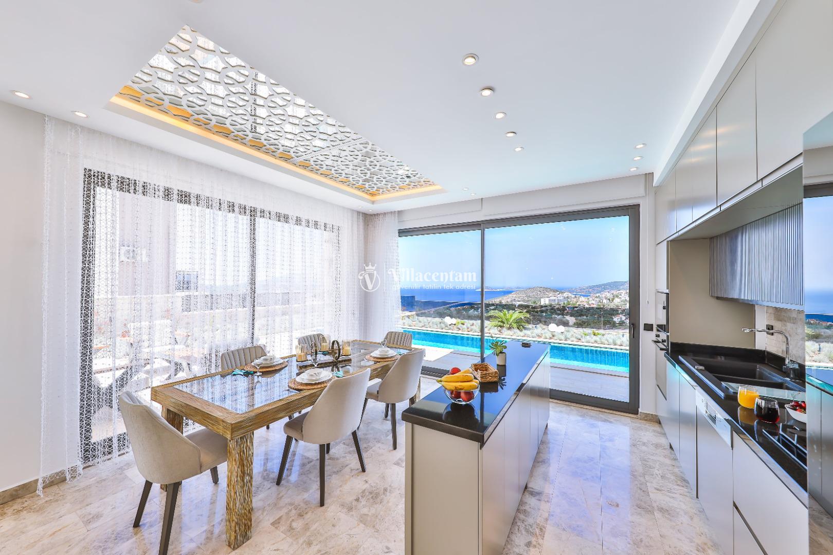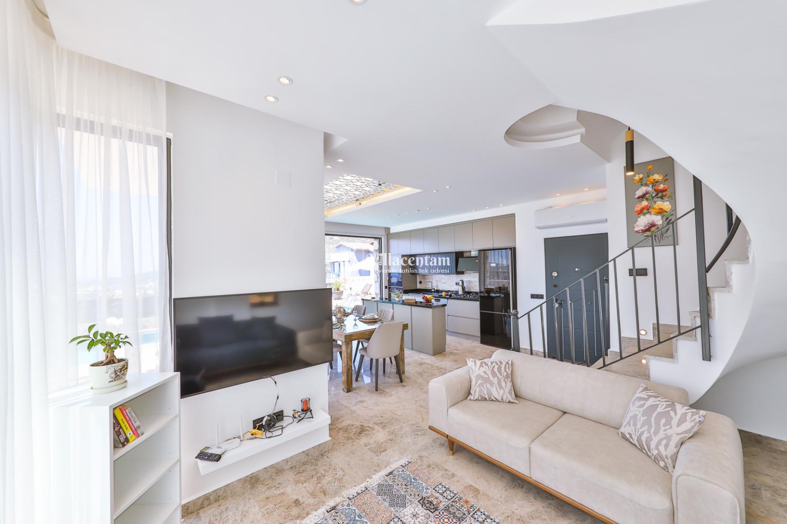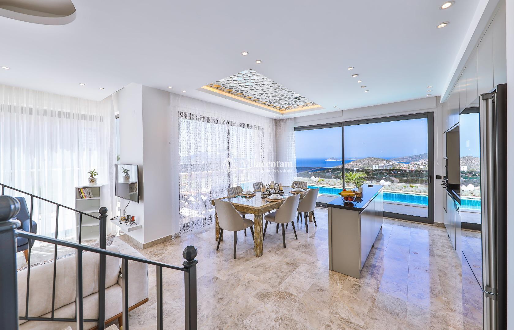 Villa Öykünün Evi, Kalkan Kızıltaş mevkiinde konumlanmakta olan 4 kişi konaklama kapasitesine sahip eşsiz deniz manzarası, merkezi konumu ve lüks detaylarıyla öne çıkan bu özel villa; konforlu, keyifli ve ayrıcalıklı bir tatil deneyimi arayan misafirler için özenle tasarlanmıştır. Dört kişilik konaklama kapasitesine sahip olan villa, hem aileler hem de arkadaş grupları için ideal bir seçenek sunarken, merkeze yakın konumu sayesinde tatil boyunca ulaşım kolaylığı ve zaman tasarrufu sağlamaktadır. Villanın en dikkat çekici özelliklerinden biri, çift jakuzili yapısıdır. Villada bulunan iki ayrı jakuzi, misafirlerine farklı alanlarda eşsiz bir rahatlama deneyimi sunar. Teras katında yer alan jakuzi, panoramik deniz manzarasına karşı konumlandırılmış olup gün batımında benzersiz bir atmosfer oluşturur. Deniz manzarası eşliğinde, açık havada jakuzinin keyfini çıkarabilir; sevdiklerinizle unutulmaz anlar yaşayabilirsiniz. Diğer jakuzi ise daha korunaklı bir alanda yer almakta olup günün her saatinde konforlu ve huzurlu bir kullanım imkânı sunmaktadır. Modern mimarisi ve şık dekorasyonu ile dikkat çeken villa, ferah yaşam alanlarıyla rahat bir konaklama imkânı sağlar. Geniş cam yüzeyler sayesinde deniz manzarası villanın her köşesinde hissedilirken, doğal ışıkla aydınlanan iç mekânlar ferah ve aydınlık bir atmosfer sunar. Konforlu oturma alanı, tam donanımlı mutfak ve özenle seçilmiş mobilyalar, tatil süresince evinizdeki rahatlığı yaşamanıza olanak tanır. Villanın yatak odaları, dinlendirici yapısı ve şık tasarımıyla konforlu bir uyku deneyimi sunar. Deniz manzarasına açılan odalarda güne keyifle başlayabilir, tatiliniz boyunca huzur dolu anlar yaşayabilirsiniz. Villanın planlamasında hem ortak alanlar hem de özel alanlar misafirlerin rahatlığı düşünülerek titizlikle tasarlanmıştır.