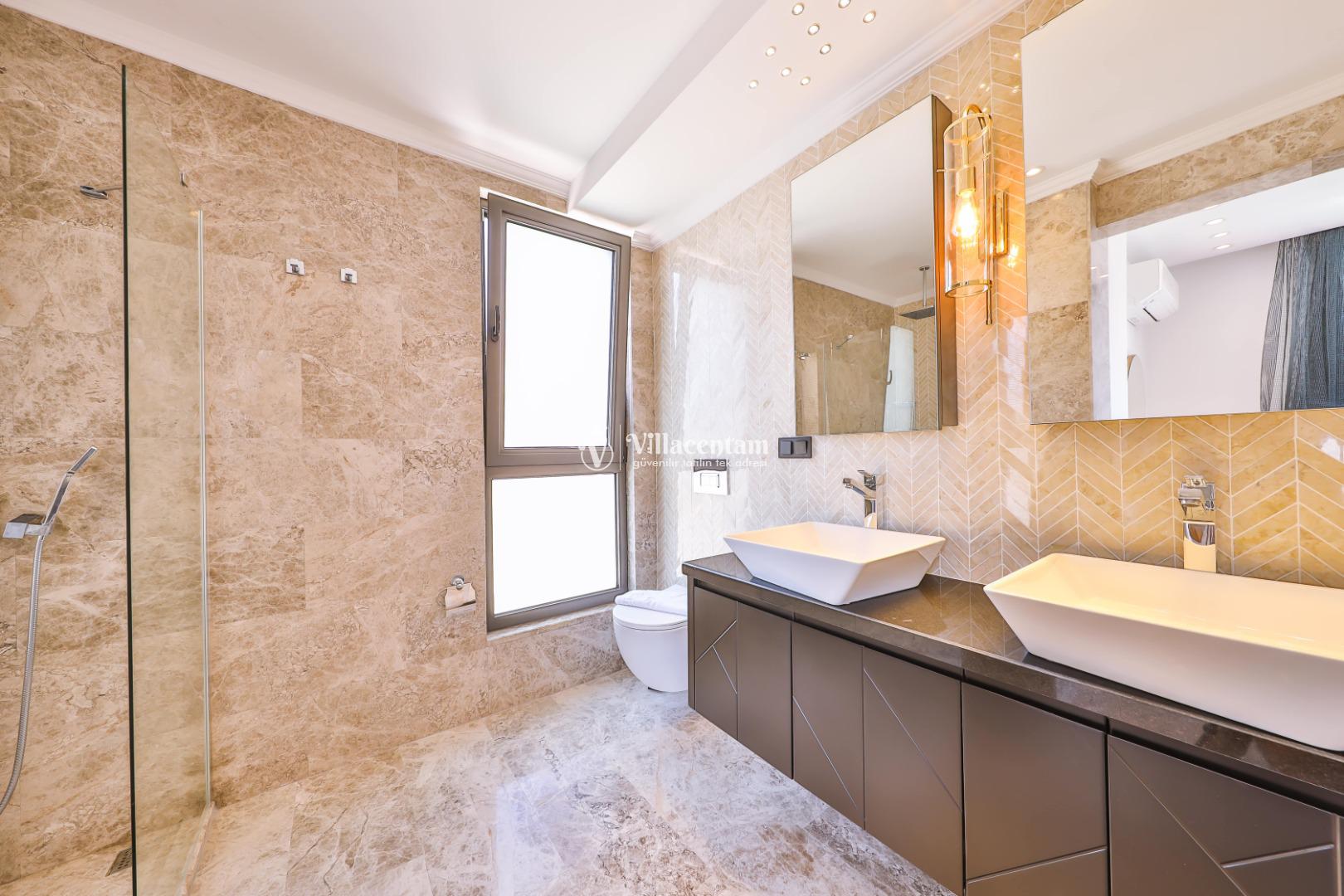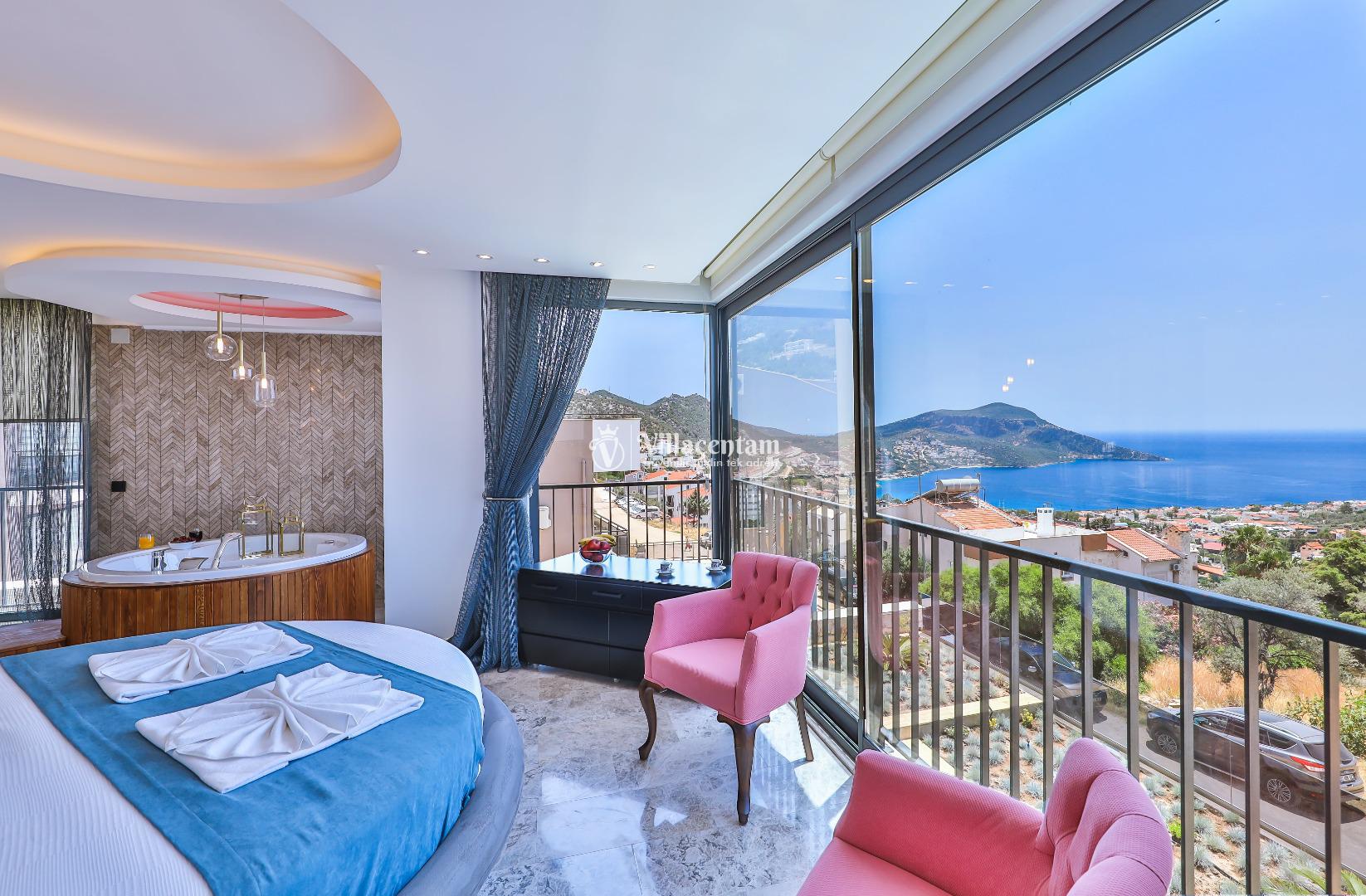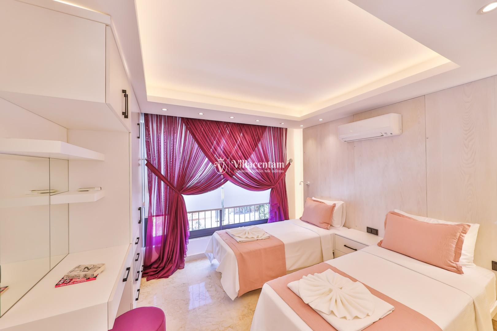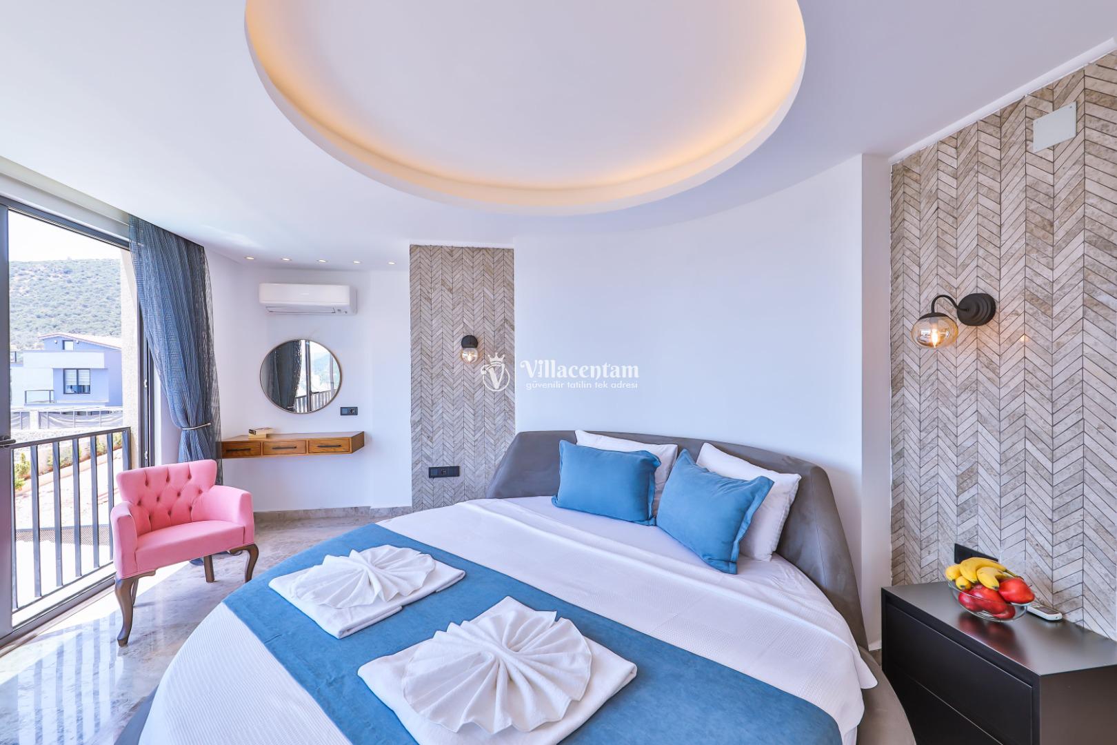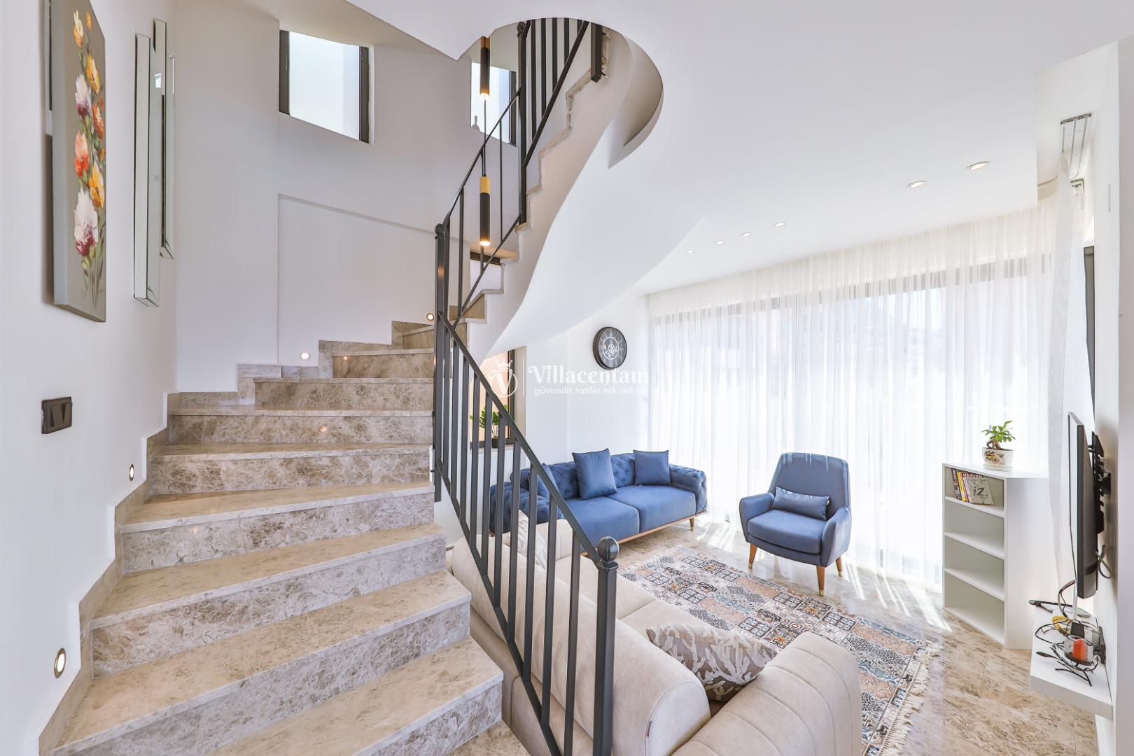 Villa Öykünün Evi, Kalkan Kızıltaş mevkiinde konumlanmakta olan 4 kişi konaklama kapasitesine sahip eşsiz deniz manzarası, merkezi konumu ve lüks detaylarıyla öne çıkan bu özel villa; konforlu, keyifli ve ayrıcalıklı bir tatil deneyimi arayan misafirler için özenle tasarlanmıştır. Dört kişilik konaklama kapasitesine sahip olan villa, hem aileler hem de arkadaş grupları için ideal bir seçenek sunarken, merkeze yakın konumu sayesinde tatil boyunca ulaşım kolaylığı ve zaman tasarrufu sağlamaktadır. Villanın en dikkat çekici özelliklerinden biri, çift jakuzili yapısıdır. Villada bulunan iki ayrı jakuzi, misafirlerine farklı alanlarda eşsiz bir rahatlama deneyimi sunar. Teras katında yer alan jakuzi, panoramik deniz manzarasına karşı konumlandırılmış olup gün batımında benzersiz bir atmosfer oluşturur. Deniz manzarası eşliğinde, açık havada jakuzinin keyfini çıkarabilir; sevdiklerinizle unutulmaz anlar yaşayabilirsiniz. Diğer jakuzi ise daha korunaklı bir alanda yer almakta olup günün her saatinde konforlu ve huzurlu bir kullanım imkânı sunmaktadır. Modern mimarisi ve şık dekorasyonu ile dikkat çeken villa, ferah yaşam alanlarıyla rahat bir konaklama imkânı sağlar. Geniş cam yüzeyler sayesinde deniz manzarası villanın her köşesinde hissedilirken, doğal ışıkla aydınlanan iç mekânlar ferah ve aydınlık bir atmosfer sunar. Konforlu oturma alanı, tam donanımlı mutfak ve özenle seçilmiş mobilyalar, tatil süresince evinizdeki rahatlığı yaşamanıza olanak tanır. Villanın yatak odaları, dinlendirici yapısı ve şık tasarımıyla konforlu bir uyku deneyimi sunar. Deniz manzarasına açılan odalarda güne keyifle başlayabilir, tatiliniz boyunca huzur dolu anlar yaşayabilirsiniz. Villanın planlamasında hem ortak alanlar hem de özel alanlar misafirlerin rahatlığı düşünülerek titizlikle tasarlanmıştır.