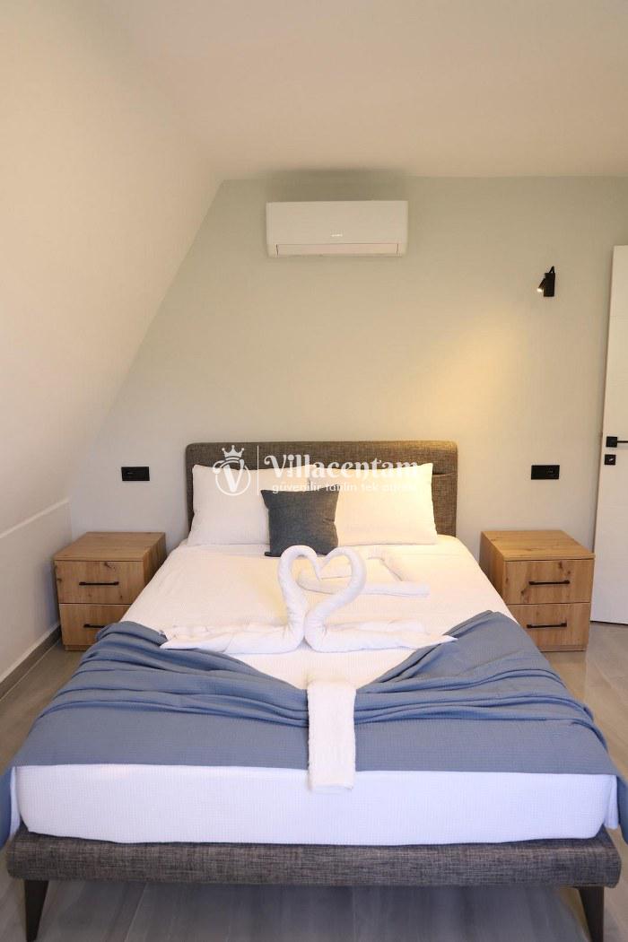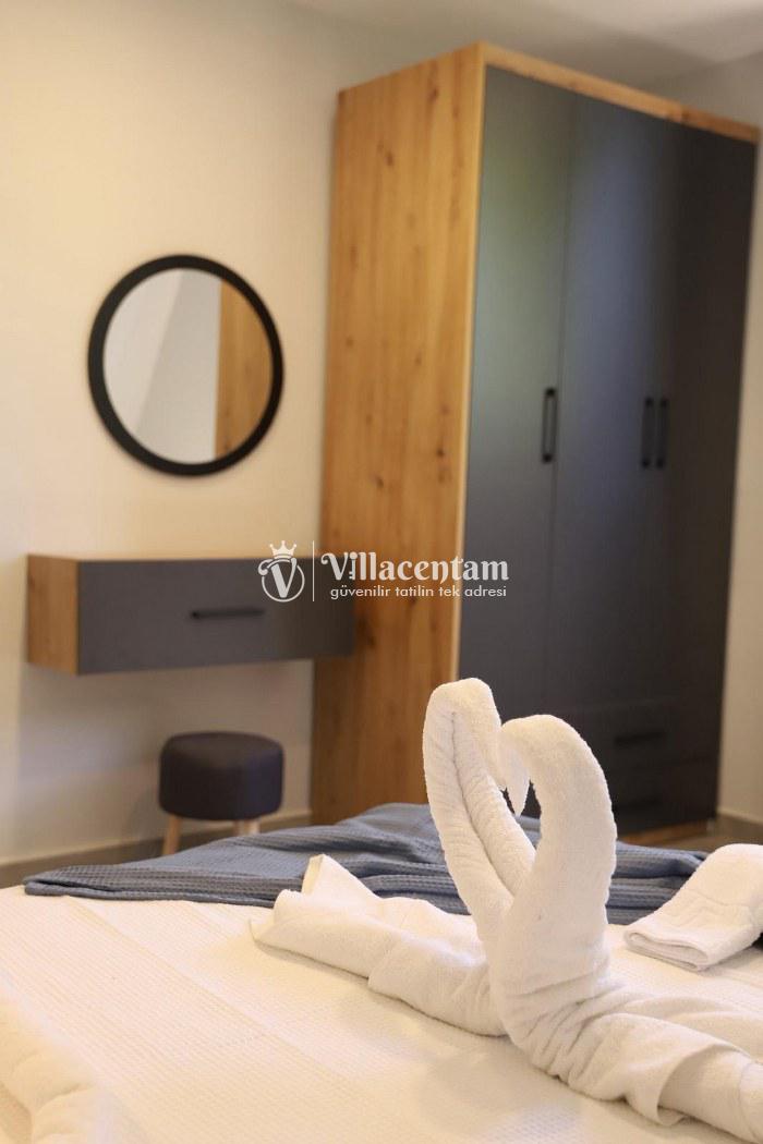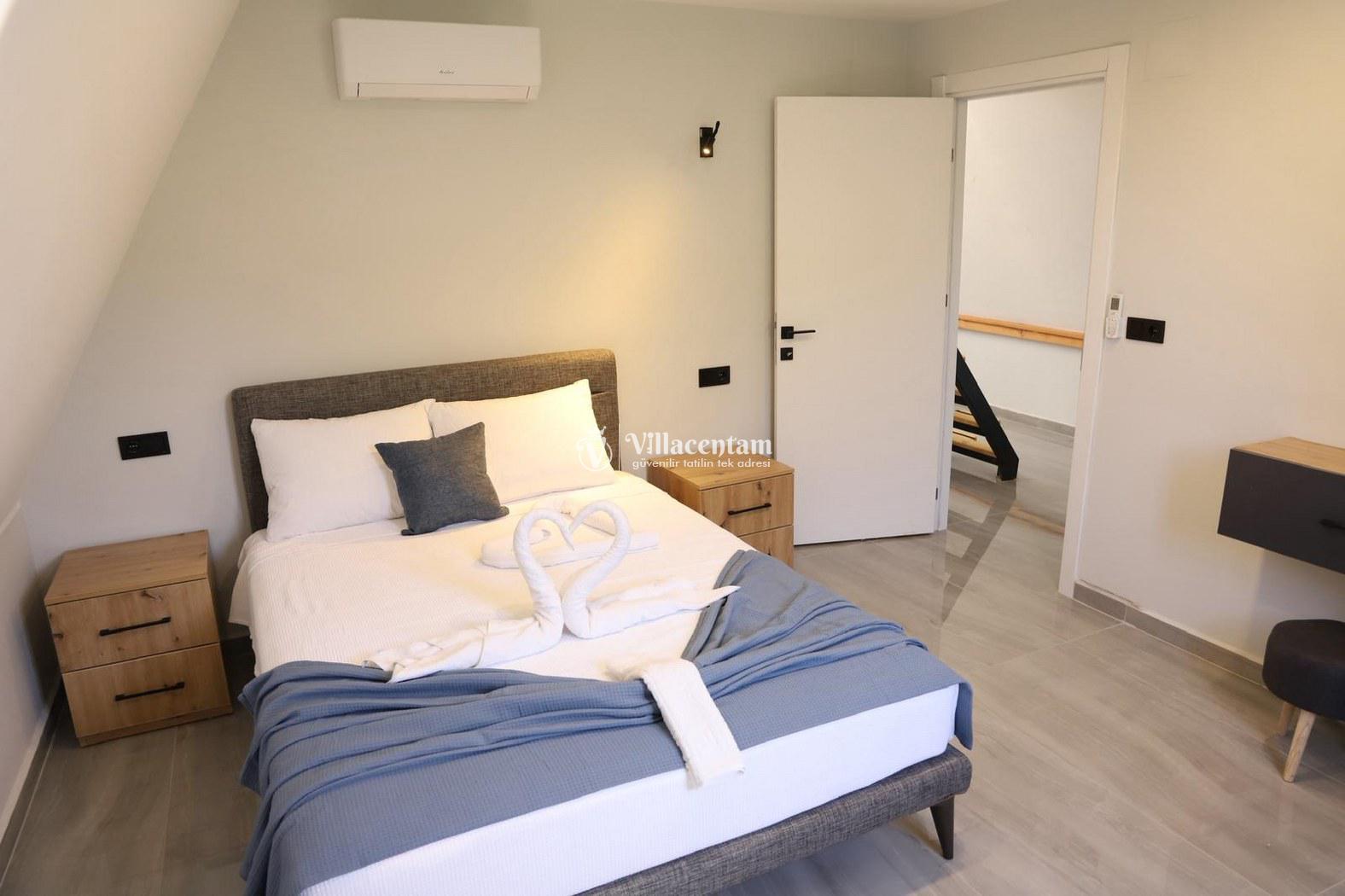 Geniş havuz terası, şezlong alanı ve barbekü imkanı ile sevdiklerinizle birlikte keyifli akşamlar geçirebilir; gün boyu güneşin ve doğanın tadını çıkarabilirsiniz. Hem balayı tatilleri hem de sakin aile tatilleri için tercih edebileceğiniz villamız, konfor ve mahremiyeti bir arada sunmaktadır.