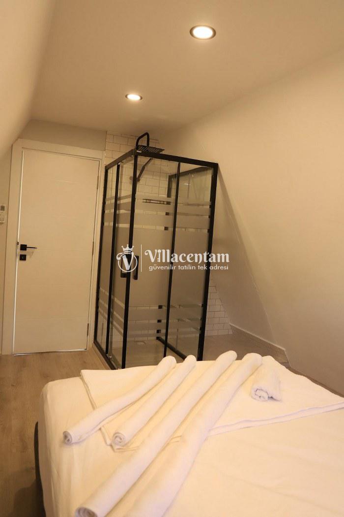 *Villalarda sıcak su için güneş enerjili su ısıtma sistemleri kullanılmaktadır. Çok yoğun sıcak su kullanımında, yoğunluğa ve su tankının büyüklüğüne bağlı olarak su tankında sıcak su tükenebilmekte ve tekrar suyun ısınması için belirli bir süre geçmesi gerekmektedir. Bu not sadece bu villa ile ilgili değil, tüm villalarımız için geçerli bir durumdur.