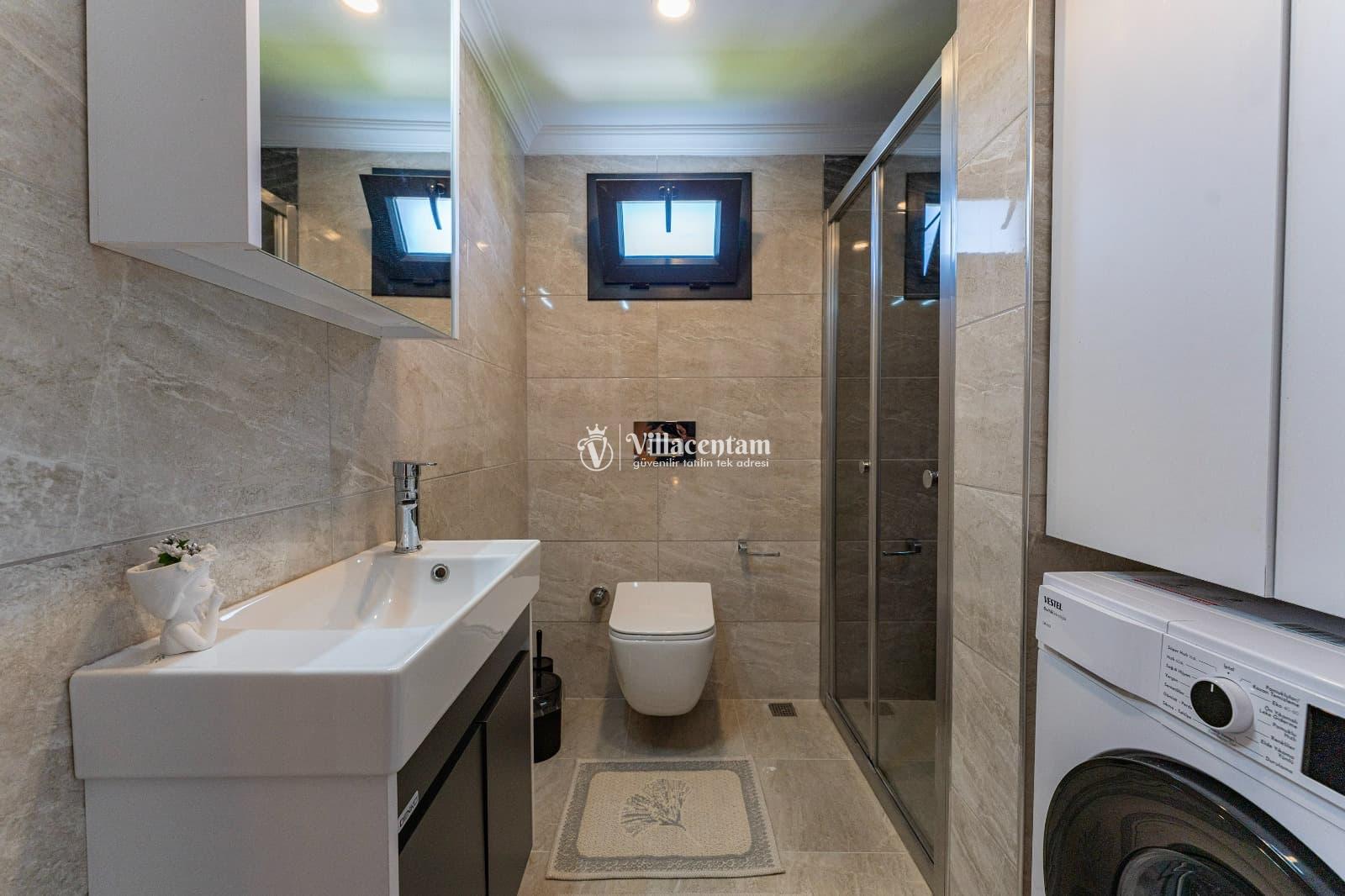 *Villalarda sıcak su için güneş enerjili su ısıtma sistemleri kullanılmaktadır. Çok yoğun sıcak su kullanımında, yoğunluğa ve su tankının büyüklüğüne bağlı olarak su tankında sıcak su tükenebilmekte ve tekrar suyun ısınması için belirli bir süre geçmesi gerekmektedir. Bu not sadece bu villa ile ilgili değil, tüm villalarımız için geçerli bir durumdur.